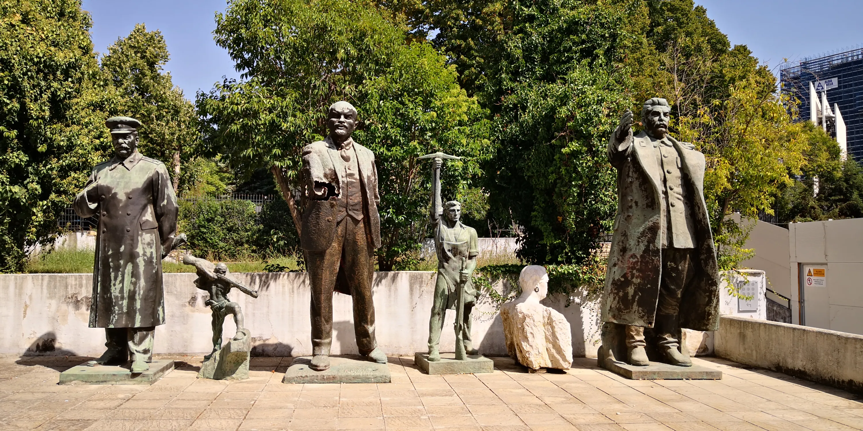 Неподалік від площі Скандербега також є музей, поруч з яким прямо під відкритим небом стоять статуї всюдисущих радянських керманичів. Леніну вже хтось відбив руку, а Сталін ще поки що “зігує” 😊: