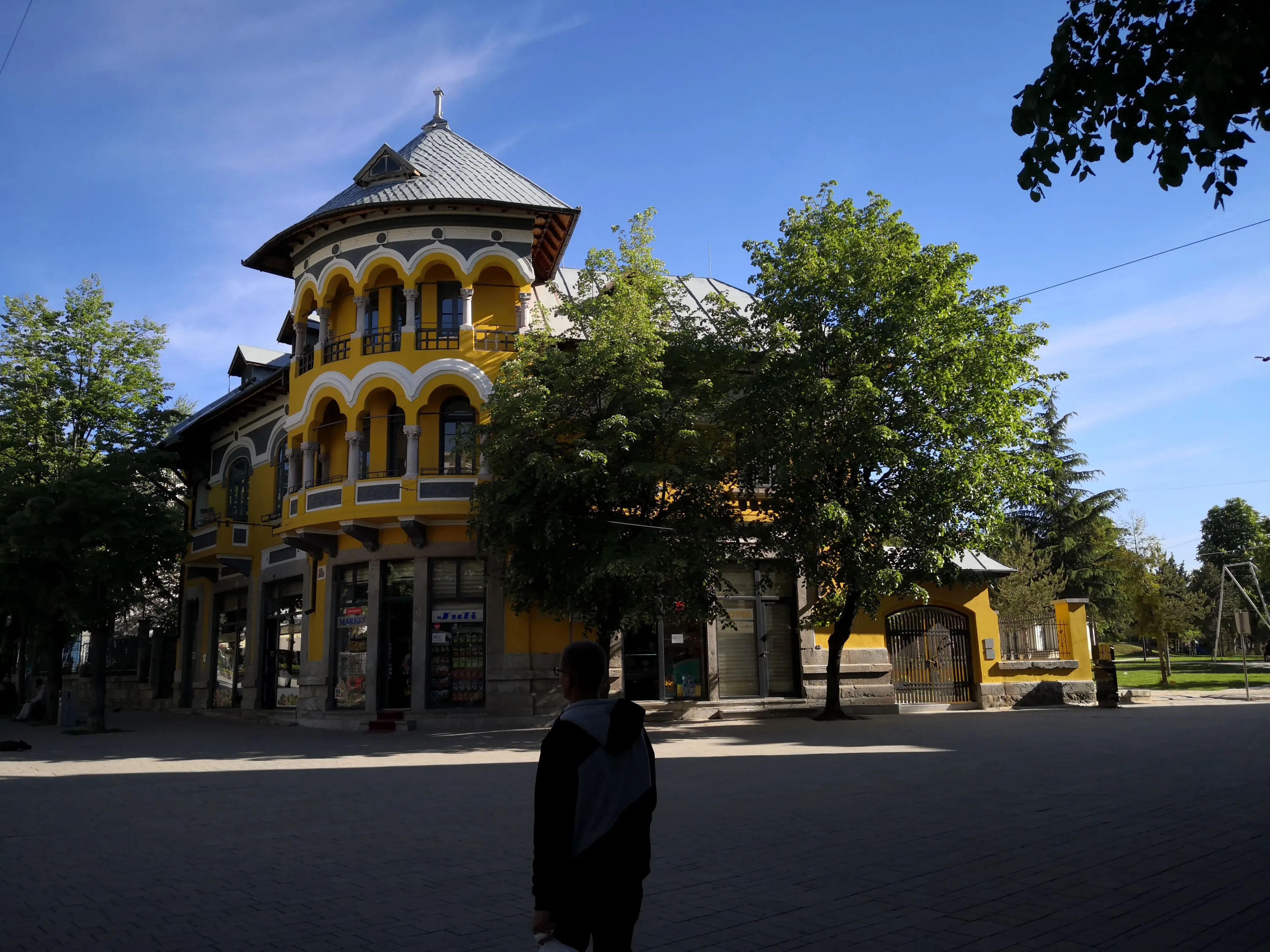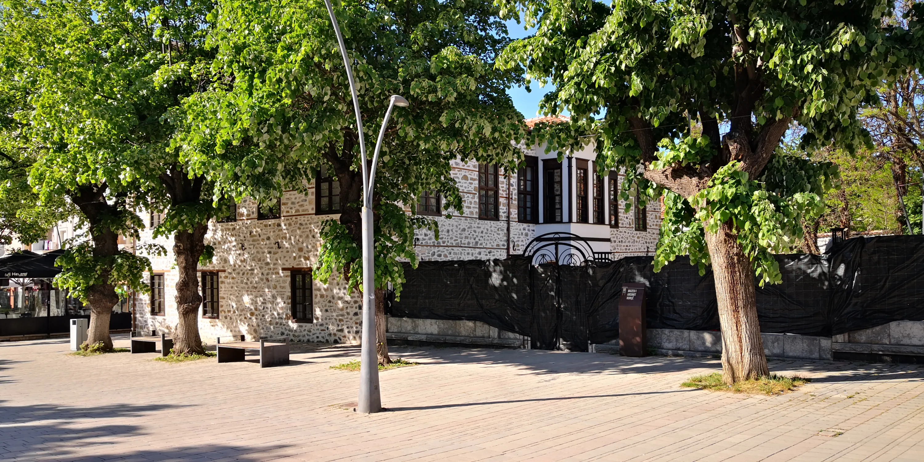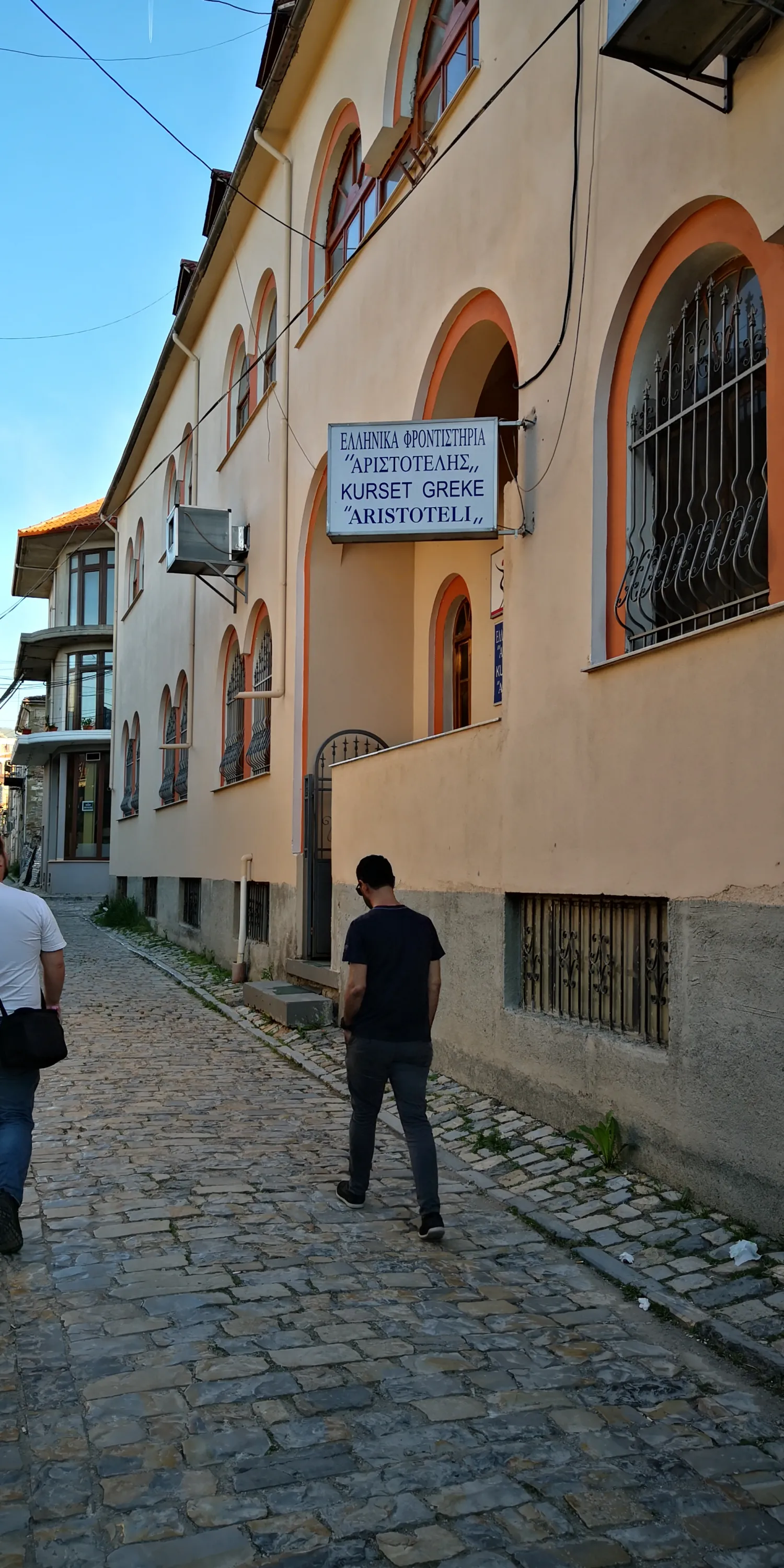 На пішохідній вулиці можна побачити першу албанську школу:
