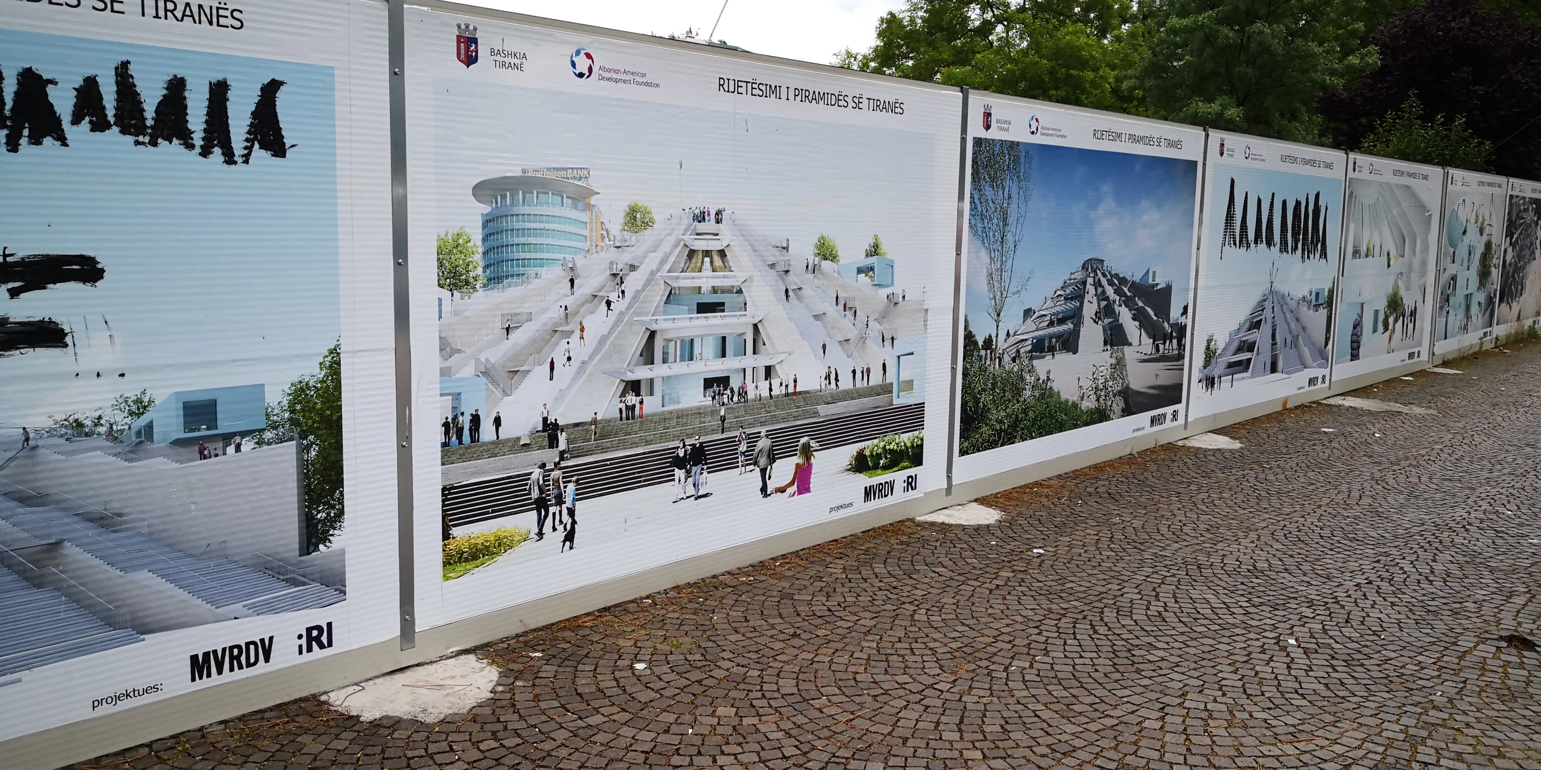 Повним ходом іде реконструкція “Піраміди”. Як я розповідав у минулорічному фотозвіті, спочатку це був музей Енвера Ходжі. Після падіння комунізму та заборони комуністичної ідеології на початку 90-х музей припинив існування і в будівлі деякий час працював нічний клуб. Потім вона деякий час стояла закинутою. Після реконструкції її планують перетворити на науковий центр: