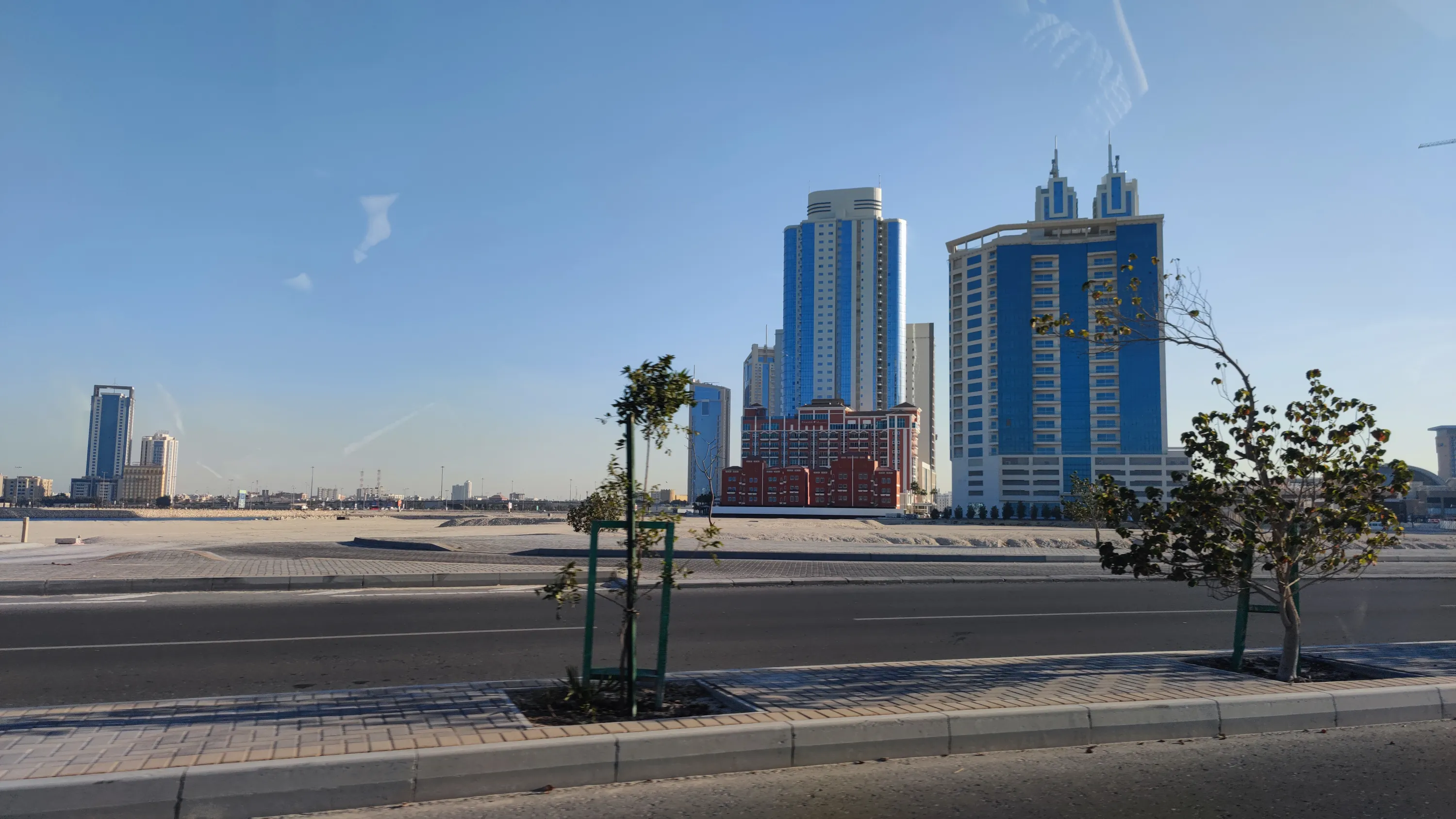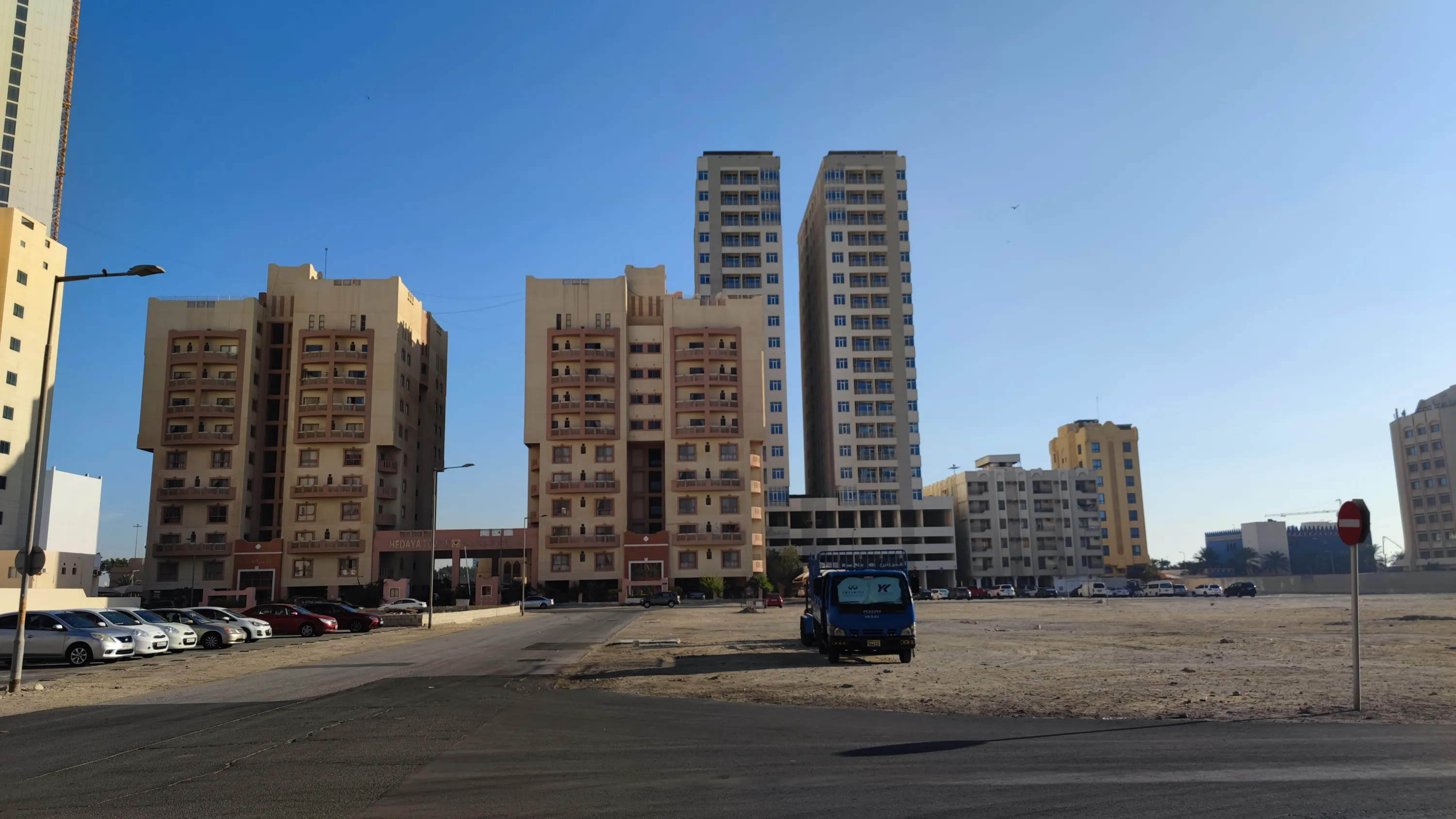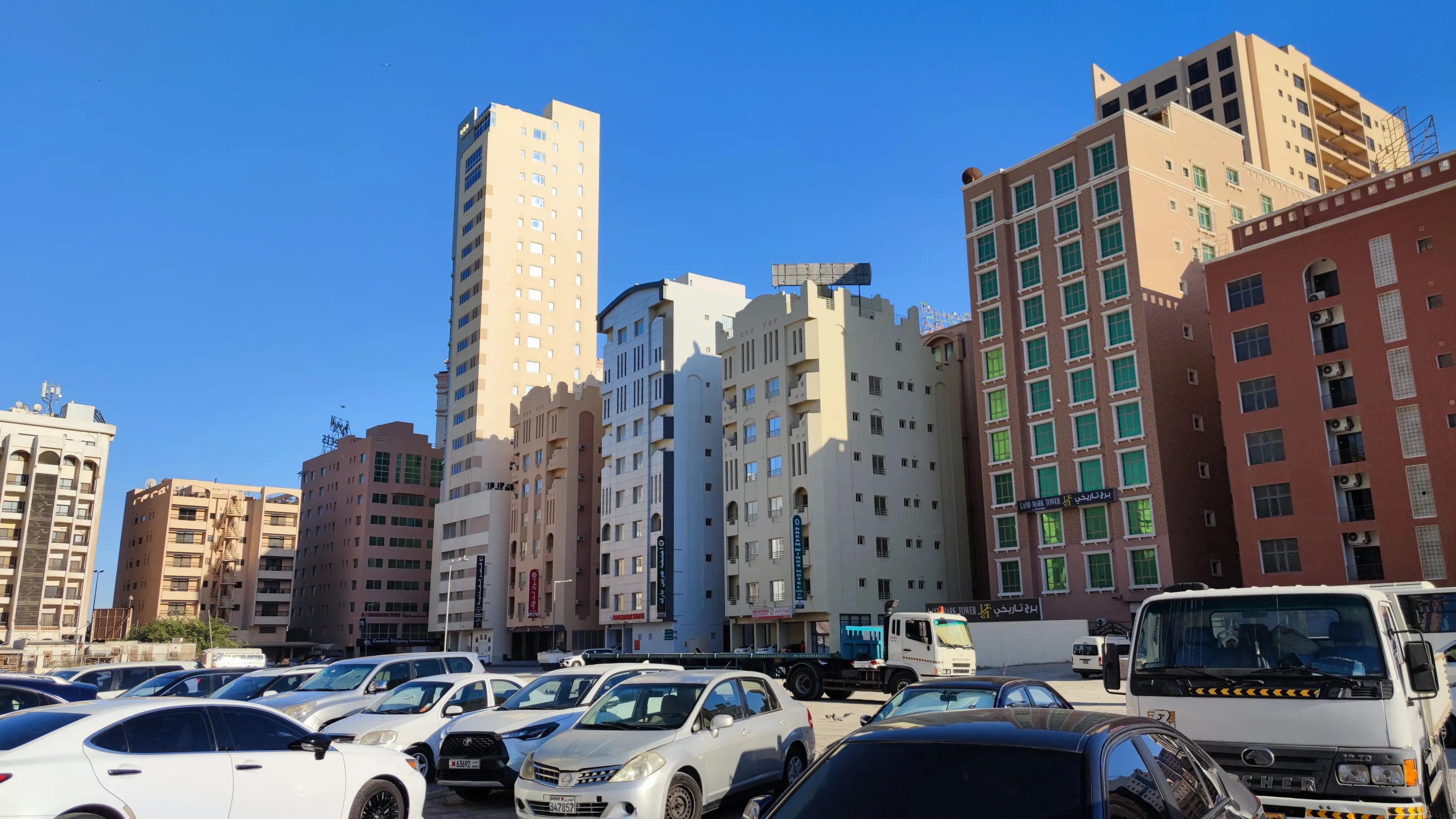 Мене особливо забавляє, що тут навіть в назвах деяких не надто високих будівель нерідко присутнє слово “Tower”, ось як тут, наприклад. В цьому будинку максимум 12 поверхів. Ну який це tower? Ну про що ви говорите? Я ще б зрозумів, якби це було десь в Нікосії, де забудова переважно малоповерхова і найвищий будинок має лише 11 поверхів. Але в Манамі, де є височенні хмарочоси, називати 12-поверхову будівлю “Tower” — це смішно: