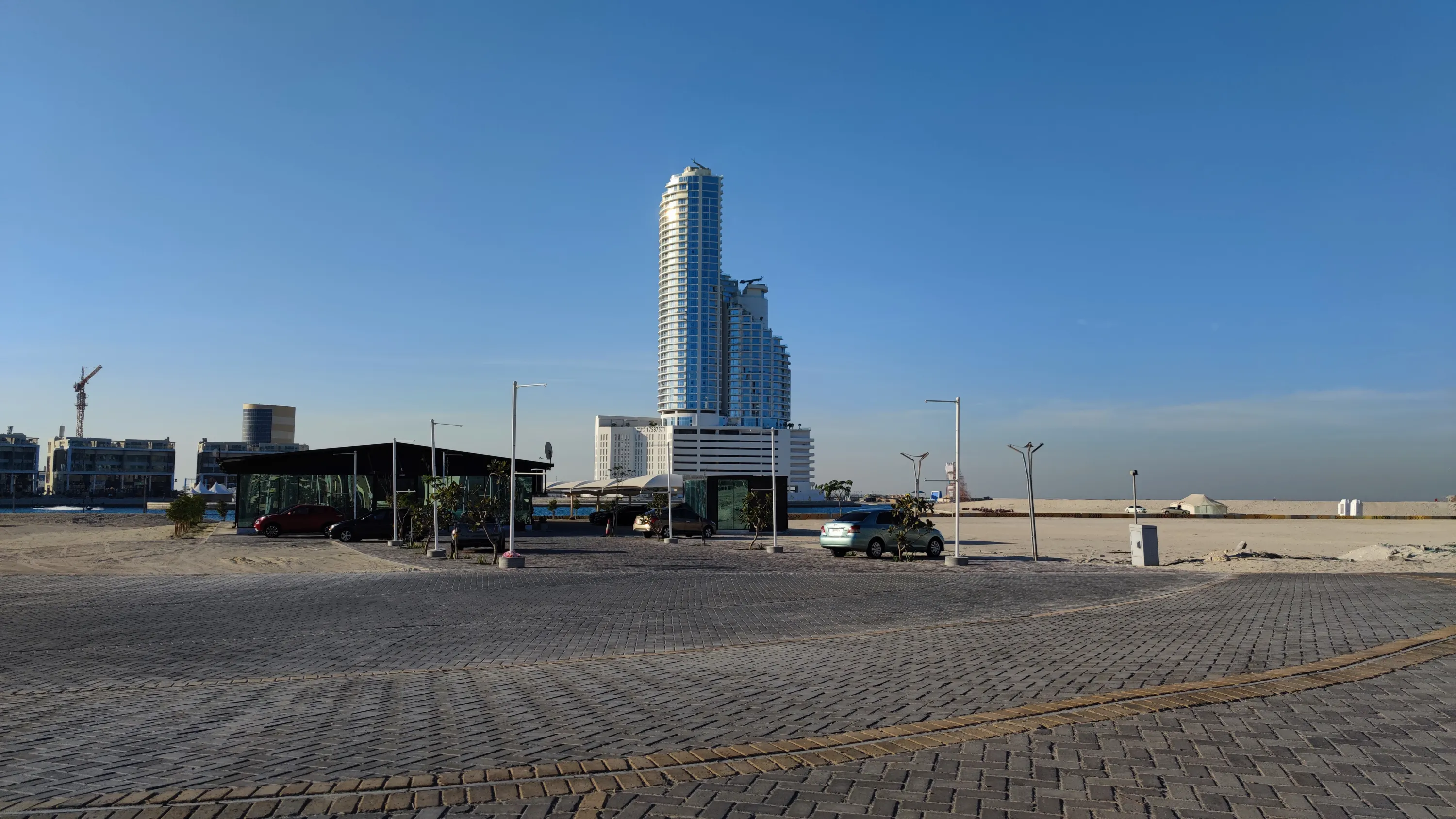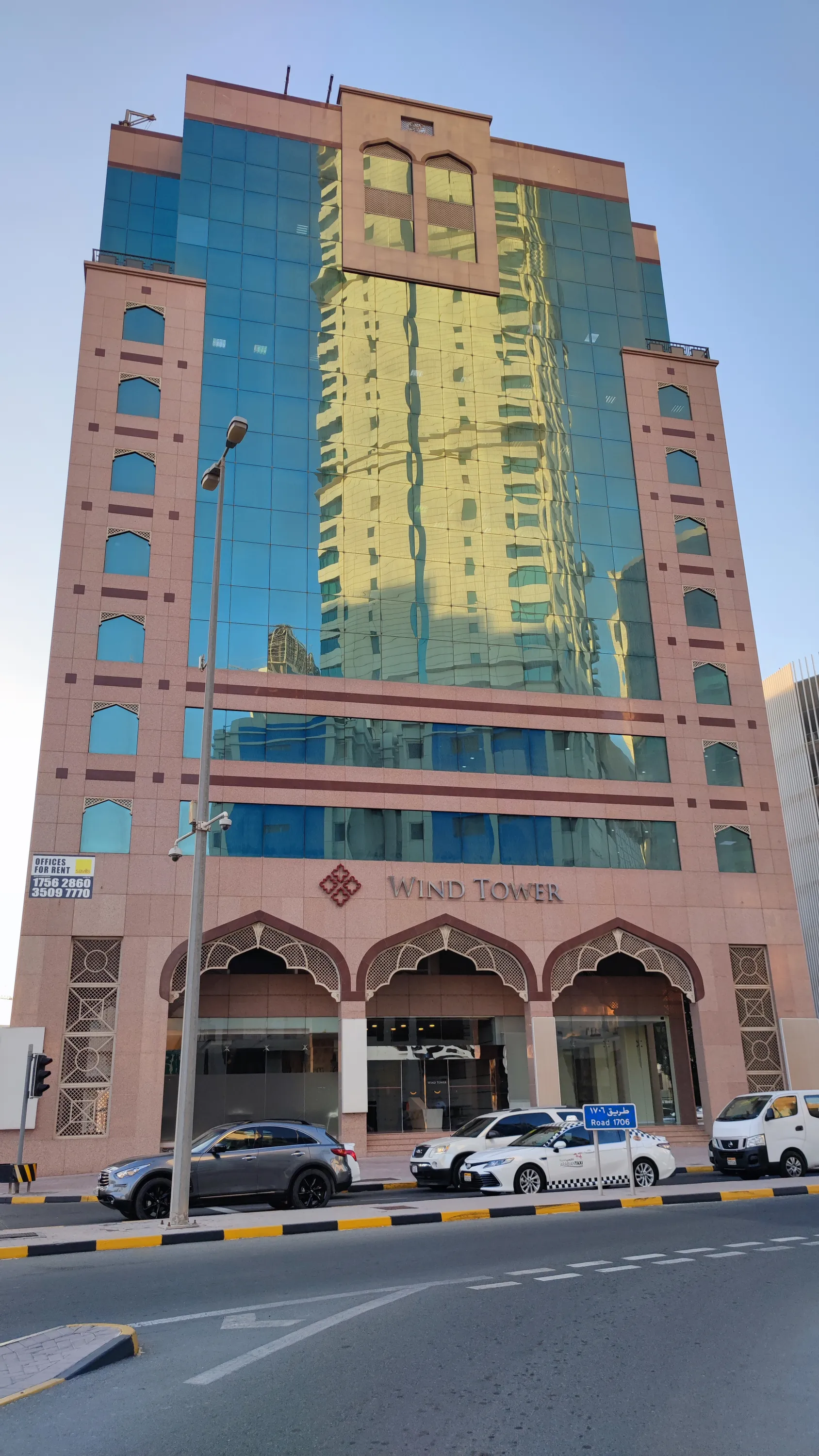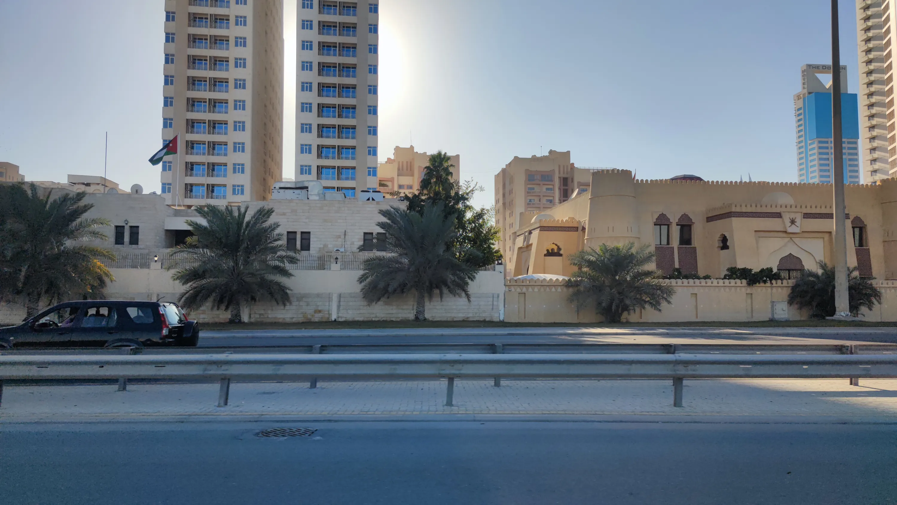 Мене особливо забавляє, що тут навіть в назвах деяких не надто високих будівель нерідко присутнє слово “Tower”, ось як тут, наприклад. В цьому будинку максимум 12 поверхів. Ну який це tower? Ну про що ви говорите? Я ще б зрозумів, якби це було десь в Нікосії, де забудова переважно малоповерхова і найвищий будинок має лише 11 поверхів. Але в Манамі, де є височенні хмарочоси, називати 12-поверхову будівлю “Tower” — це смішно: