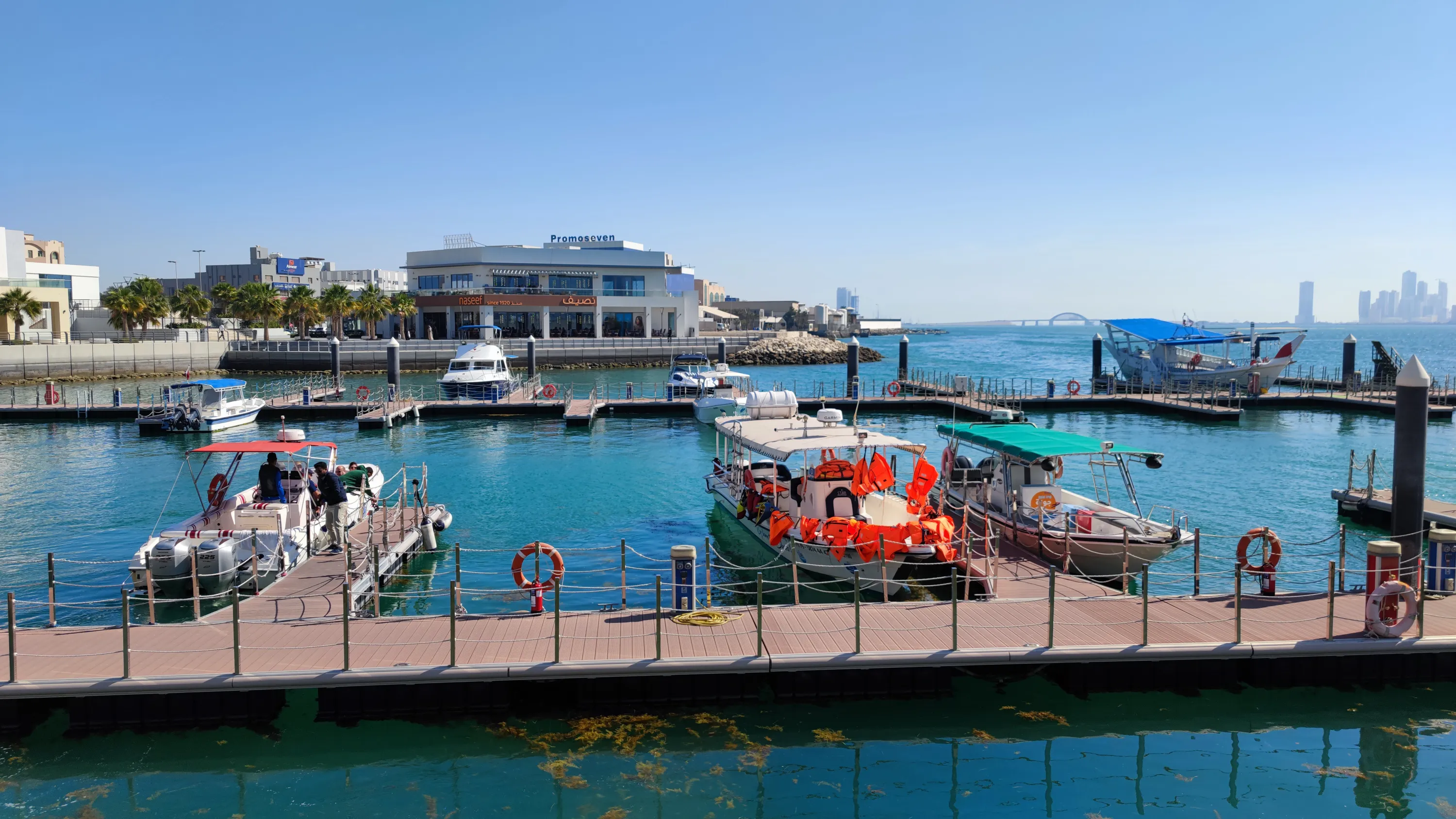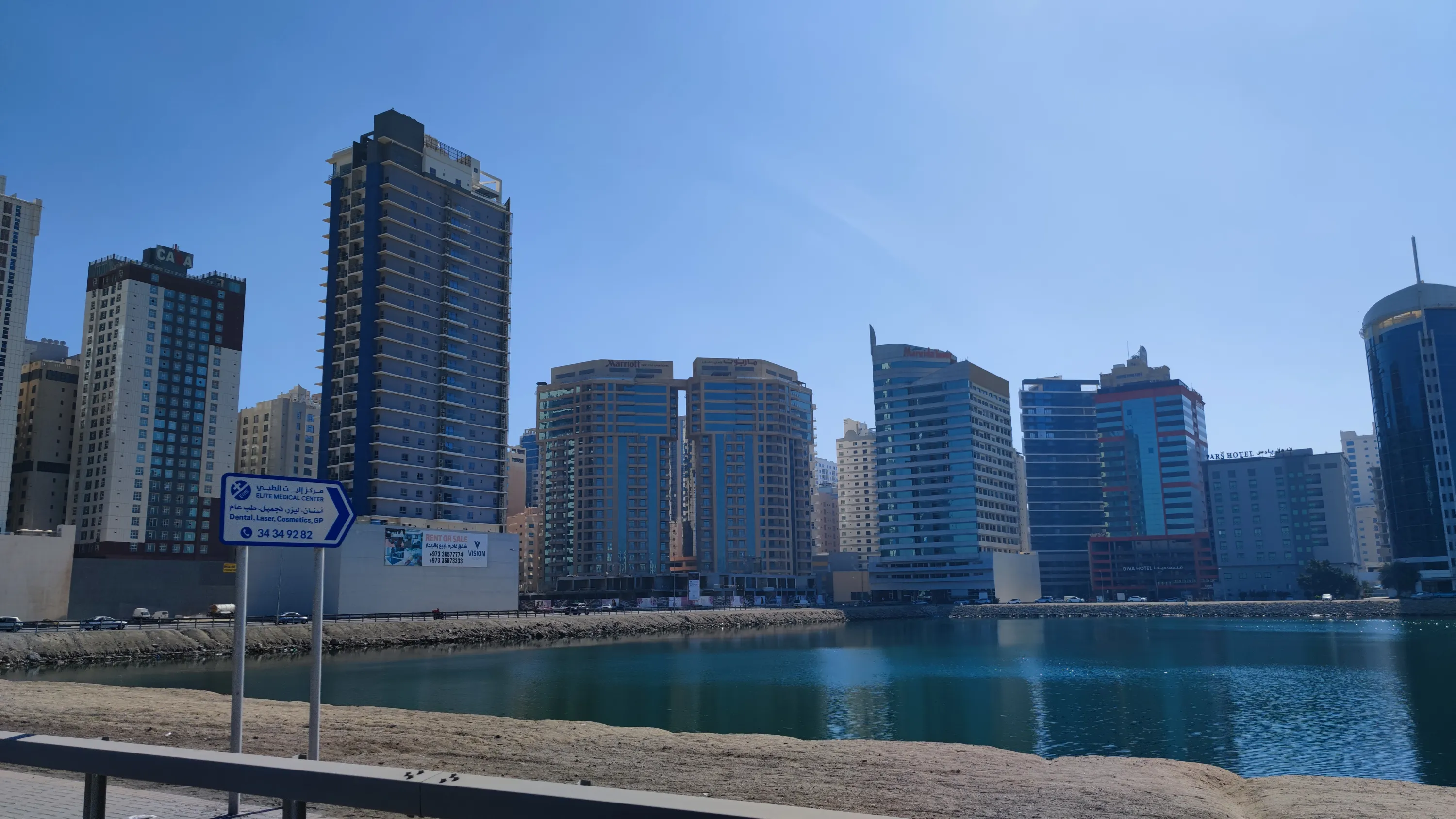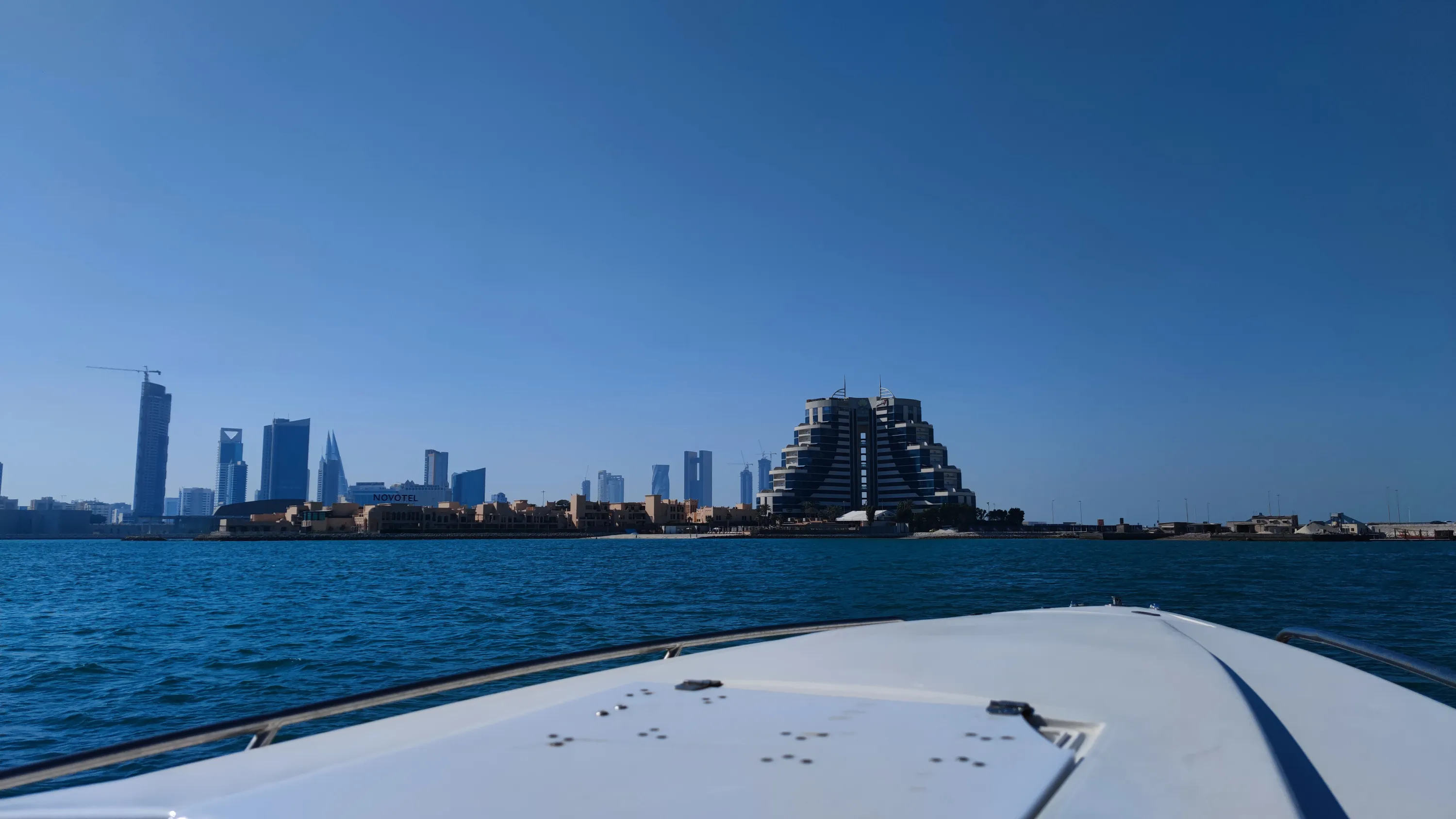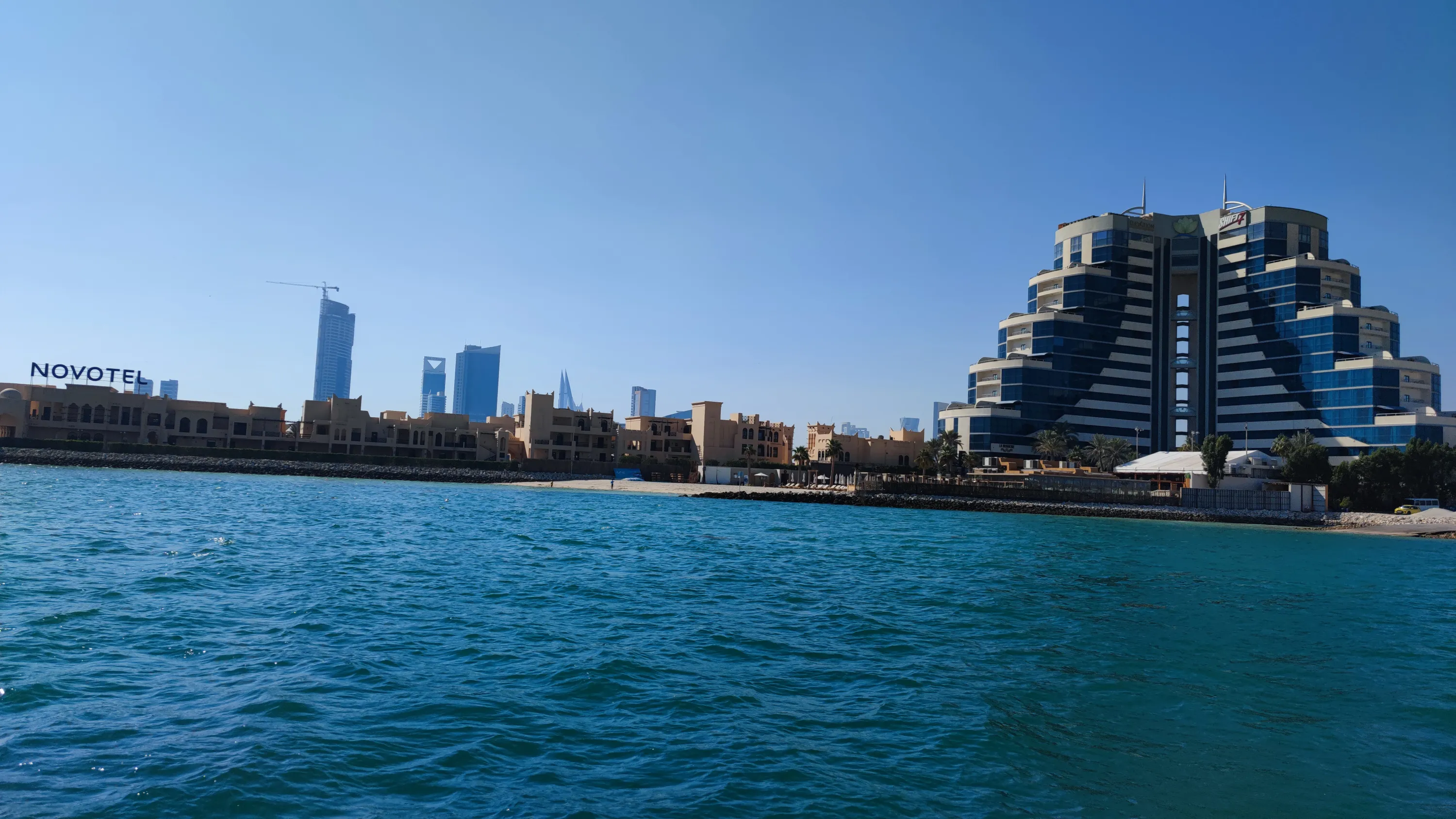 Готель Novotel з курортною зоною на штучному острові, розташованому між Манамою та Мухарраком (адміністративно належить Манамі), впритул до одного з мостів, який з’єднує острів Мухаррак з головним островом: