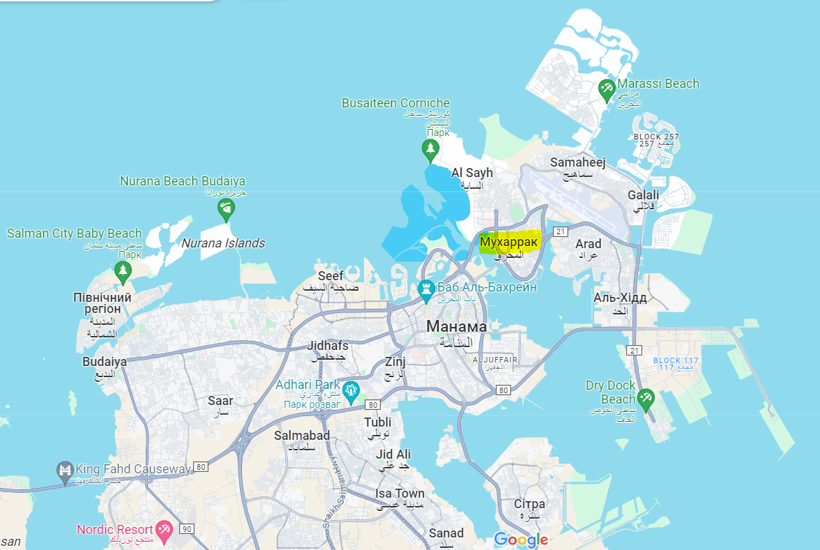 До речі, проїжджаючи це місце, ми помітили одну цікаву річ на Google-картах — вони показують, ніби тут є станція метро, хоча ніякого метро в Манамі немає. Однак, щоб не надто відставати в цьому плані від сусідів по регіону, таких як ОАЕ та Катар, його тут планують побудувати найближчими роками. А отже є шанси, що ця станція колись тут таки дійсно з’явиться: