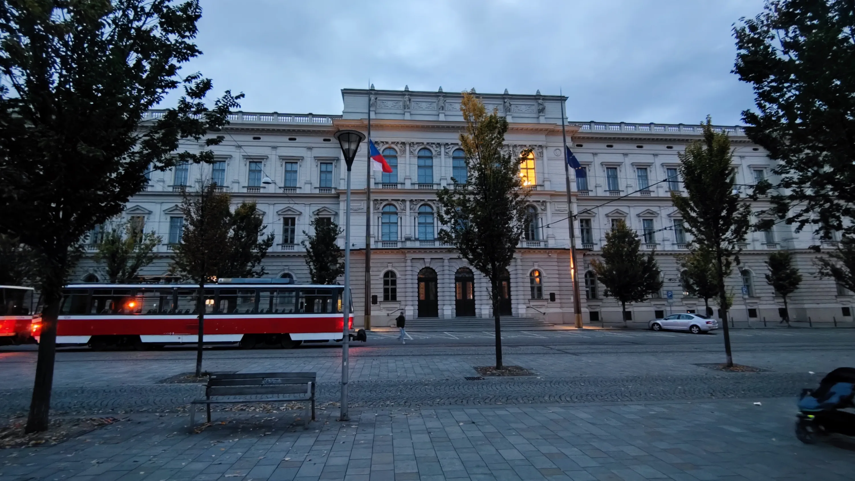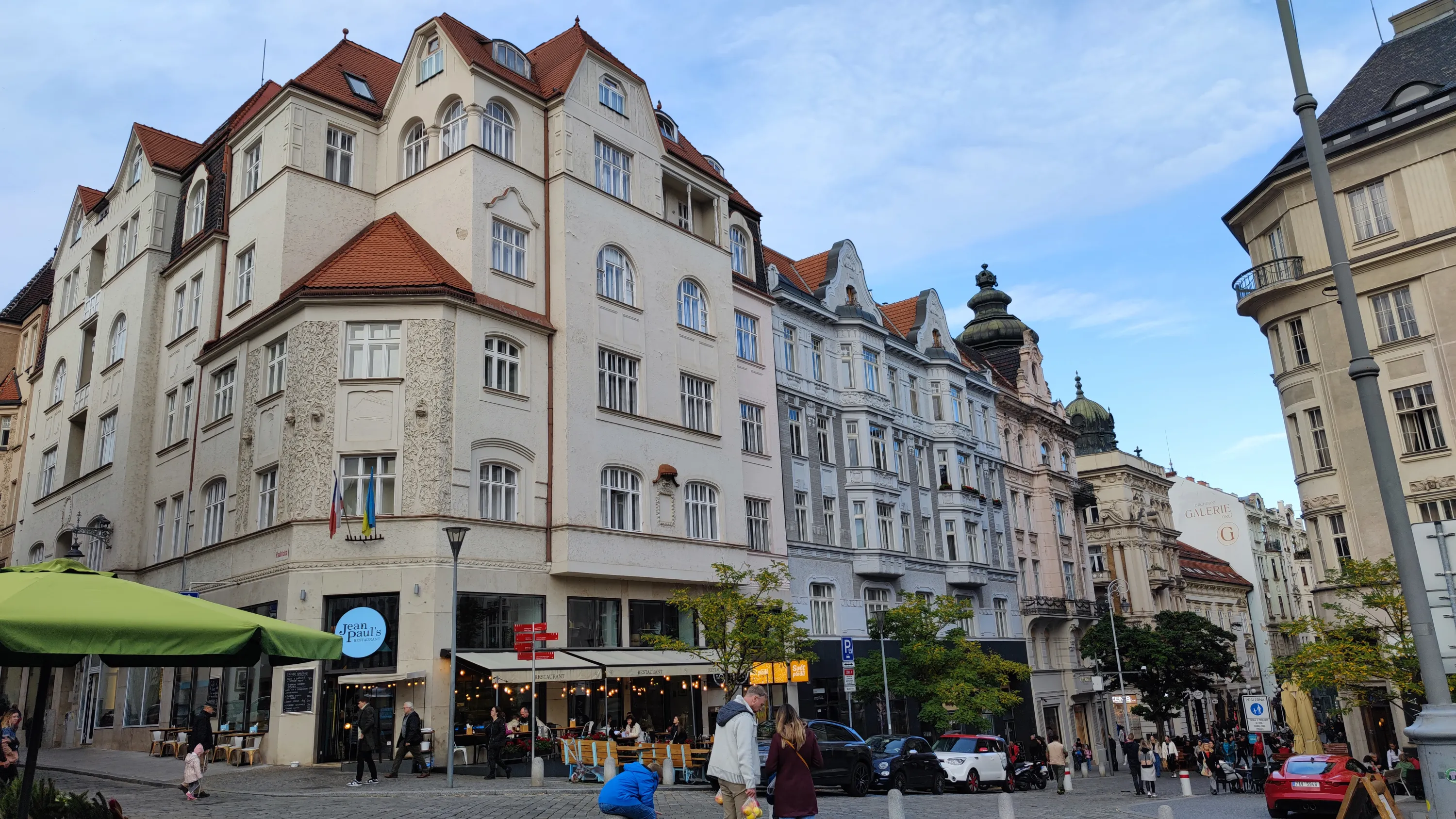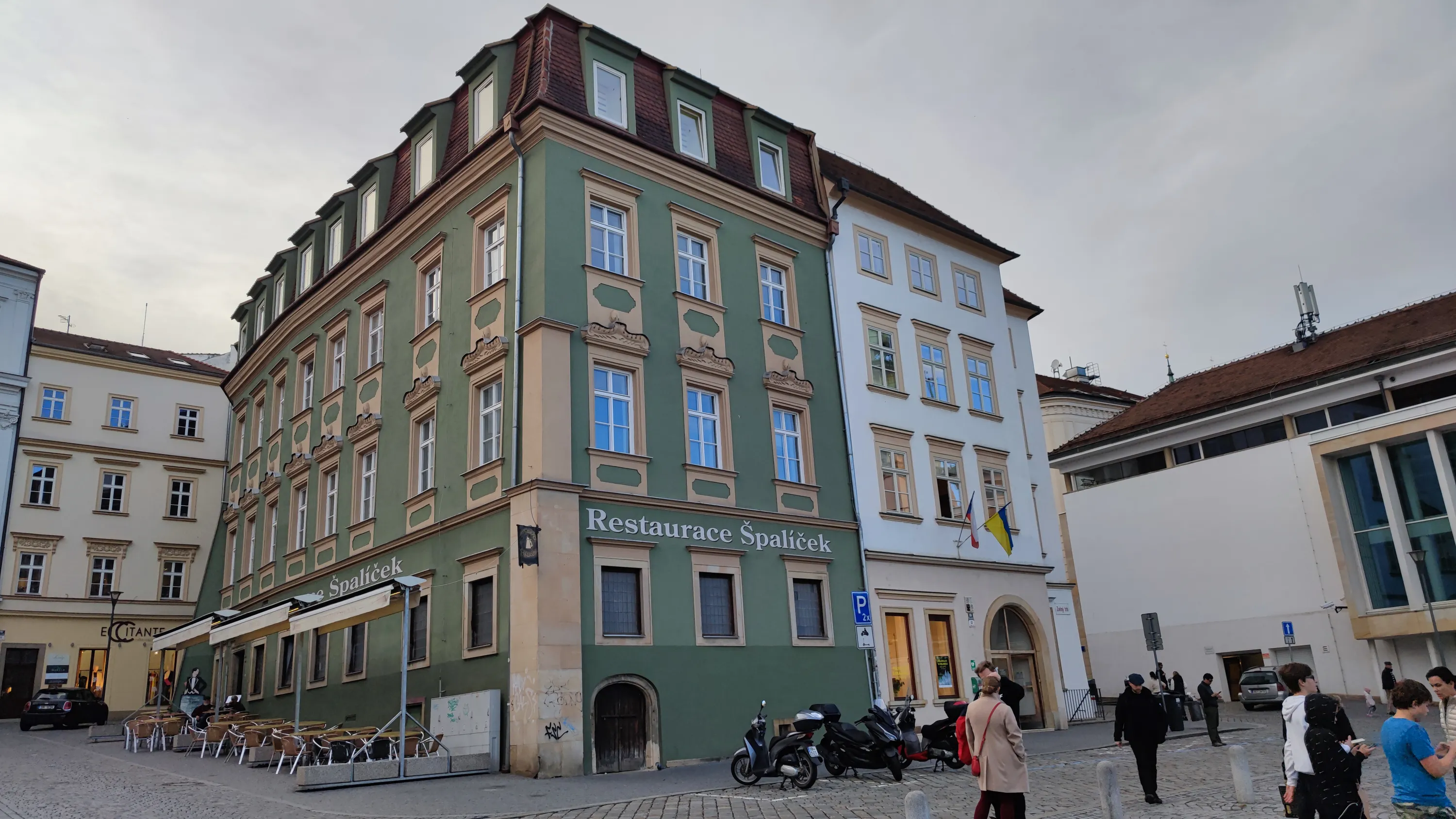 Зверніть увагу — лише на цій площі аж на трьох будівлях розвішані українські прапори. Загалом їх тут досить багато, майже як у Варшаві. Та й наших громадян сюди вимушено переїхало теж немало. Я чув на вулицях українську мову, напевно, частіше, ніж чеську 😊.