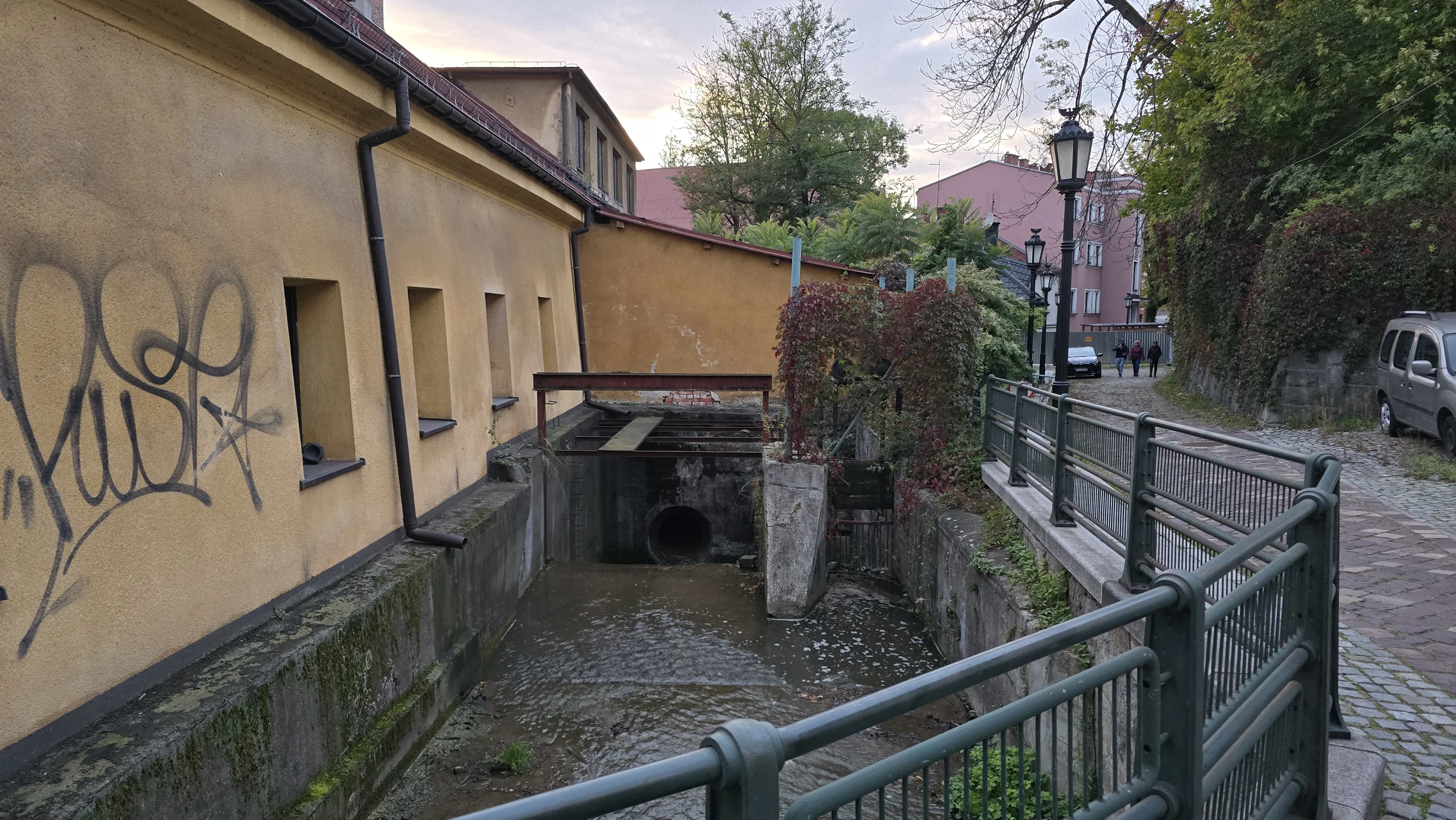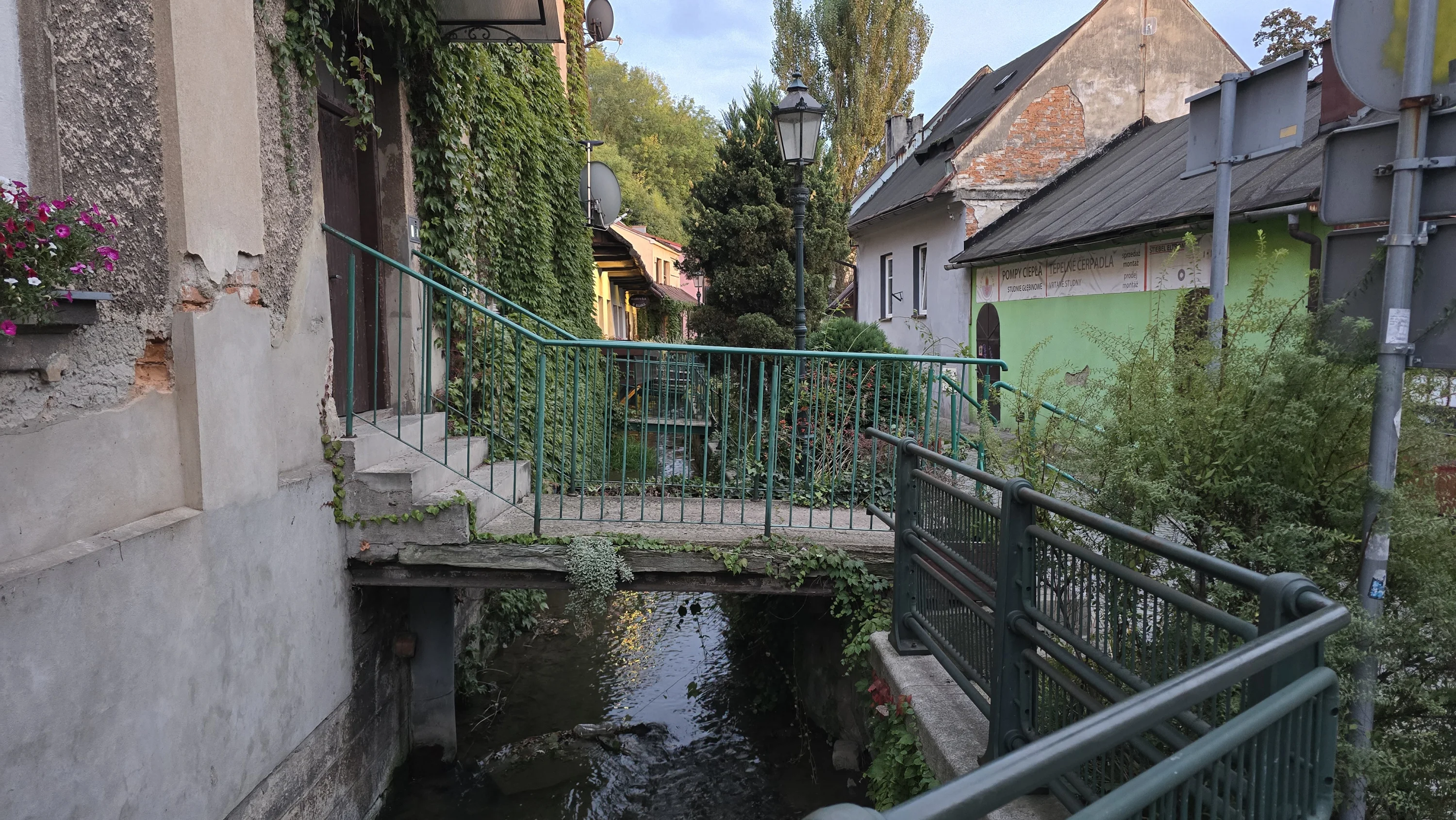 Якщо пройтися нижче, ви потрапите до одного з найбільш “інстаграмних” куточків Цешина, який називають Цешинською Венецією. Вона знаходиться на вулиці Пшикопа над невеликим штучним каналом. Вздовж каналу стоять старі будинки, з’єднані мостами з дорогою: