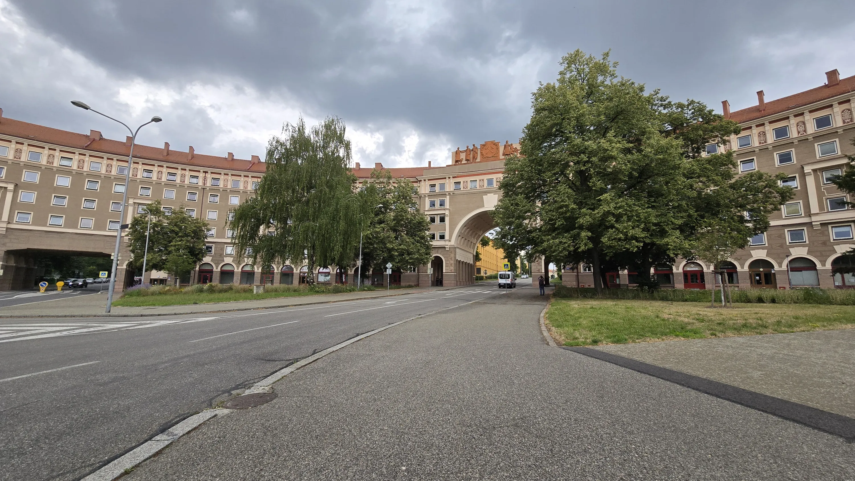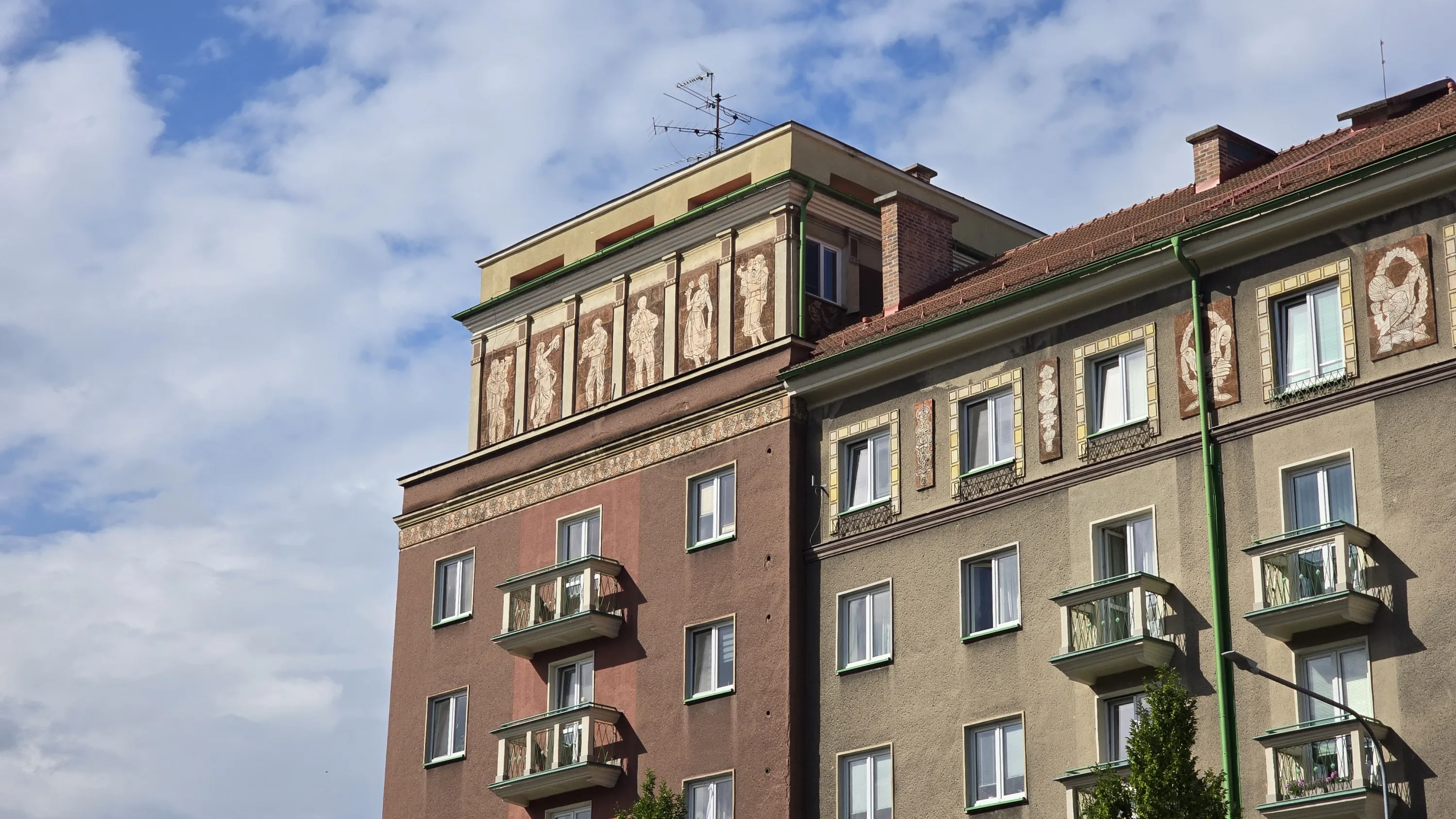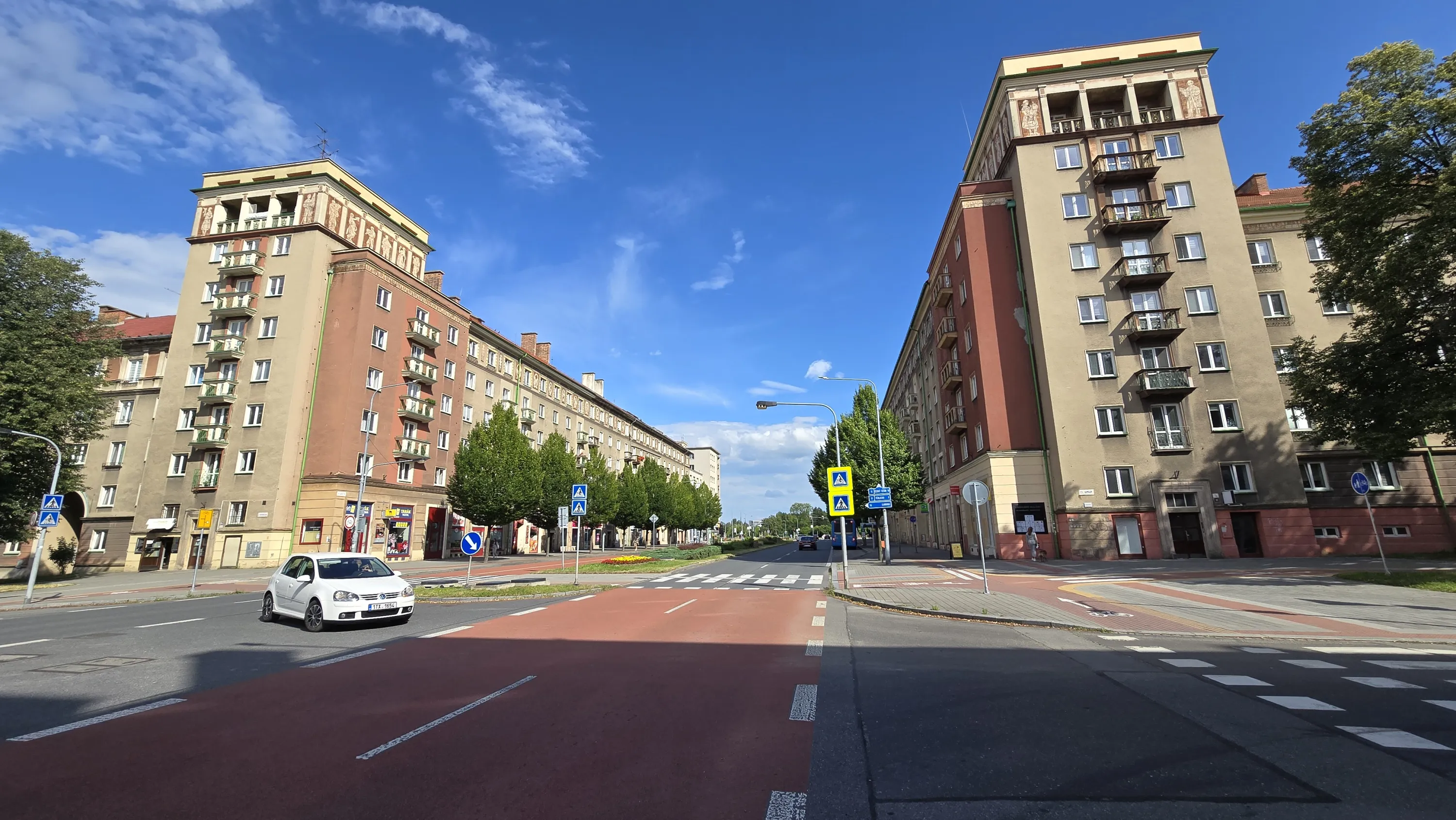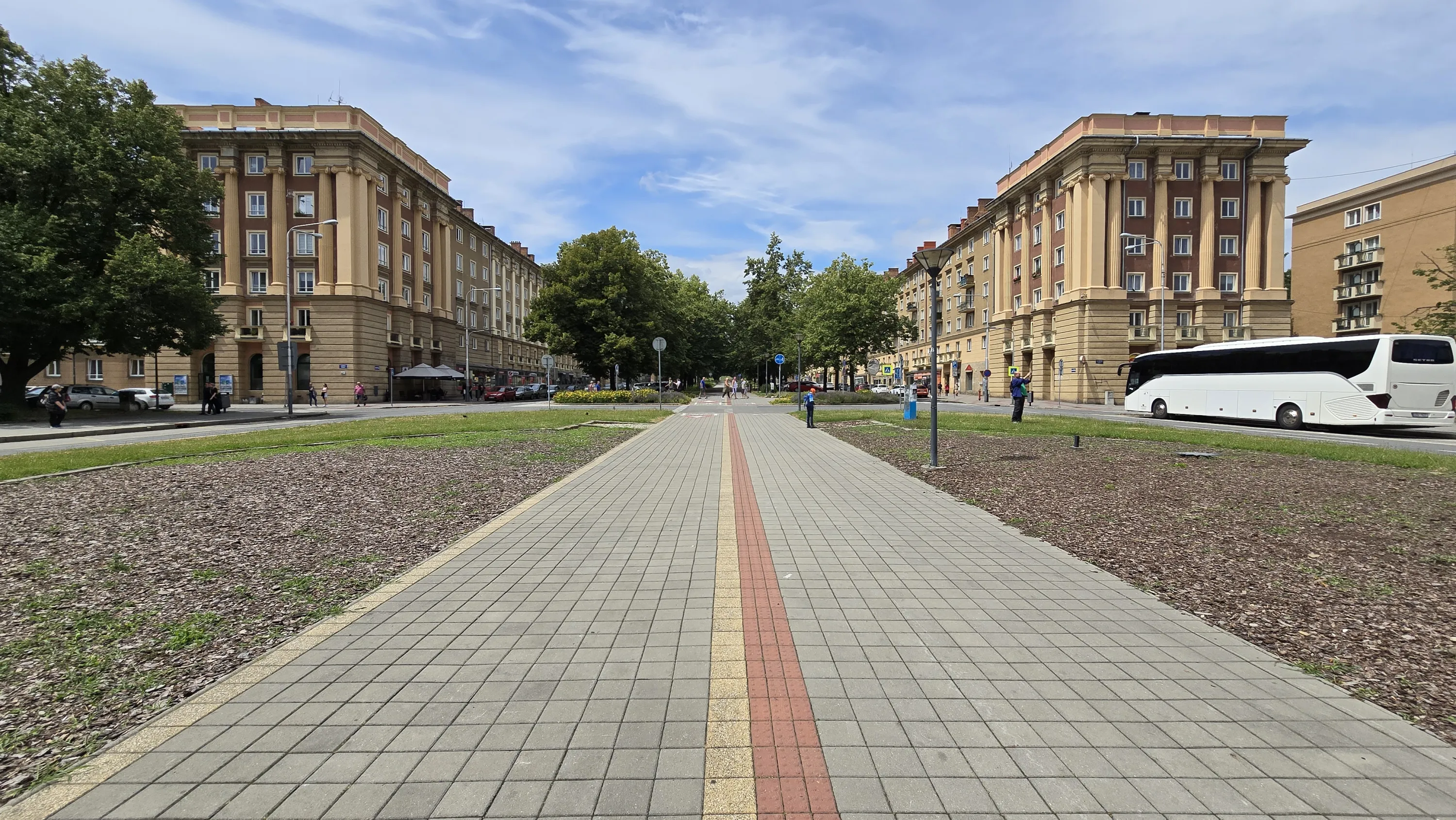 Тут будинки — не просто сірі монотонні соціалістичні коробки. Більшість пофарбовані у жовтих та червоних тонах, а на верхніх поверхах навіть якісь зображення є, як, наприклад, на будинках з попередньої світлини: