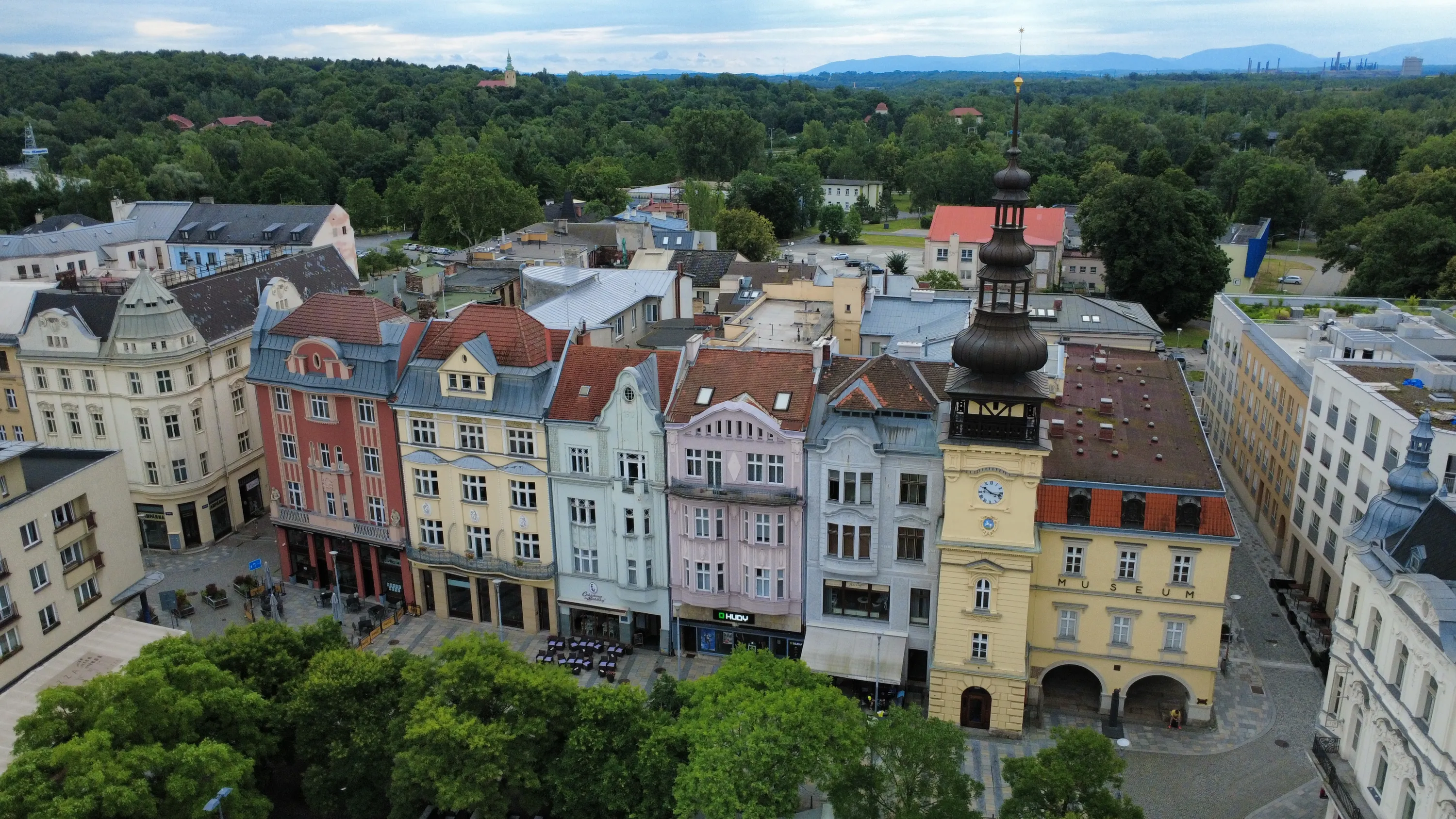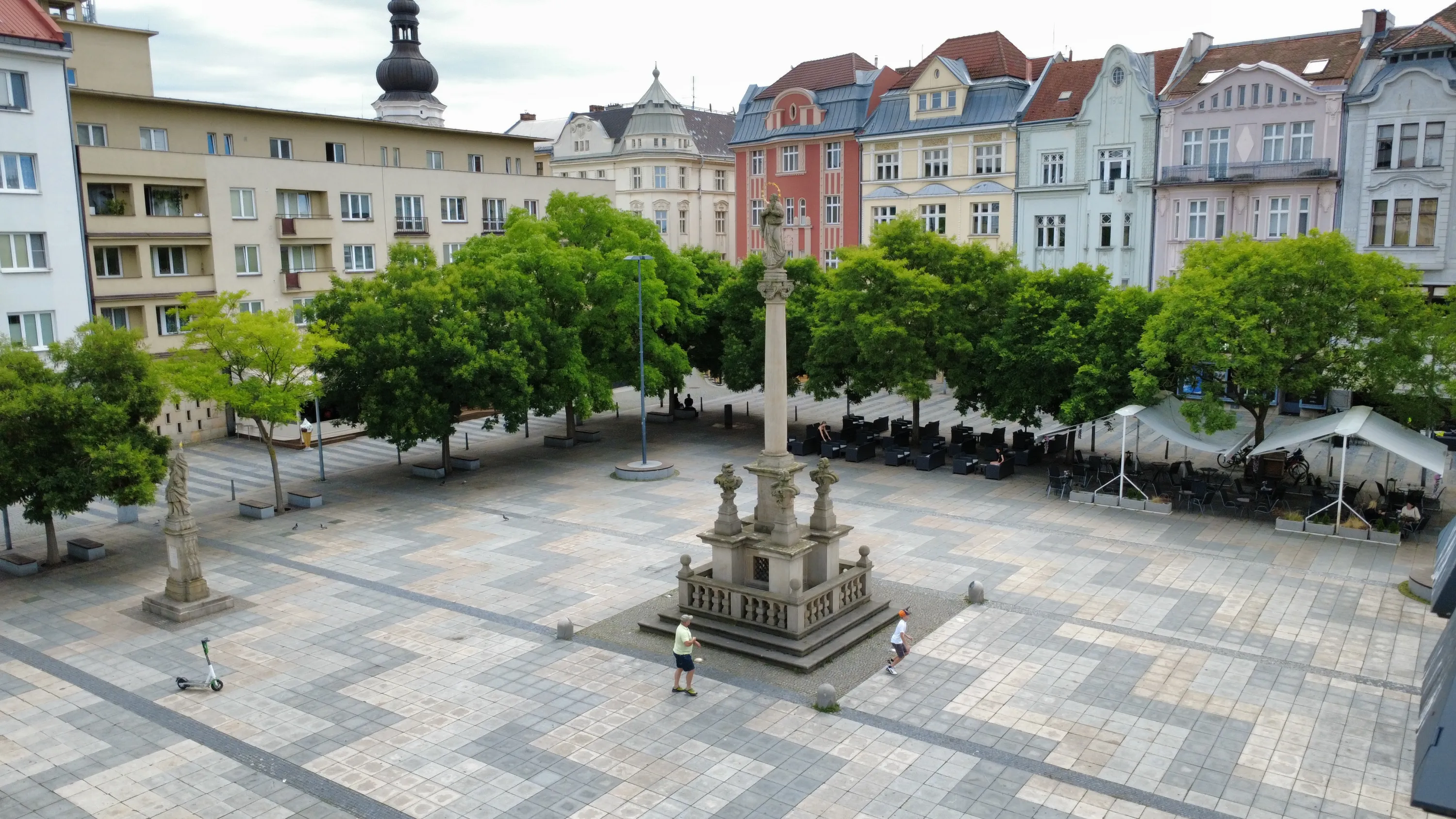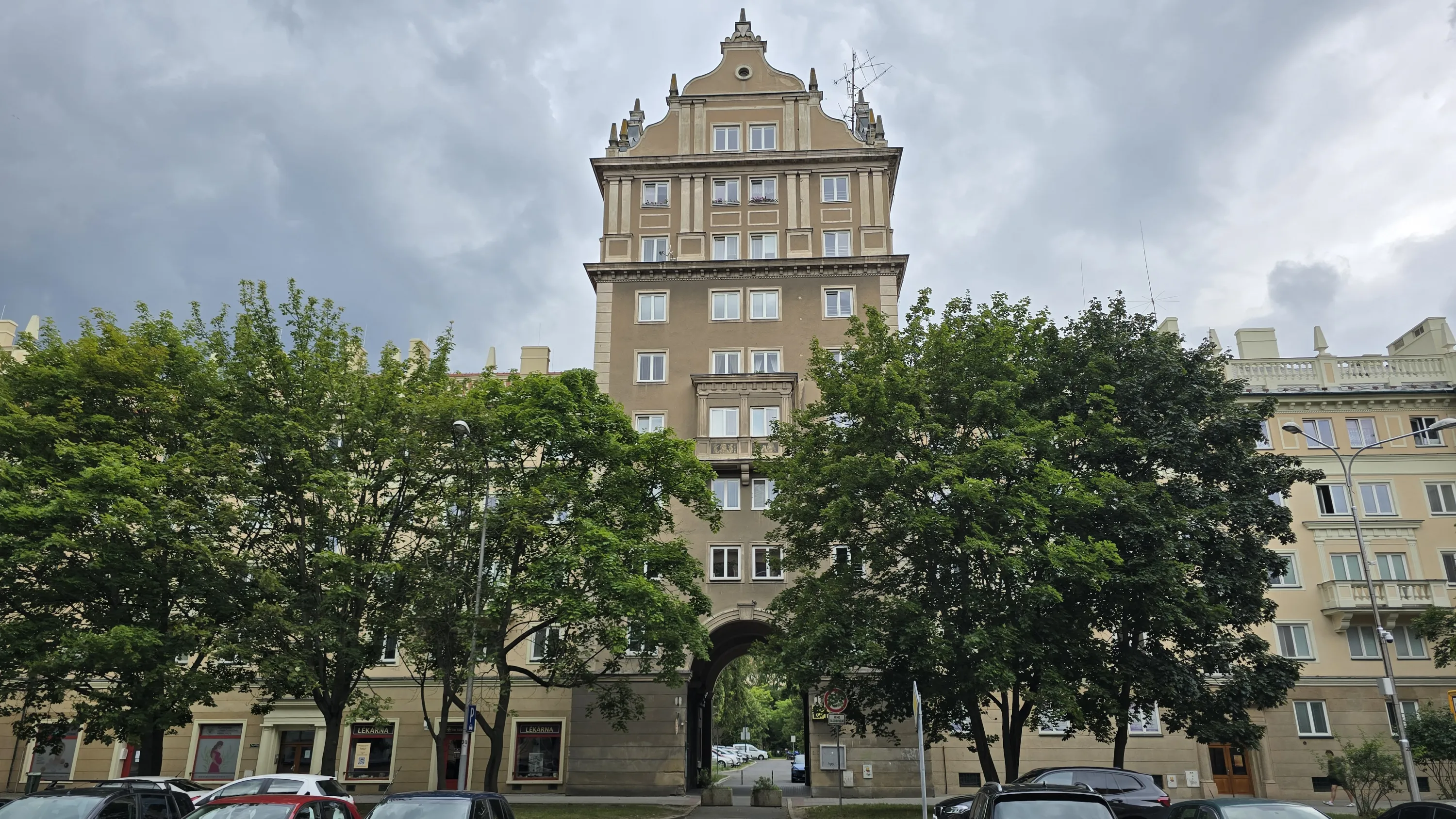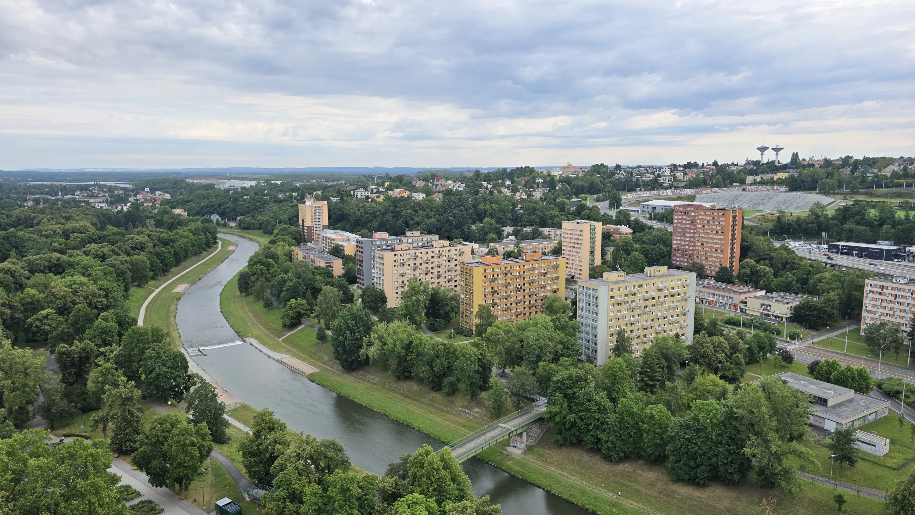 Цей район є цікавим з точки зору аерофотографування. Я хотів його пофотографувати з висоти, але тут у мене сталося непоправне — запустивши дрон з відносно безпечної точки, я хотів його вирівняти, щоб він був більш-менш по центру, але набрав недостатньо висоти і випадково влетів у дерево, де він заплутався у гілках на висоті 10 метрів. Запустити його звідти я не можу, бо пропелери заблоковані. Там ще й таке дерево, що на нього не вилізеш. Намагався збити його звідти камінням та палками, але він так заплутався, що це взагалі не варіант. Приблизно в цей момент починалася злива і вітер посилювався, я думав, може його вітром знесе, але і це не допомогло. Врешті решт я змирився з тим, що я його… ну, ви зрозуміли із заголовка. Добре, що після фотографування центральної частини Острави я завантажив фото з дрона на телефон і у мене хоча б це збереглося.