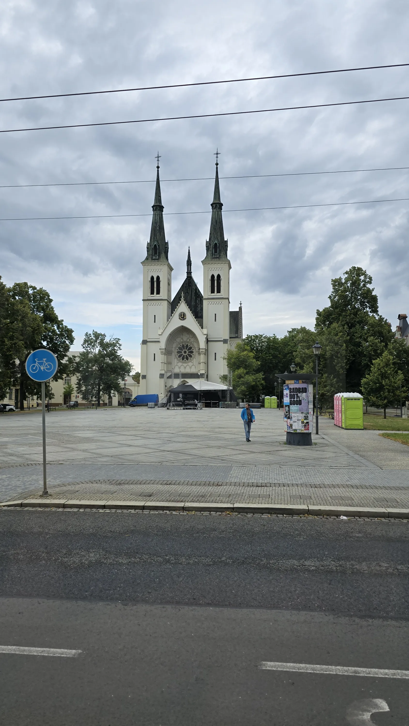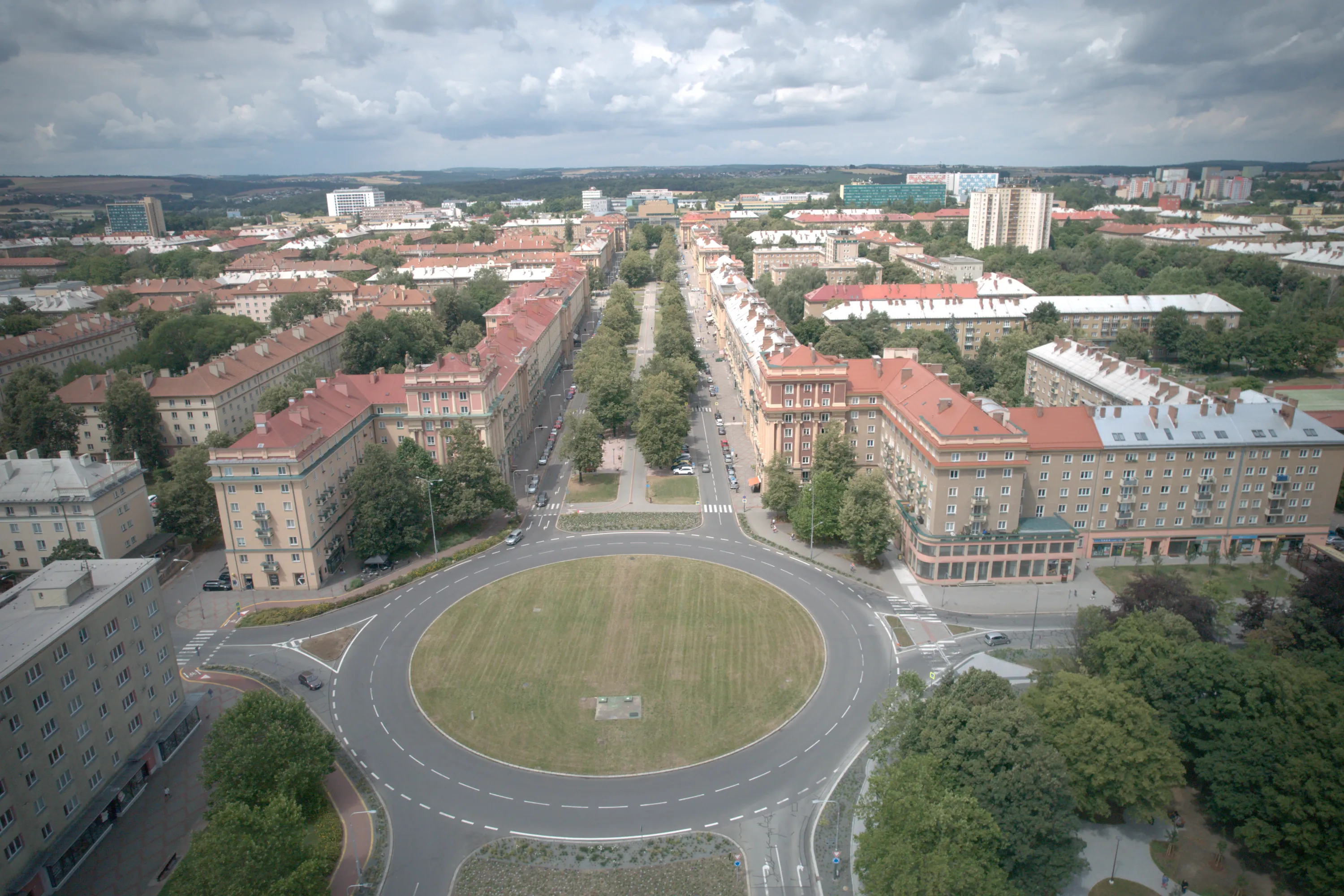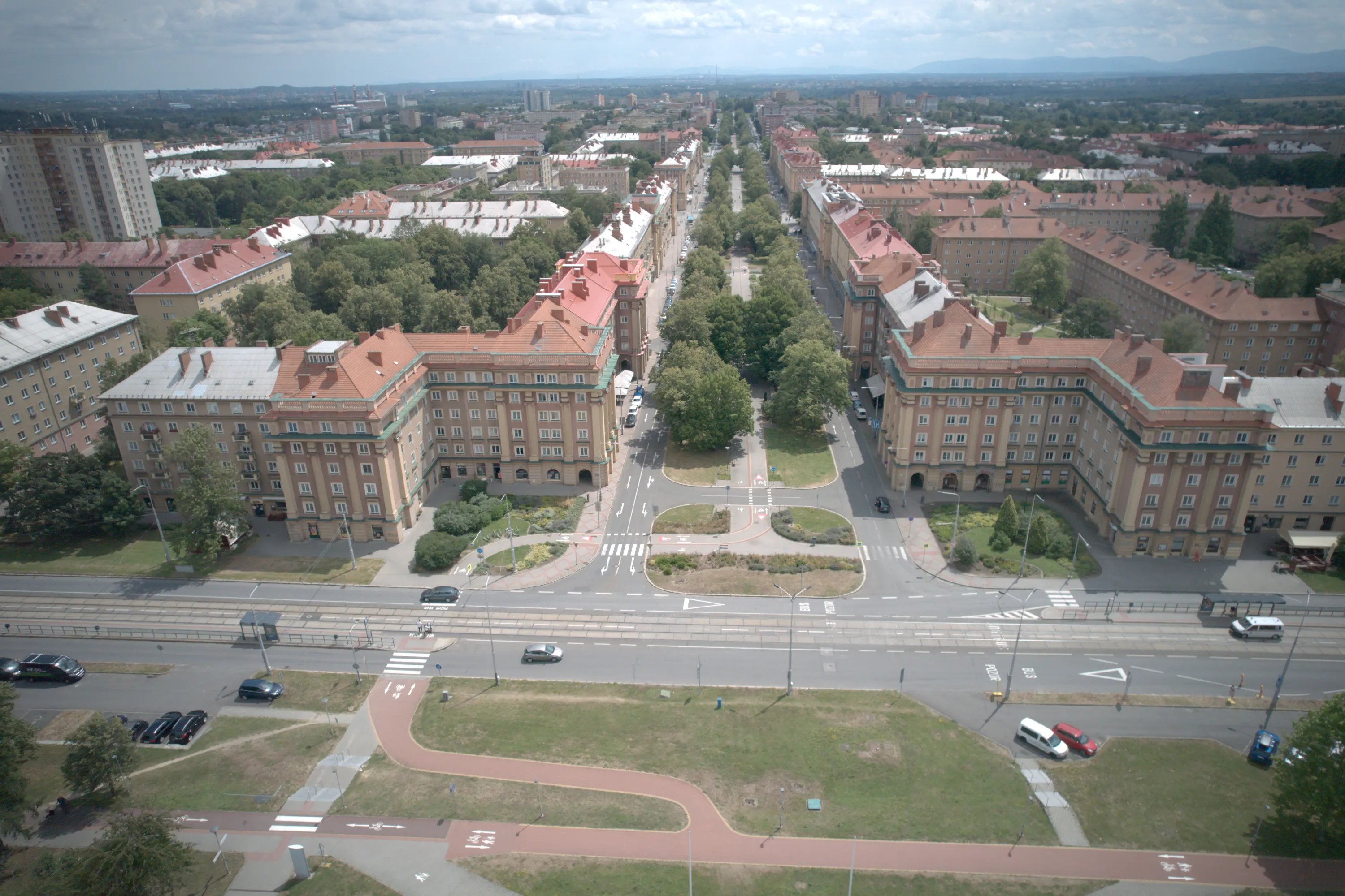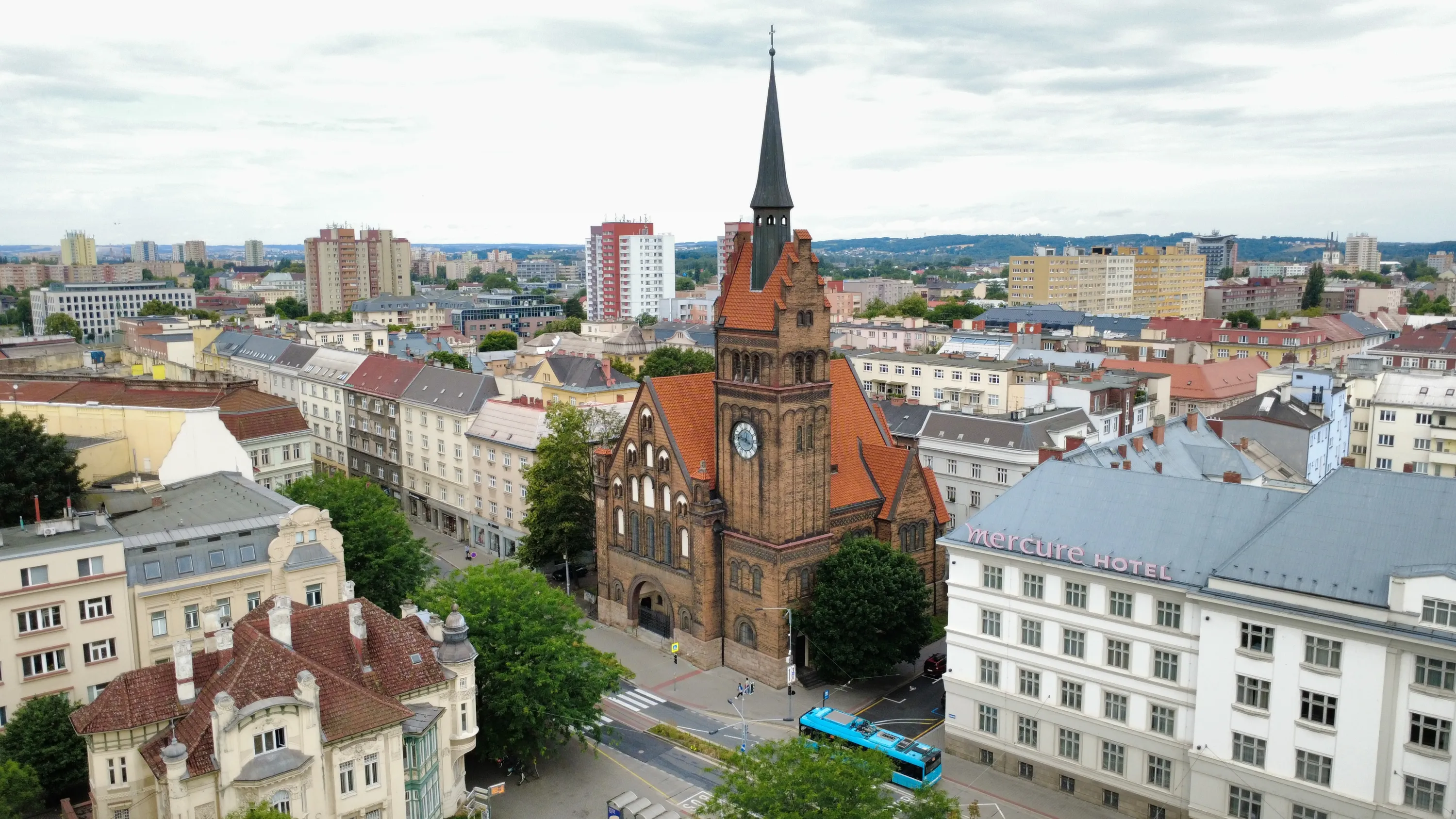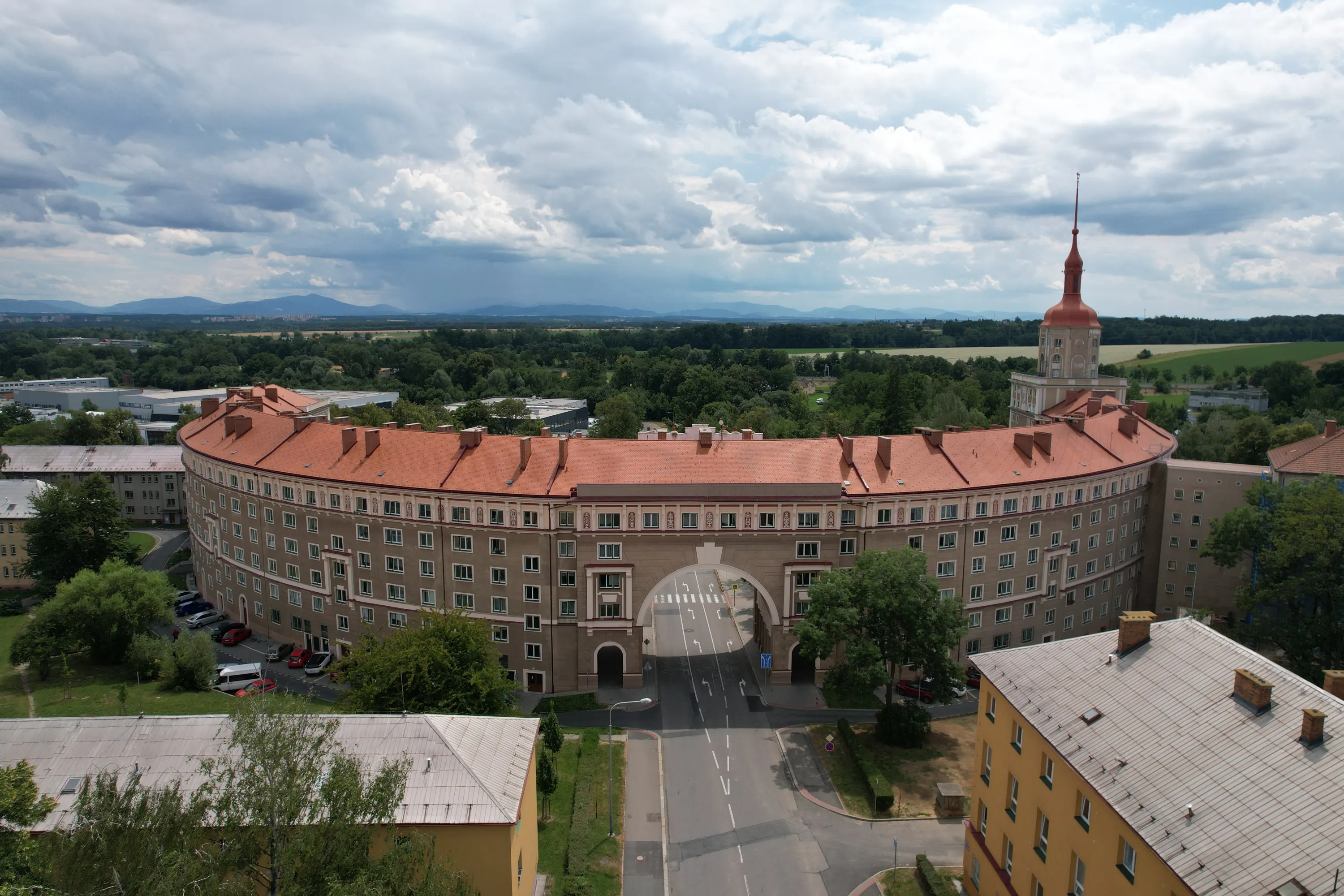Цей район є цікавим з точки зору аерофотографування. Я хотів його пофотографувати з висоти, але тут у мене сталося непоправне — запустивши дрон з відносно безпечної точки, я хотів його вирівняти, щоб він був більш-менш по центру, але набрав недостатньо висоти і випадково влетів у дерево, де він заплутався у гілках на висоті 10 метрів. Запустити його звідти я не можу, бо пропелери заблоковані. Там ще й таке дерево, що на нього не вилізеш. Намагався збити його звідти камінням та палками, але він так заплутався, що це взагалі не варіант. Приблизно в цей момент починалася злива і вітер посилювався, я думав, може його вітром знесе, але і це не допомогло. Врешті решт я змирився з тим, що я його… ну, ви зрозуміли із заголовка. Добре, що після фотографування центральної частини Острави я завантажив фото з дрона на телефон і у мене хоча б це збереглося.