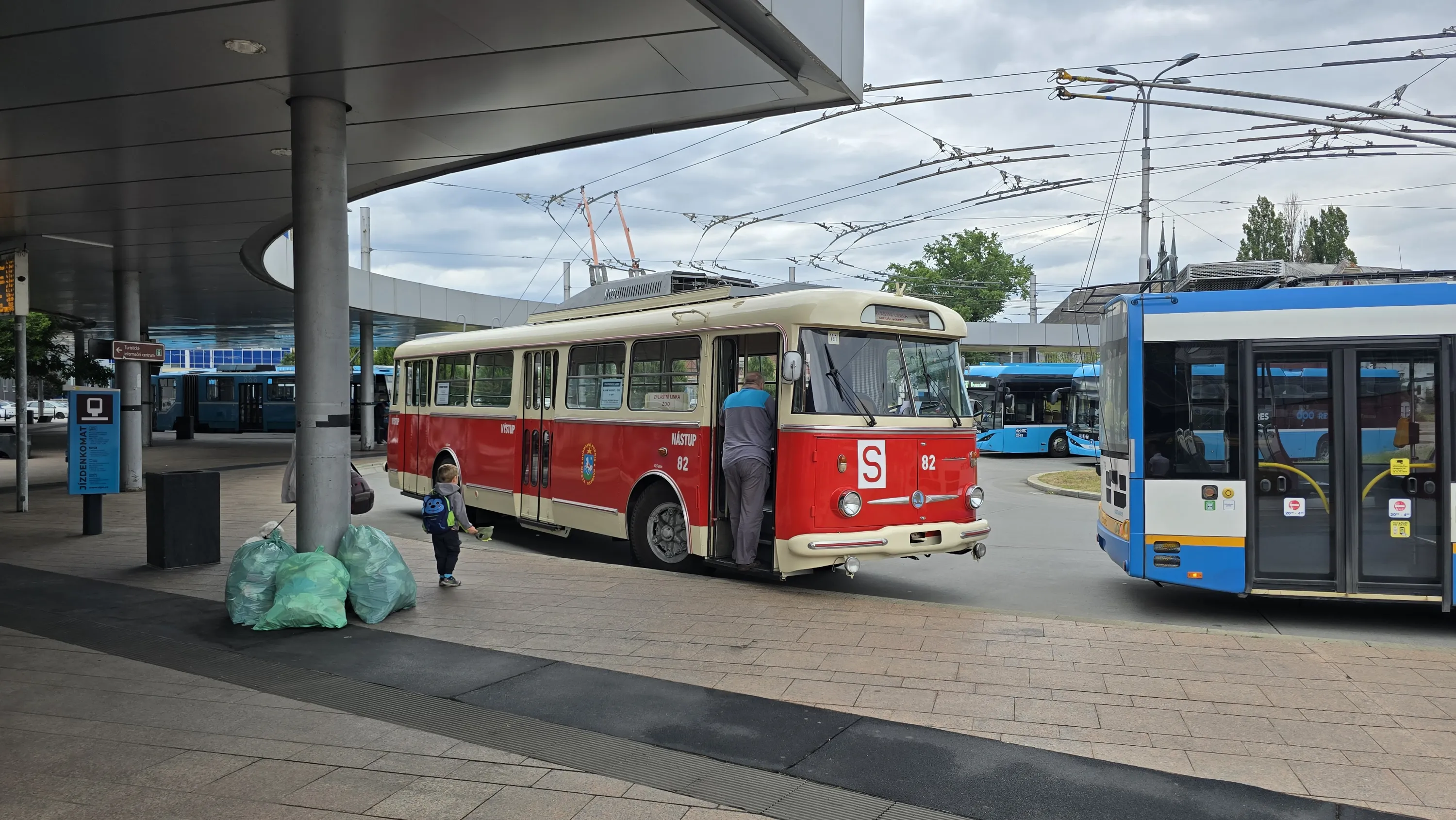 Після того, як ми вийшли з вокзалу, перше, що ми побачили — це чеський ретро-тролейбус Škoda: