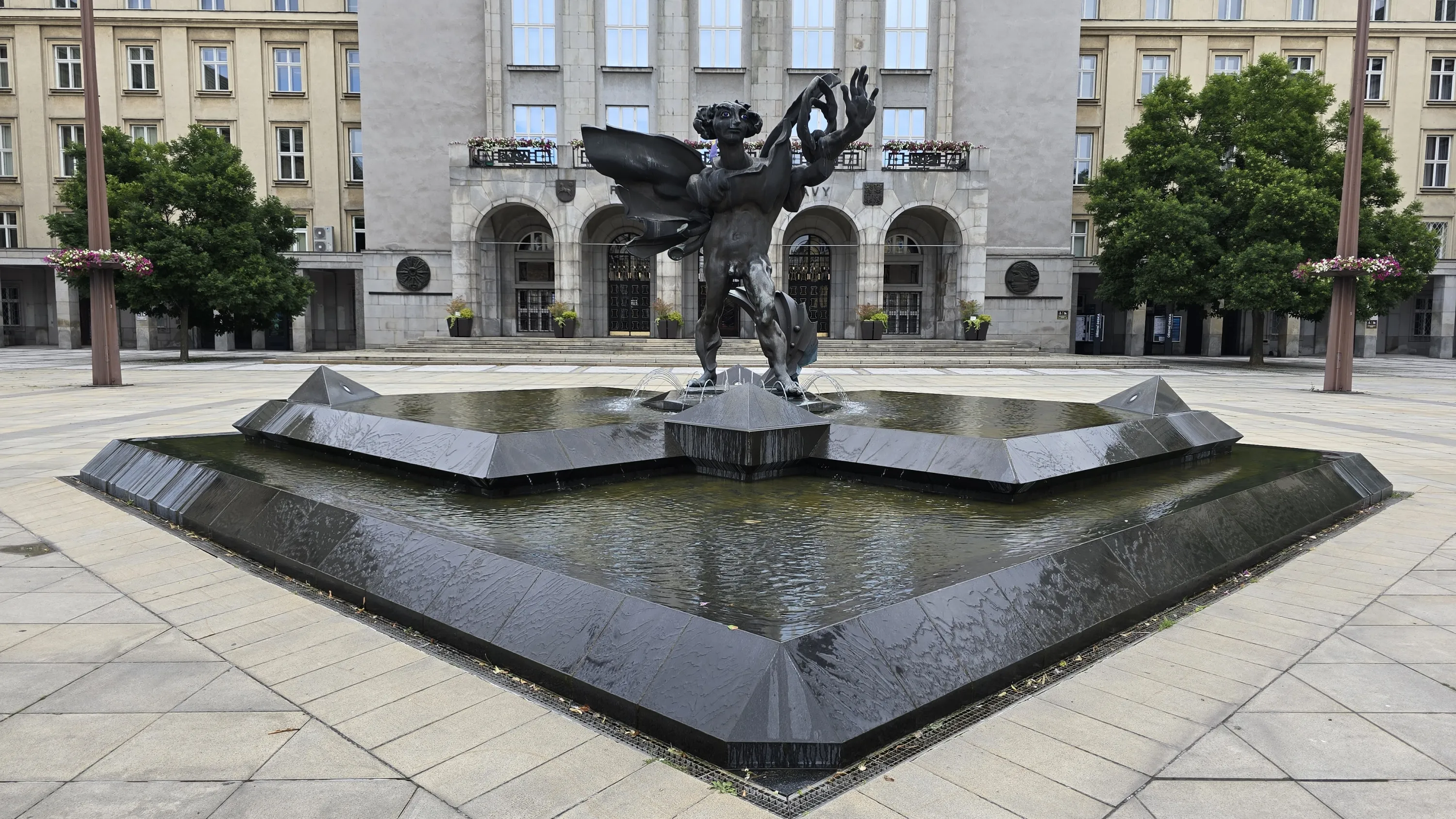 Перед міськрадою — фонтан з якоюсь дивною скульптурою: