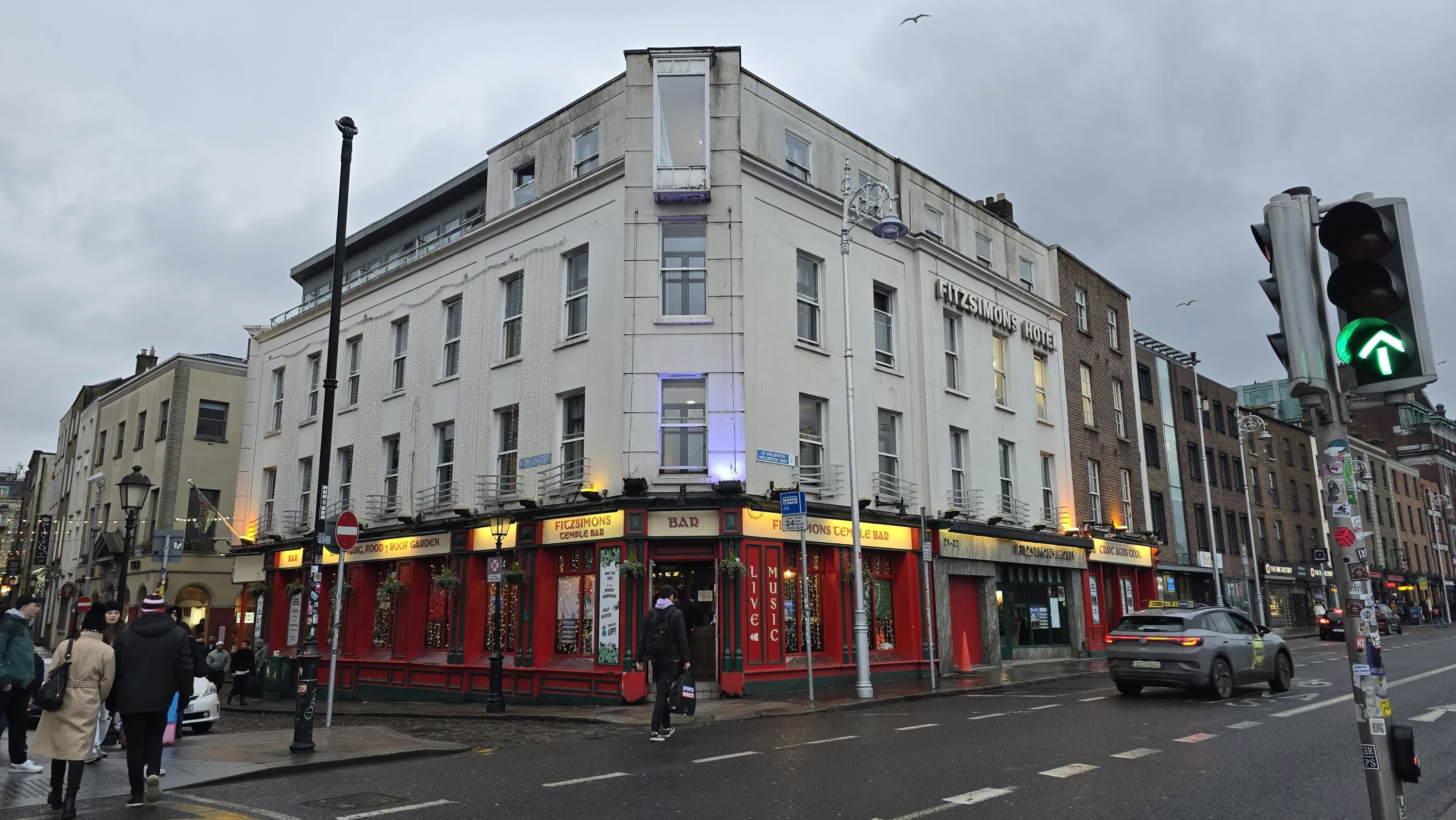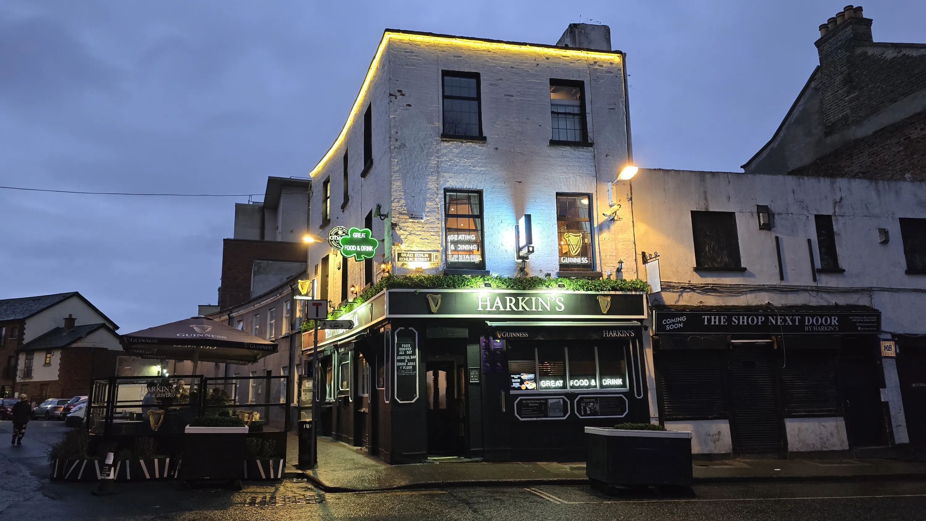А ось типовий ірландський бар з типовим зовнішнім оформленням (перший поверх). За великим рахунком візитівкою Ірландії є не стільки якісь архітектурні пам’ятки, скільки саме пивні бари, які є таким своєрідним брендом. Адже подібні бари з типовим ірландським колоритом можна знайти майже в кожній країні (за винятком хіба що тих, де алкоголь вживати заборонено), і це не просто так: