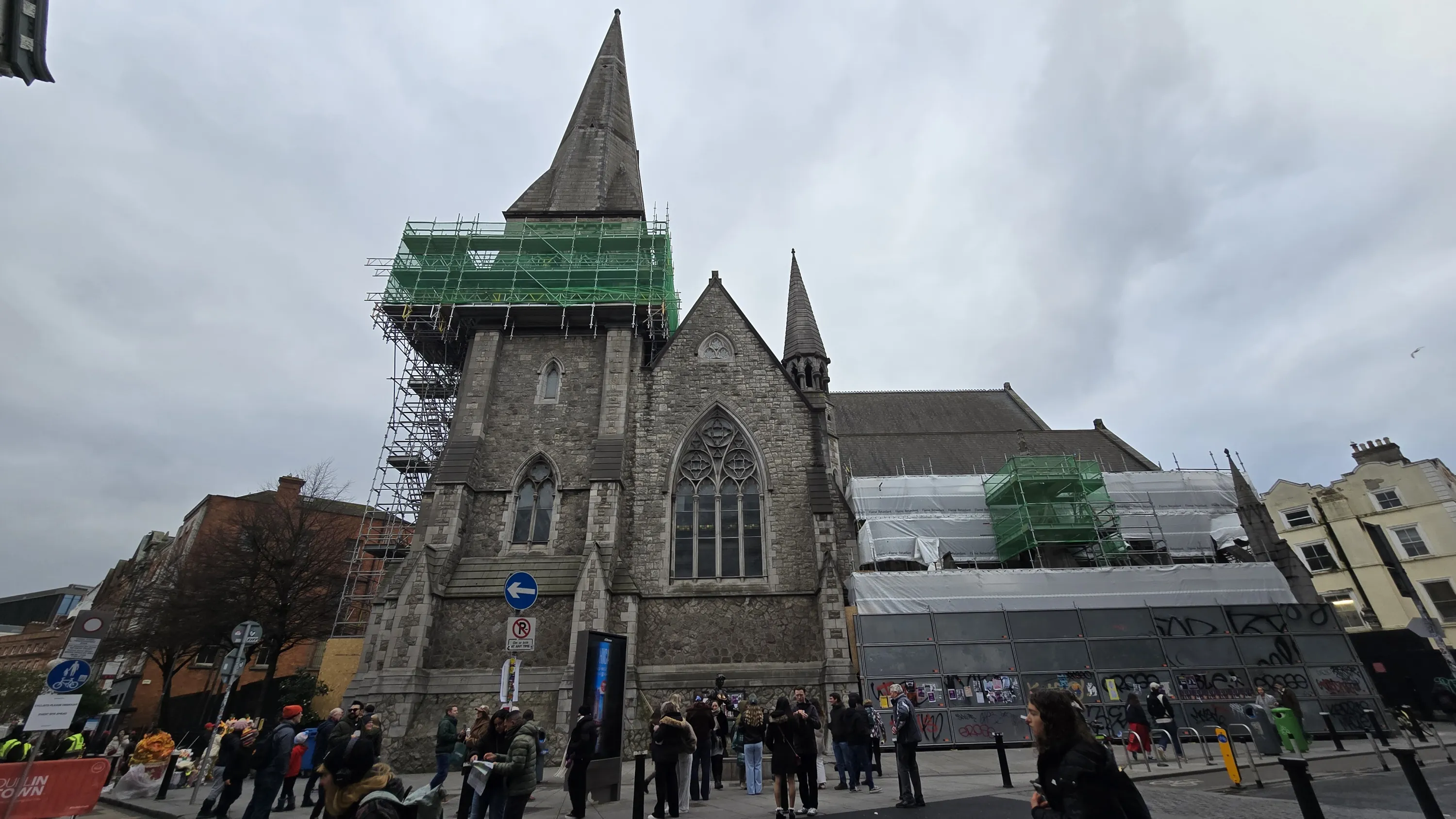 Біля церкви стоїть пам’ятник Моллі Мелоун — персонажу з народної ірландської пісні про гарну дівчину, яка торгувала на вулицях Дубліна і померла молодою від лихоманки. І хоча в пісні ані слова не сказано про розмір її грудей, скульптор якось прийшов до висновку, що там було за що потриматися 😊. І судячи з потертостей, кожний турист вважає, що він просто зобов’язаний це зробити (класика!):