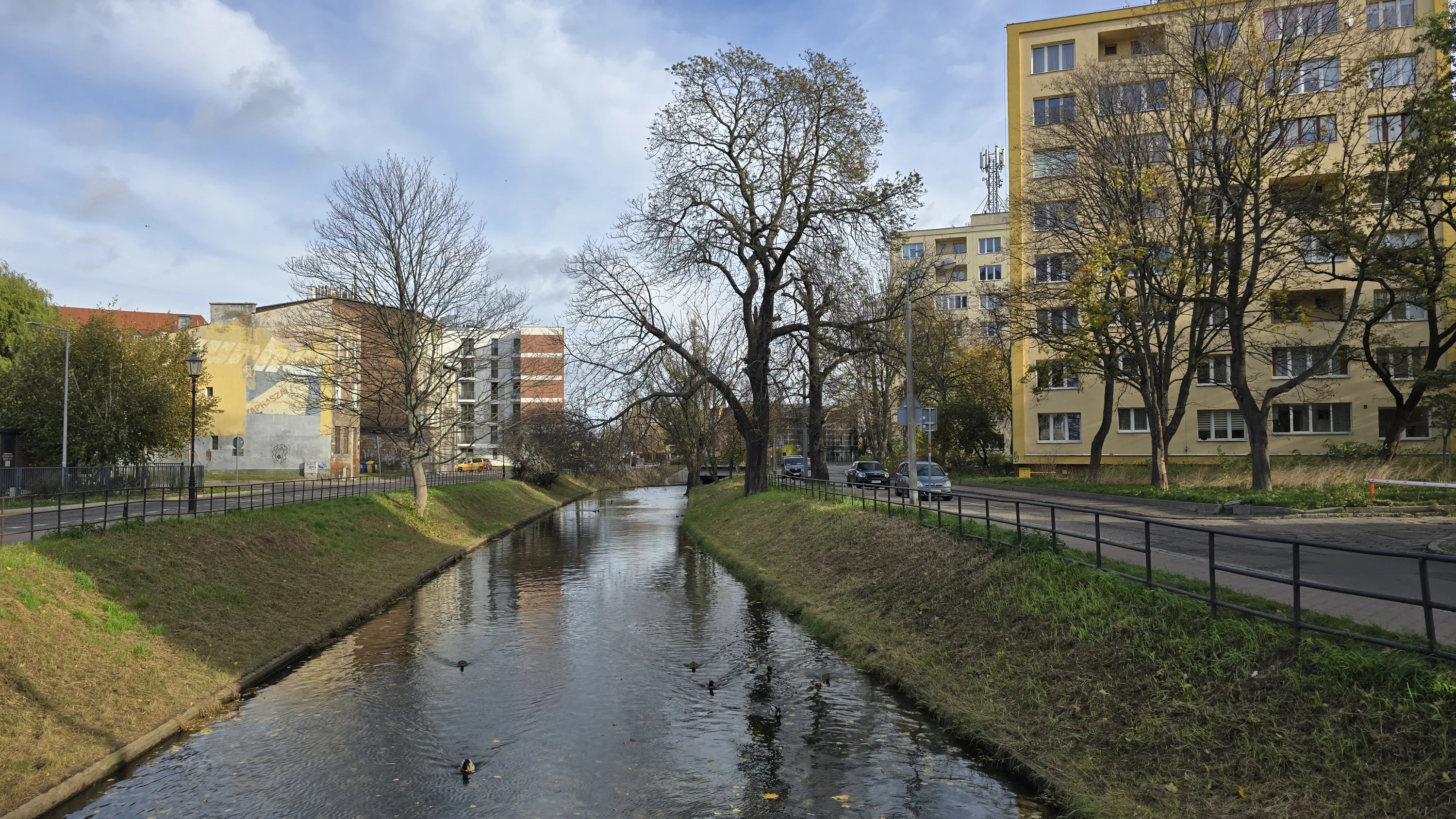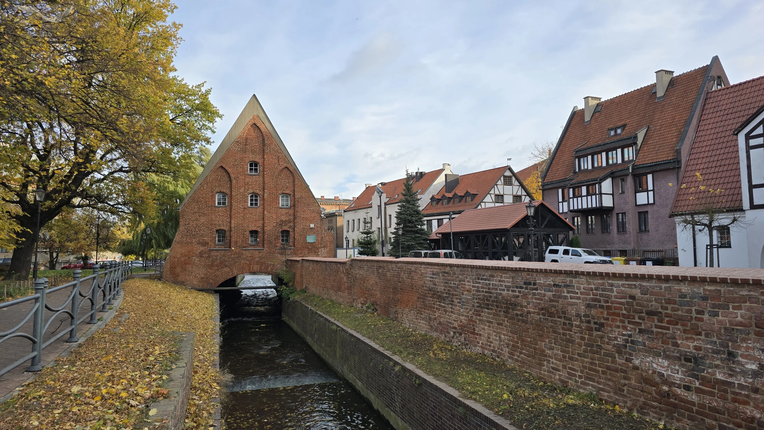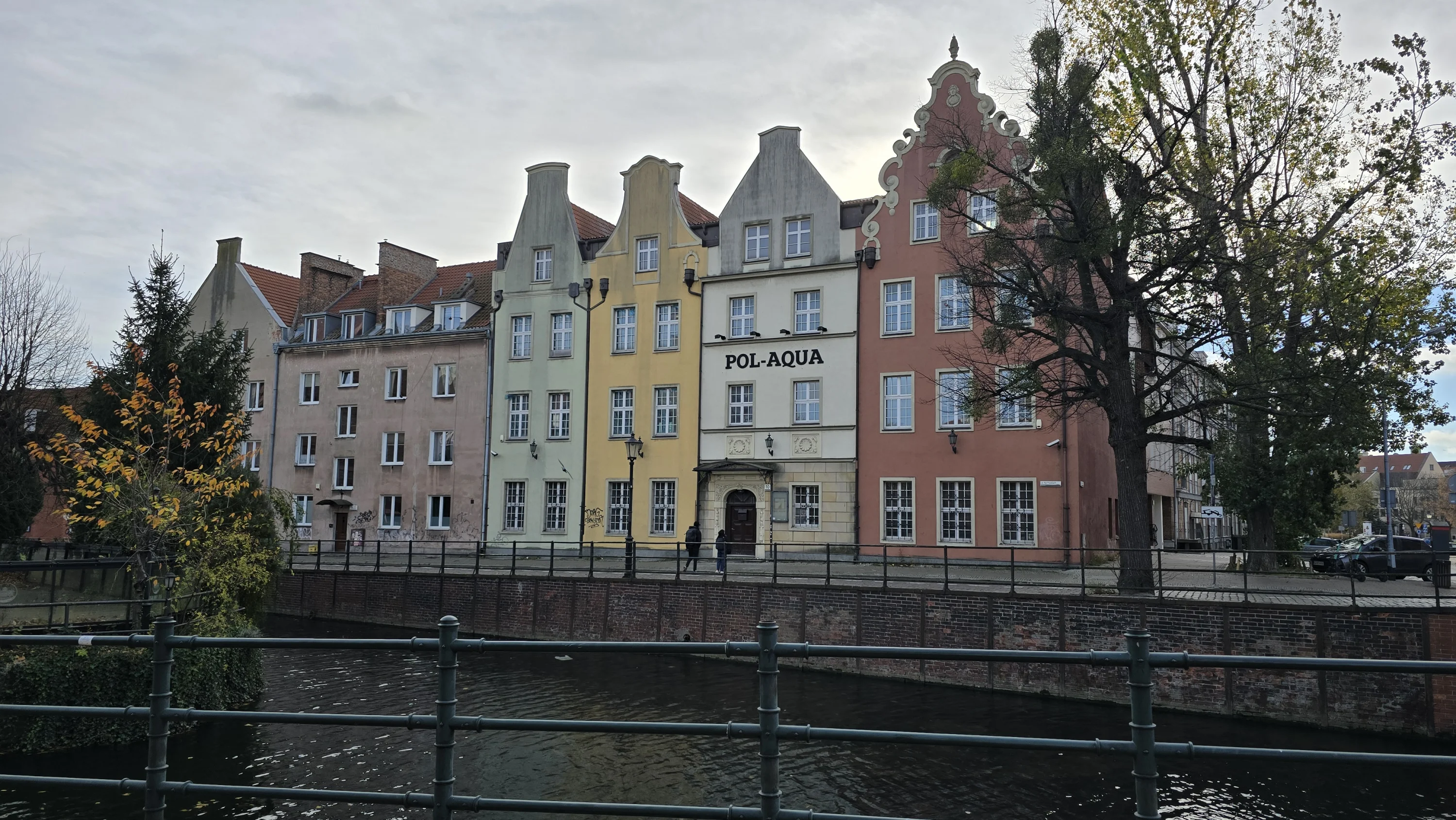 Праворуч від каналу — типові старі польські будинки (Pol-Aqua звучить майже як Bon-Aqua 😊):