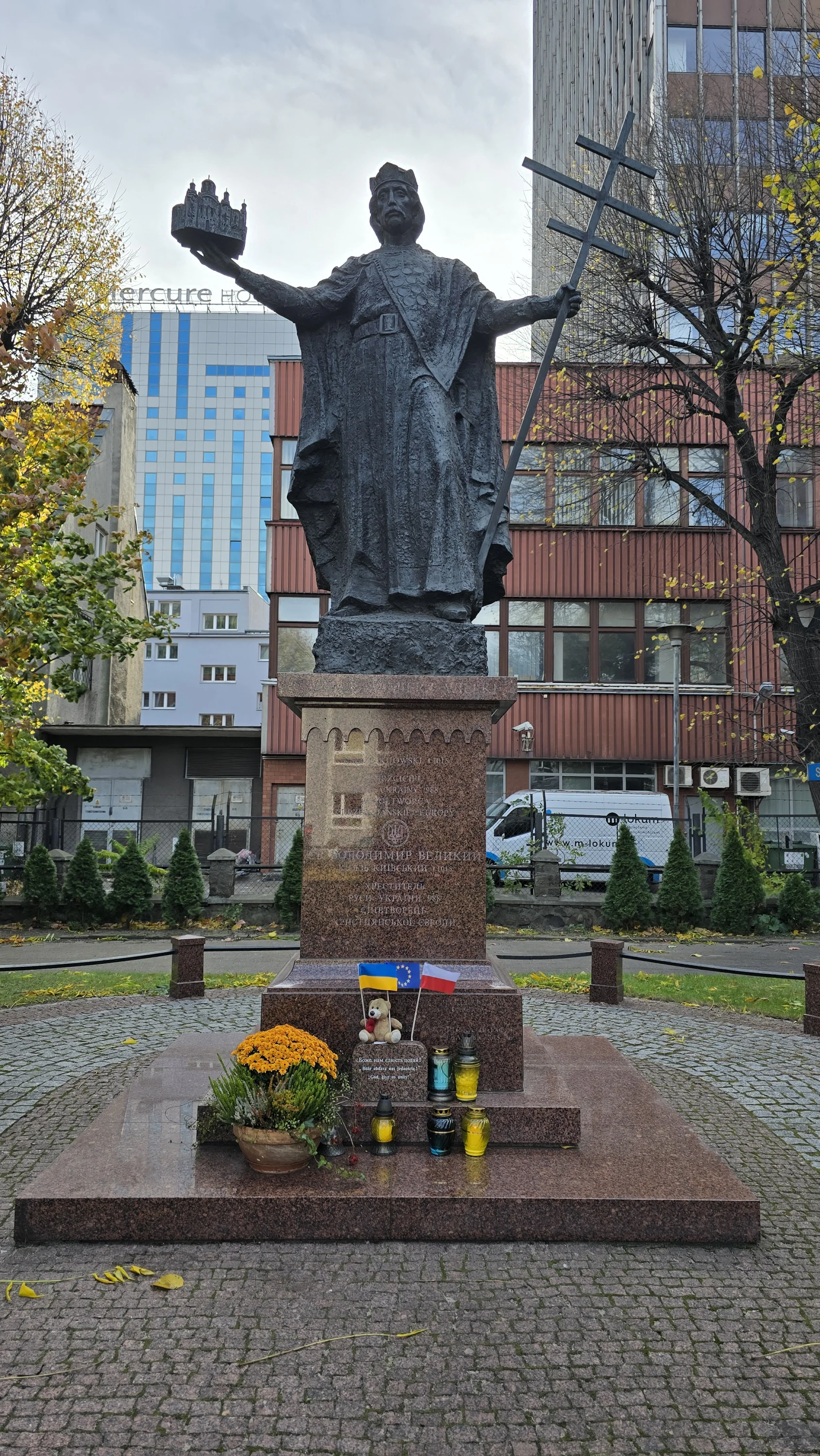 В центрі скверу стоїть пам’ятник князю Володимиру. Це вже другий пам’ятник йому, який я зустрічаю за межами України, перший бачив в Лондоні. І тут так само, як і в Лондоні, підкреслюється, що Русь — це Україна: