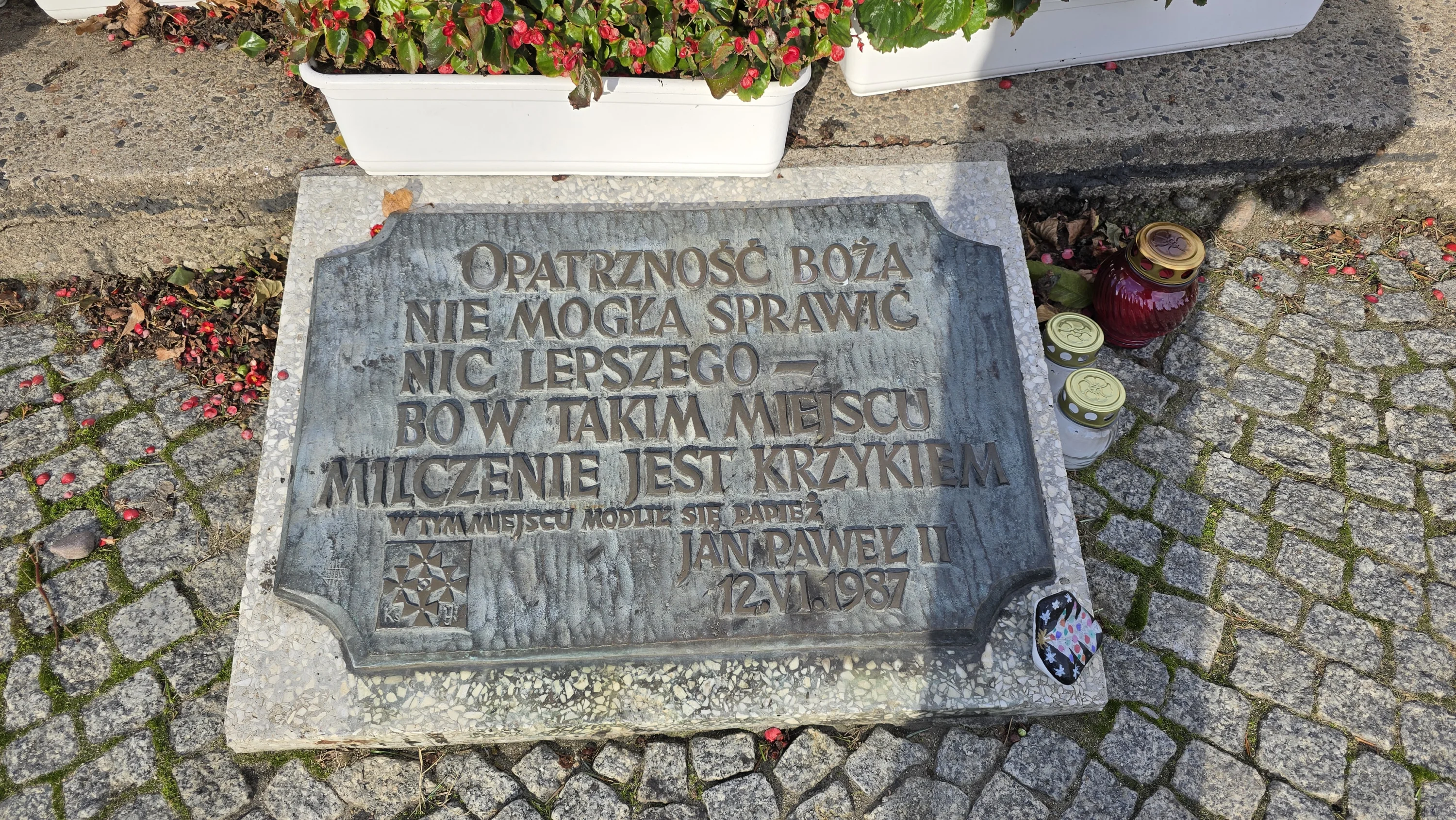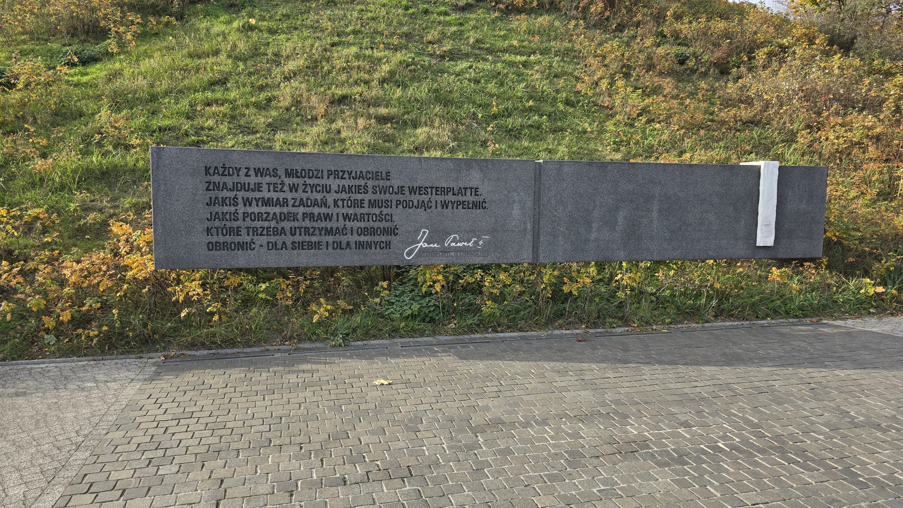 В 1987 році Папа Римський Іван-Павло II сказав тут ці слова (“Кожний з вас, молоді друзі, також знаходить у своєму житті свій Вестерплатте. Деякий вимір завдань, які необхідно прийняти та виконати, певний порядок прав та цінностей, які треба буде захищати для себе та інших”):