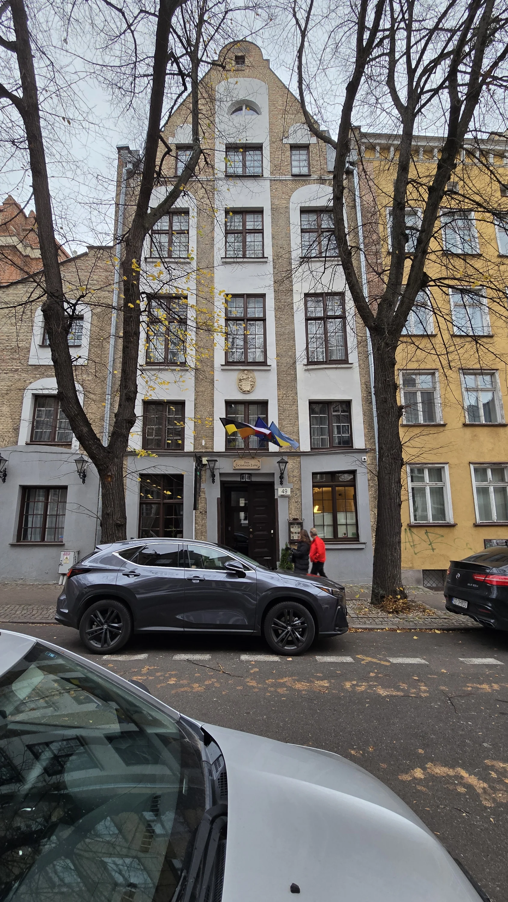 На підвіконні хтось розвісив український прапор (там, здається, і польський є поруч, але його вітер “закрутив”):
