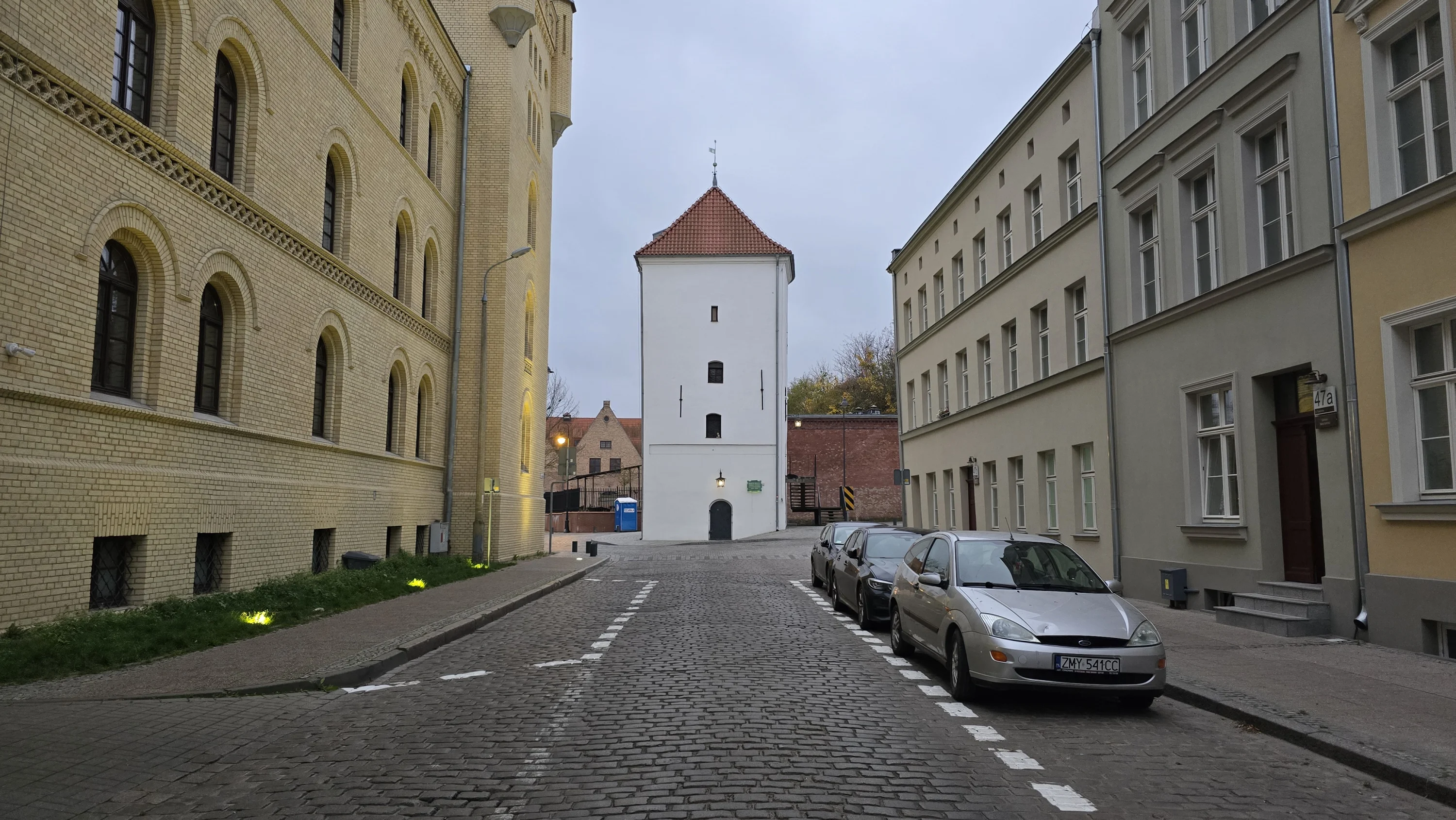 Перейдемо до вулиці Широкої, яка є паралельною до вулиці Святого Духа та розташована північніше. Пам’ятаєте, я вам раніше показував Журавлині ворота у вигляді старого портового крану? Вулиця Широка іде саме від них. І ось так вони виглядають з іншого боку: