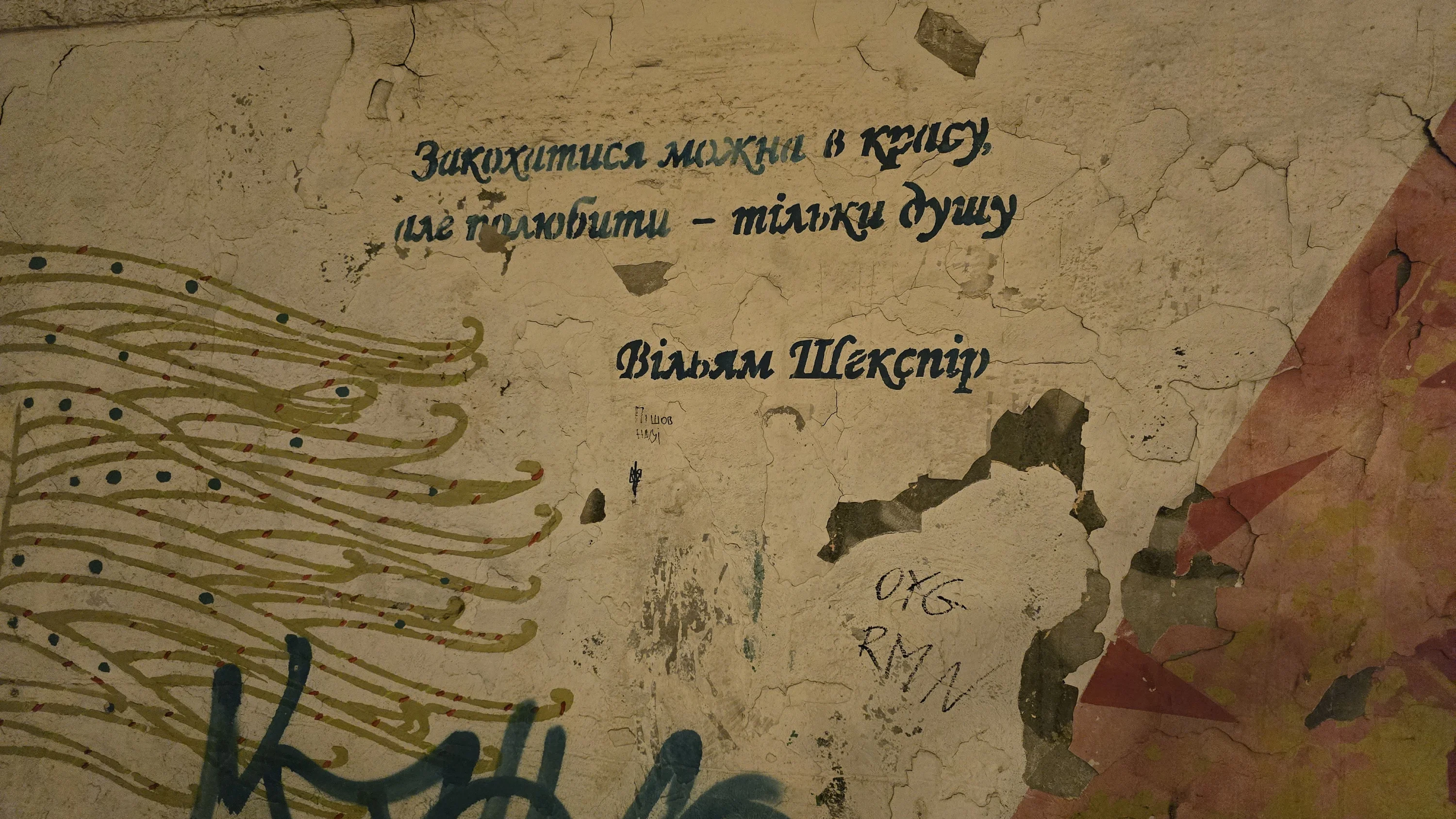 А на протилежній стіні можна навіть знайти цитату Шекспіра українською мовою: