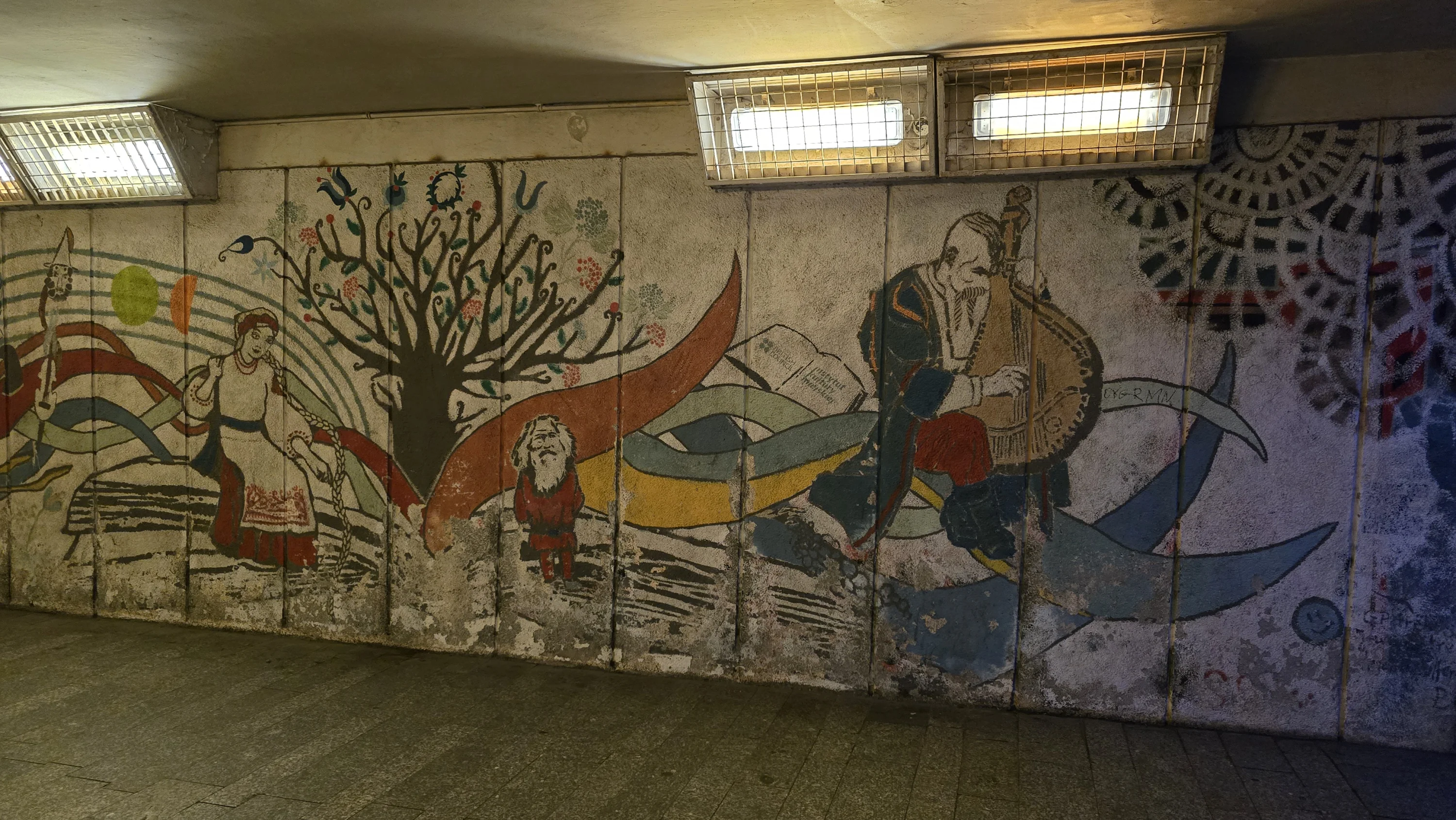 А в пішохідному переході під тією дорогою хтось намалював ось таке (теж, по ходу, щось на українську тематику):