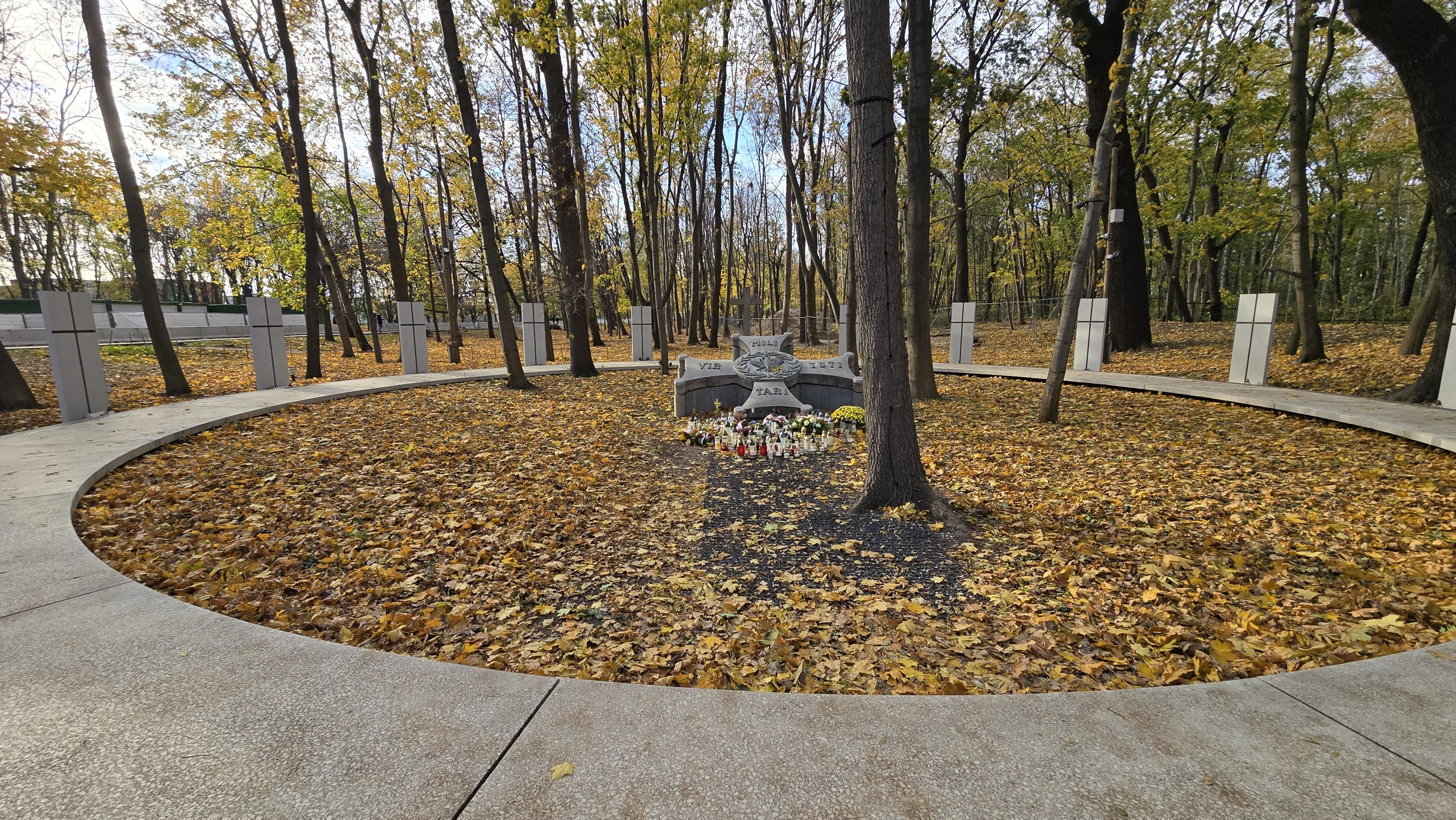 Навпроти нього стоїть пам’ятник Вітольду Пілецькому — офіцеру Війська Польського: