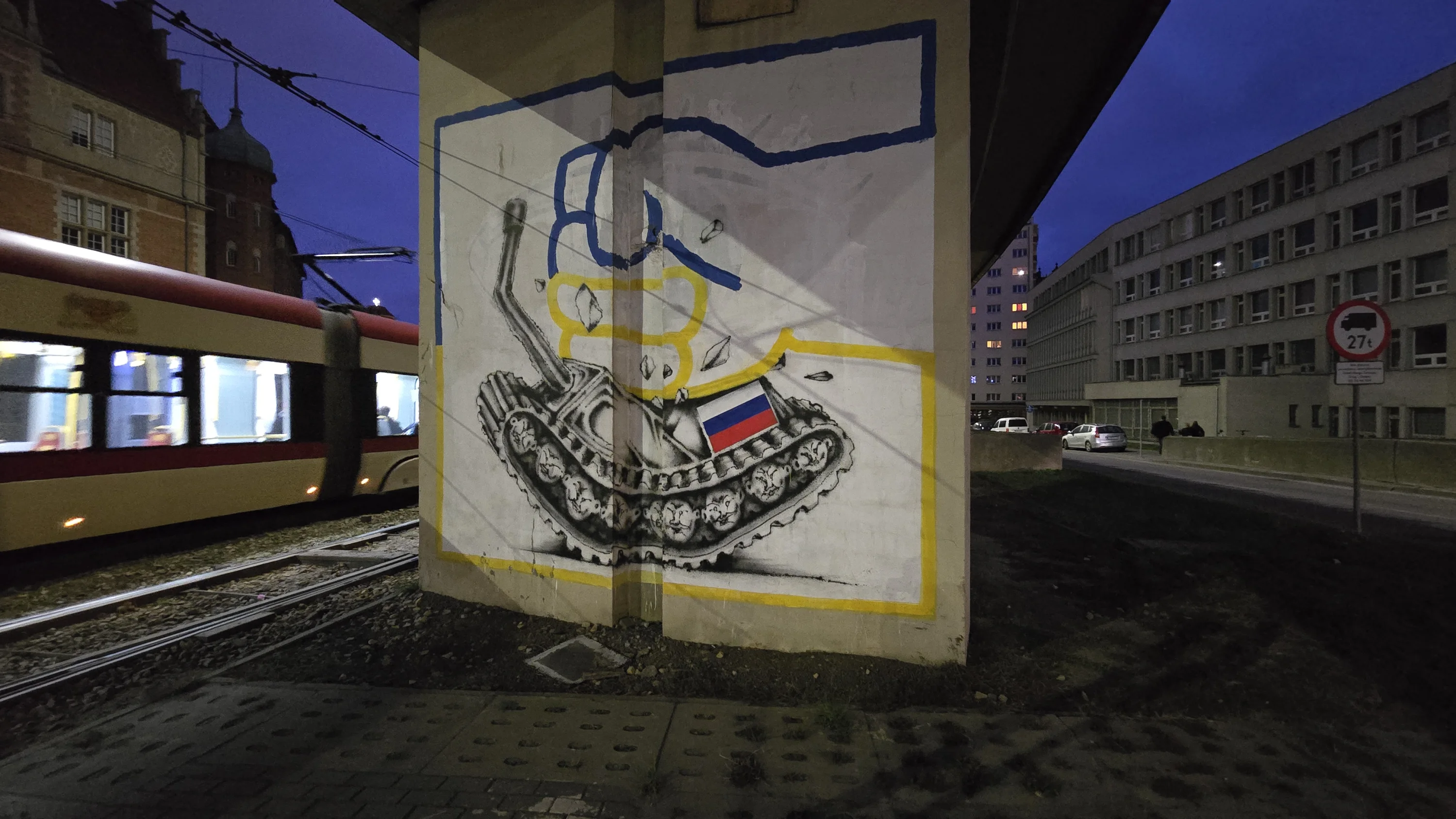 Після початку повномасштабного вторгнення у багатьох країнах на знак солідарності окрім розвішування українських прапорів почали малювати мурали на підтримку України. Їх можна побачити також в багатьох польських містах, і Гданськ, напевно, є лідером за їх кількістю. Наприклад, кілька з них можна побачити на опорах одного з автомобільних мостів Старого середмістя: