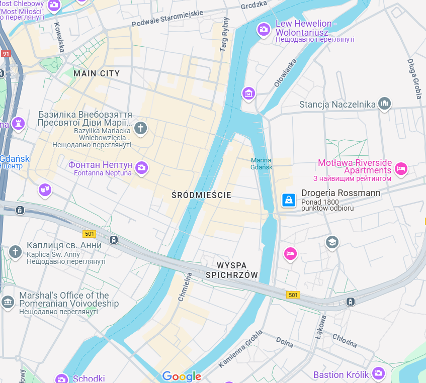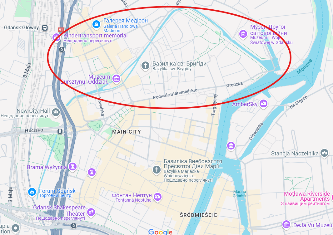 І, що цікаво, Старе місто в Гданську не є його головною “візитівкою”, на відміну від інших міст Польщі і не тільки. Тут ця роль відведена Головному місту. Але я почав своє знайомство з Гданськом саме зі Старого міста. Якщо бути більш точним, то спочатку я пішов в готель, щоб заселитися та залишити речі, однак в них не було можливості поселити мене раніше 15:00, тому я залишив речі на ресепшені і пішов досліджувати місто. В кінцевому підсумку я прийшов заселятися десь близько шостої вечора, і ви скоро зрозумієте чому 😉.