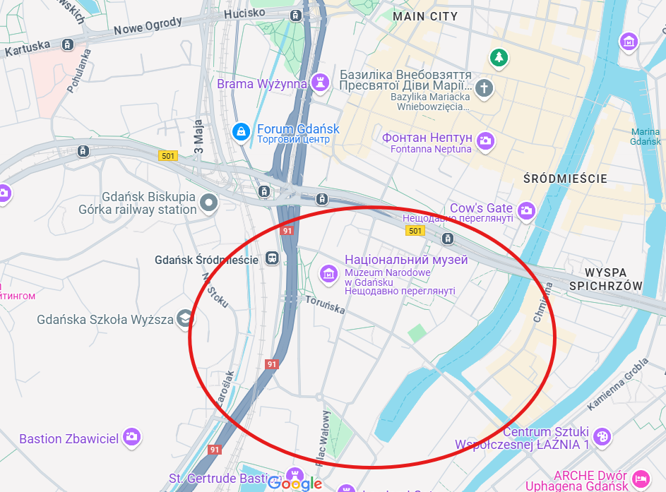 До речі, я вирішив їхати саме в Тримісто ледве не в останній момент. Спочатку думав поїхати в Люблін та Холм, але ці міста можна побачити й за 1-2 дні. Щодо Триміста — я чомусь був впевнений, що три дні на це не вистачить і туди треба на довше їхати. Але подивившись карту туристичних об’єктів, зрозумів, що основні локації там розташовані досить близько одна до одної, тому й вирішив реалізувати той план, який у мене стосовно Польщі мав найвищий пріоритет. І почав я своє знайомство з Тримістом, звісно ж, з Гданська. До речі, поки їхав в поїзді вночі, мені снилося ніби я проїхав зупинку, тому що провідник мене не розбудив, і що я ніби прокинувся аж на під’їзді до Гдині 😁. Але коли я справді прокинувся, до Гданська ще кілька годин залишалося.