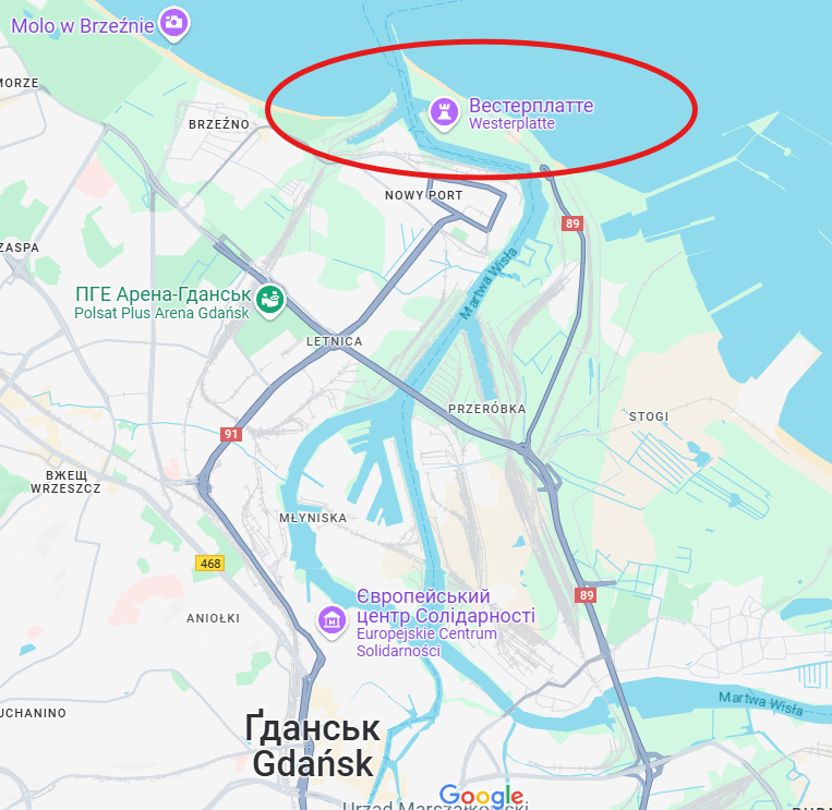 А зараз ми здійснимо короткий екскурс до ще однієї історичної локації Гданська — Вестерплатте. Вестерплатте — це невеликий півострів на півночі Гданська, одна з найбільш віддалених точок міста. Сюди ходить лише два автобуси — 106 та 138. По дорозі до Вестерплатте може здатися, що ви виїхали за межі міста, однак адміністративно це все ще Гданськ: