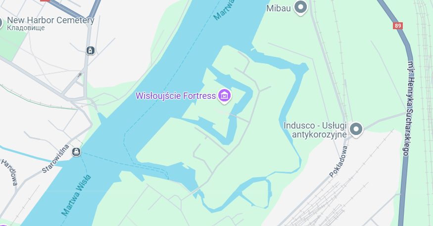 Неподалік від Вестерплатте знаходиться фортеця Віслоуйсьце з чотирма трикутними бастіонами. До речі, копенгагенський форт Кастелет зверху виглядає дещо схоже, за винятком того, що він має п’ять бастіонів (читайте фотозвіт про Данію):