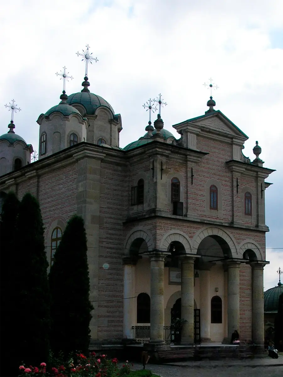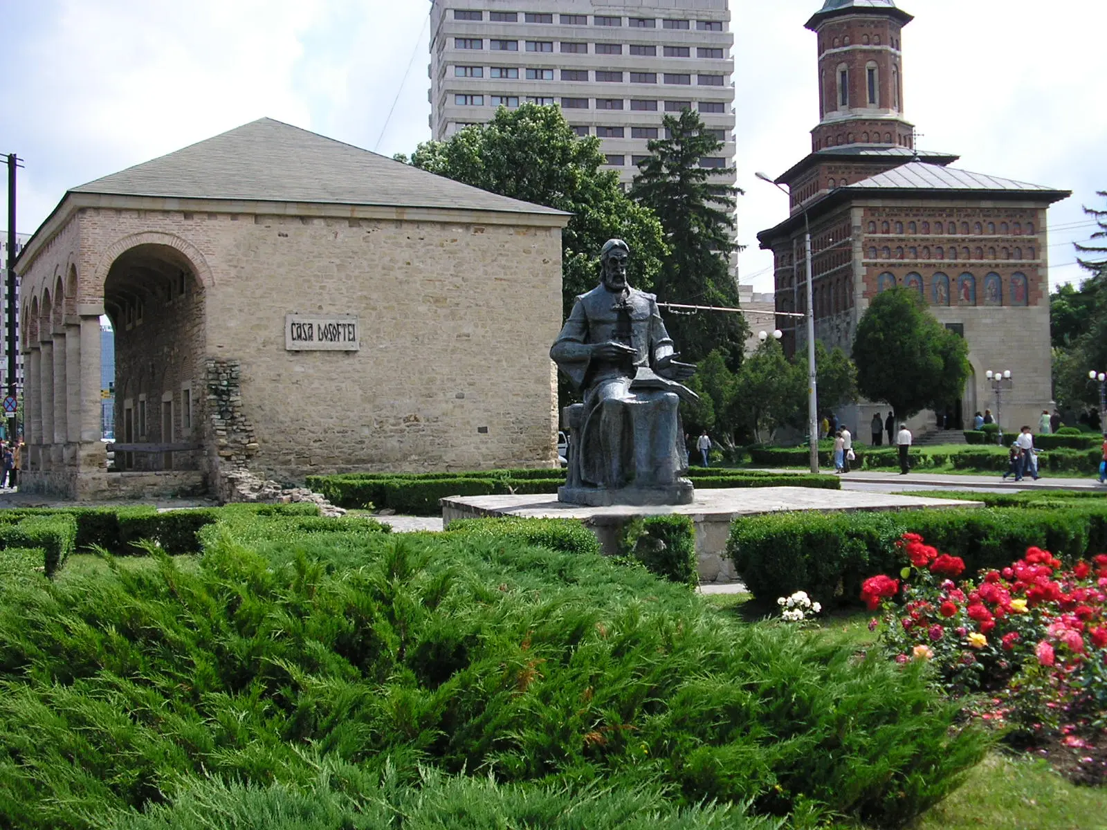 Неподалік також знаходиться резиденція молдовського митрополита Дософтея (зліва), пам’ятник йому (посередині) та церква святого Миколая (справа):