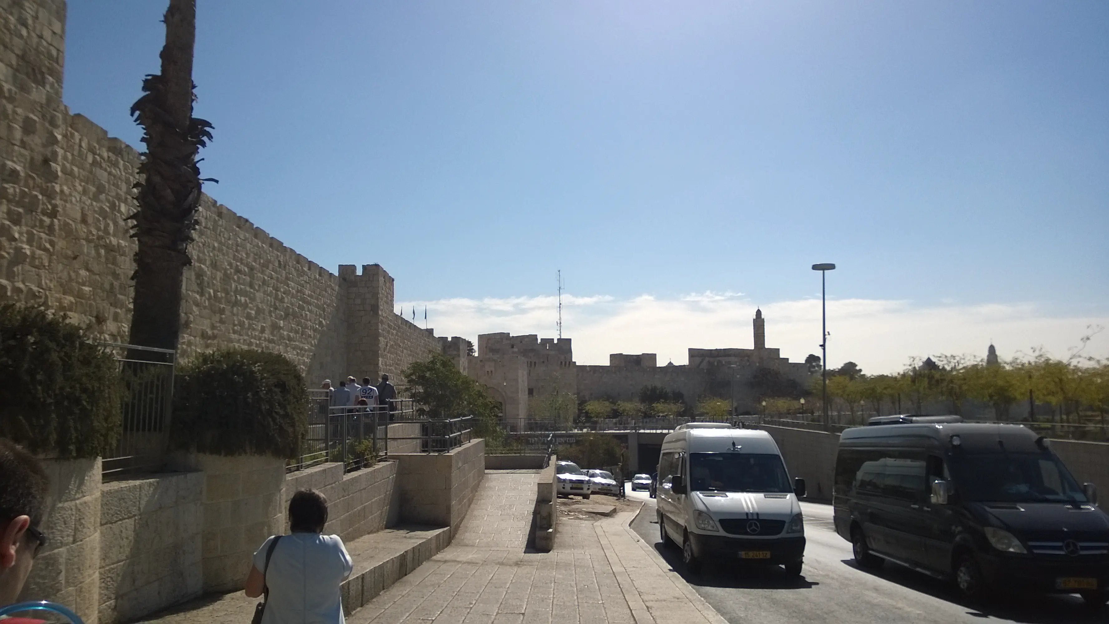 За стіною частково видно мечеть Аль-Акса з чорним куполом: