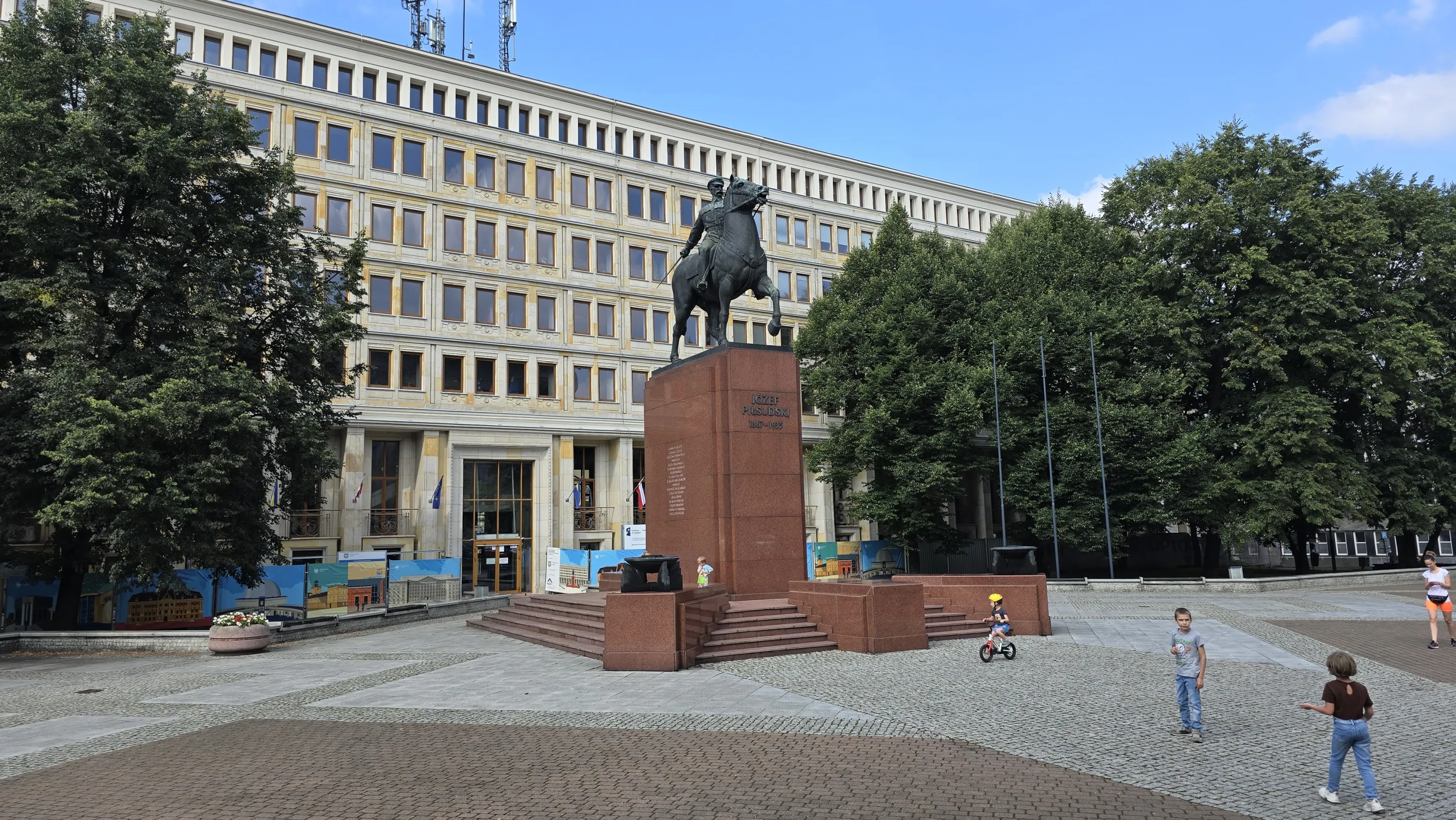 Навпроти колишнього парламенту стоїть пам’ятник Юзефу Пілсудському: