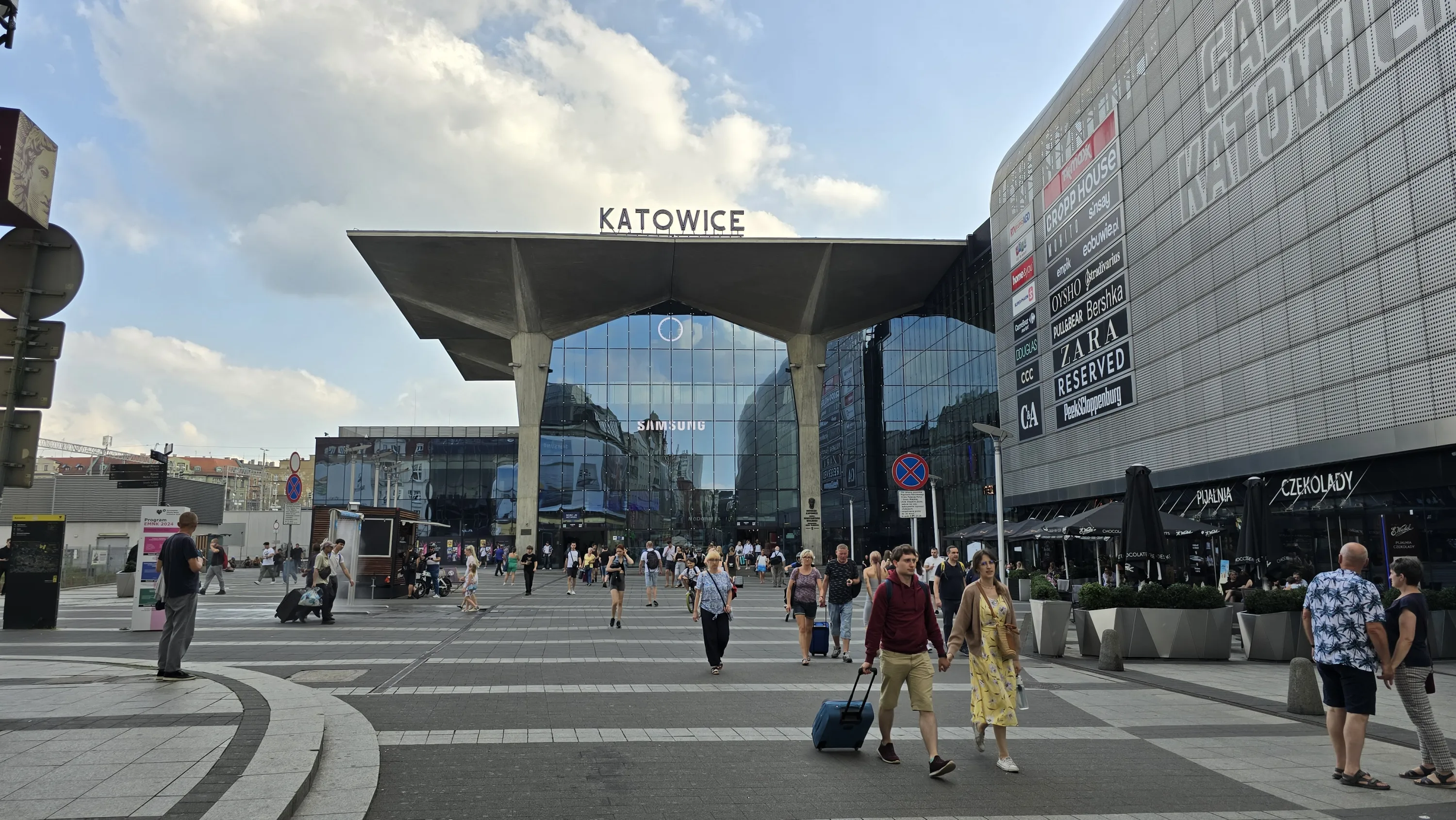 Подібно до того, як в Кракові залізничний вокзал плавно переходить у ТРЦ Galeria Krakowska, тут він переходить у ТРЦ Galeria Katowicka (цікаво, хто в кого запозичив цю ідею?):