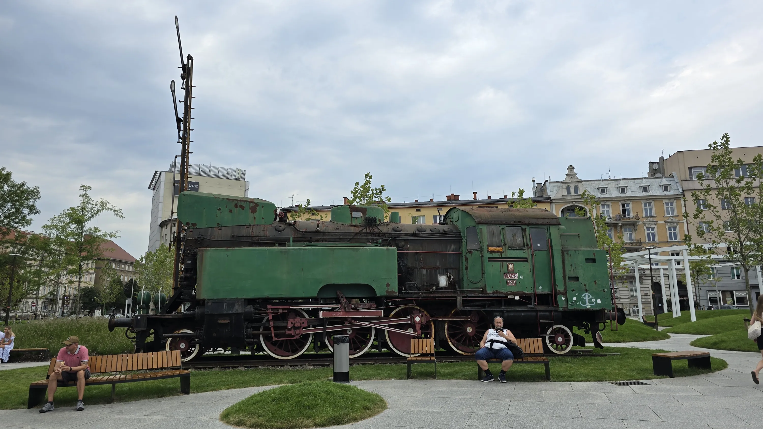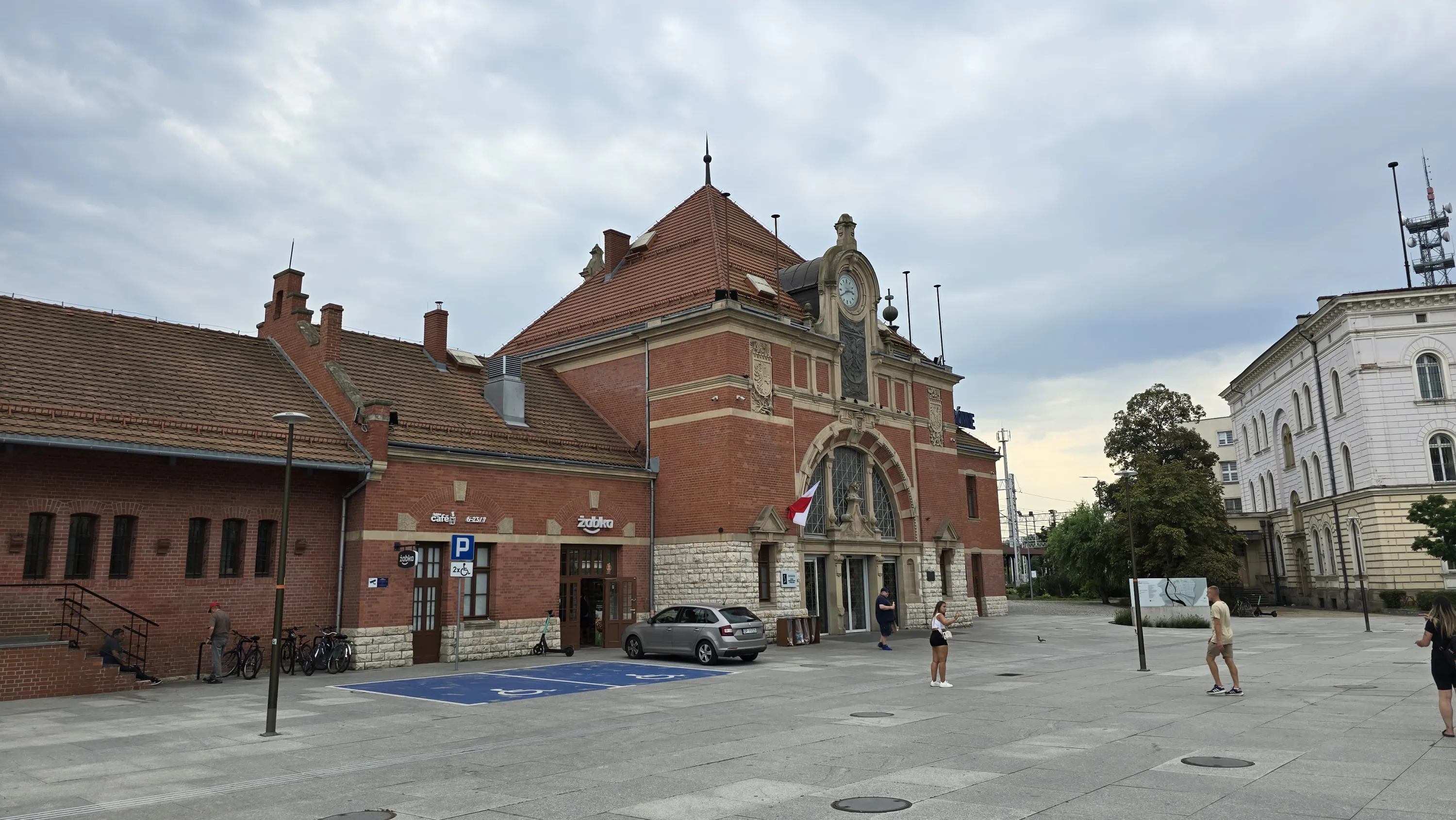 На самій привокзальній площі окрім старого паровоза можна також побачити невеликий стенд для туристів з базовою інформацією про Ополе: