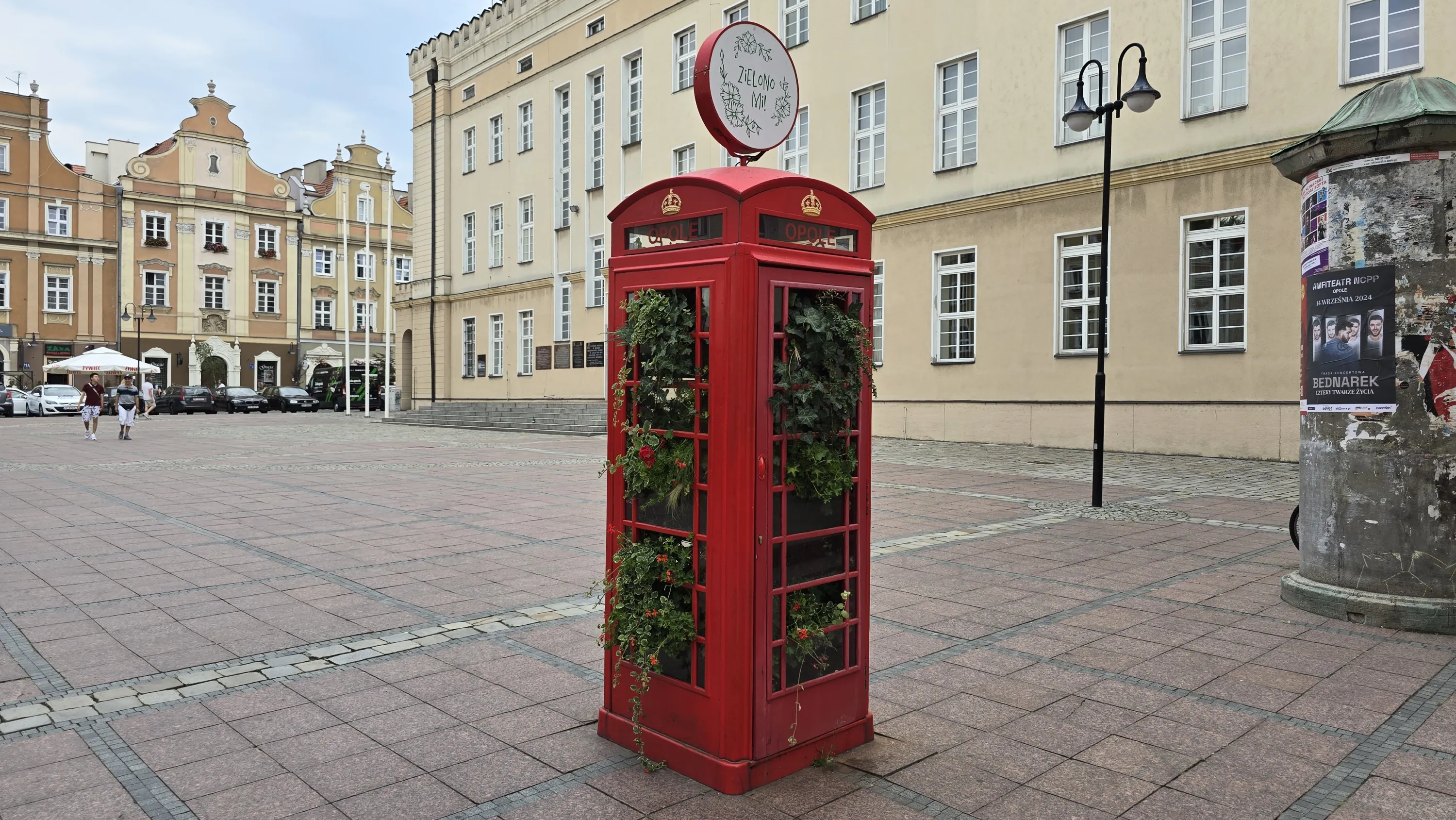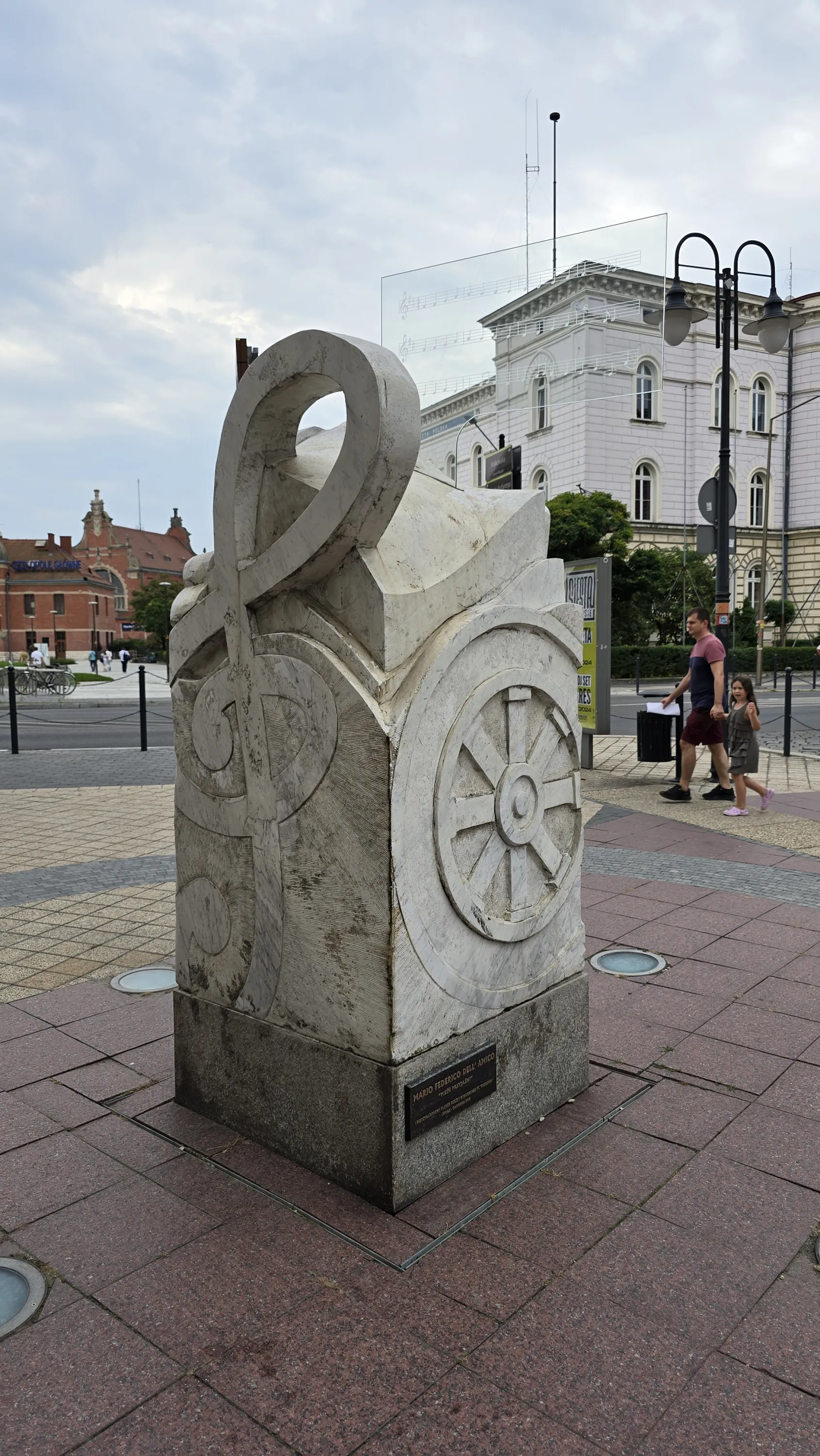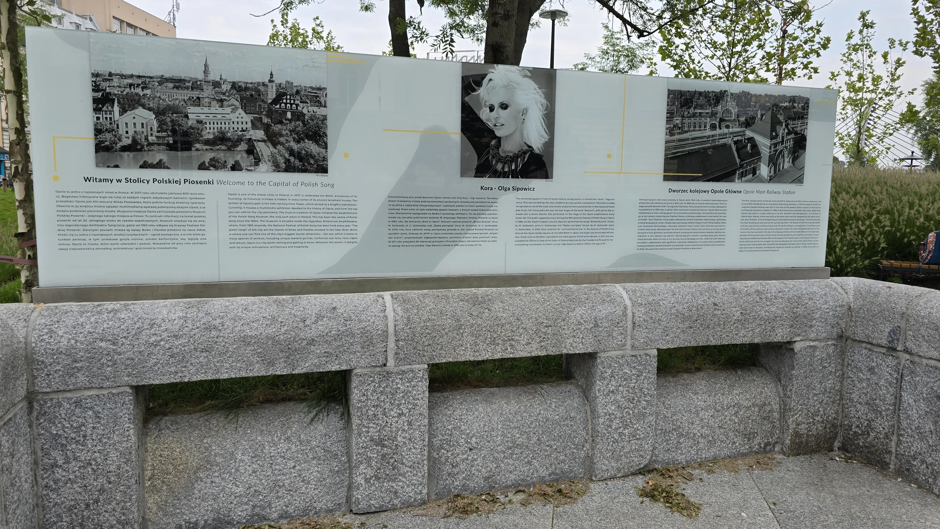 На будівлі праворуч від площі нас зустрічає надпис “Witamy w stolice polskiej piosenki” (“Вітаємо в столиці польської пісні”). В Ополі щороку проводиться фестиваль польської пісні, який є однією з найважливіших музичних подій Польщі наряду з фестивалем у Сопоті. На цьому фестивалі неодноразово виступала Мариля Родович, яка в Україні та інших пост-радянських країнах відома в першу чергу завдяки хіту “Kolorowe jarmarki”: