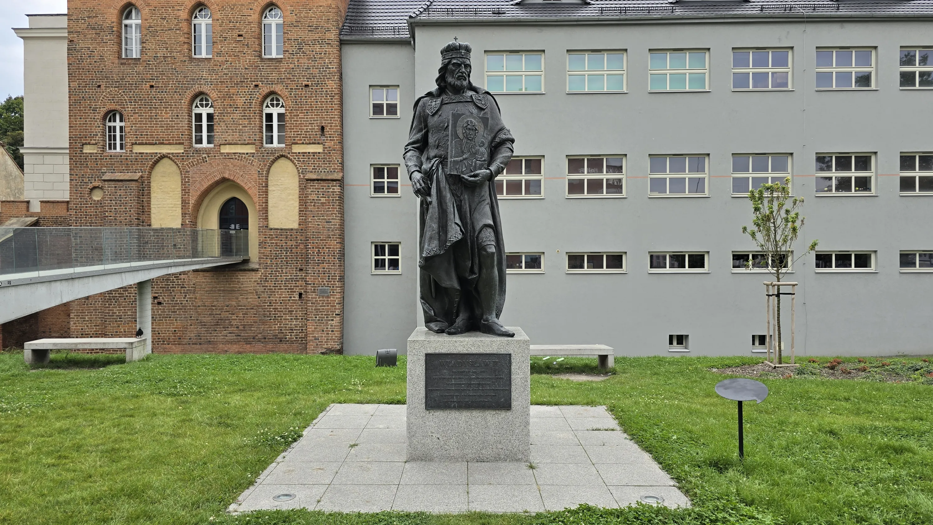 А з іншого боку стоїть пам’ятник князю Казимиру I Опольському — представнику династії П’ястів: