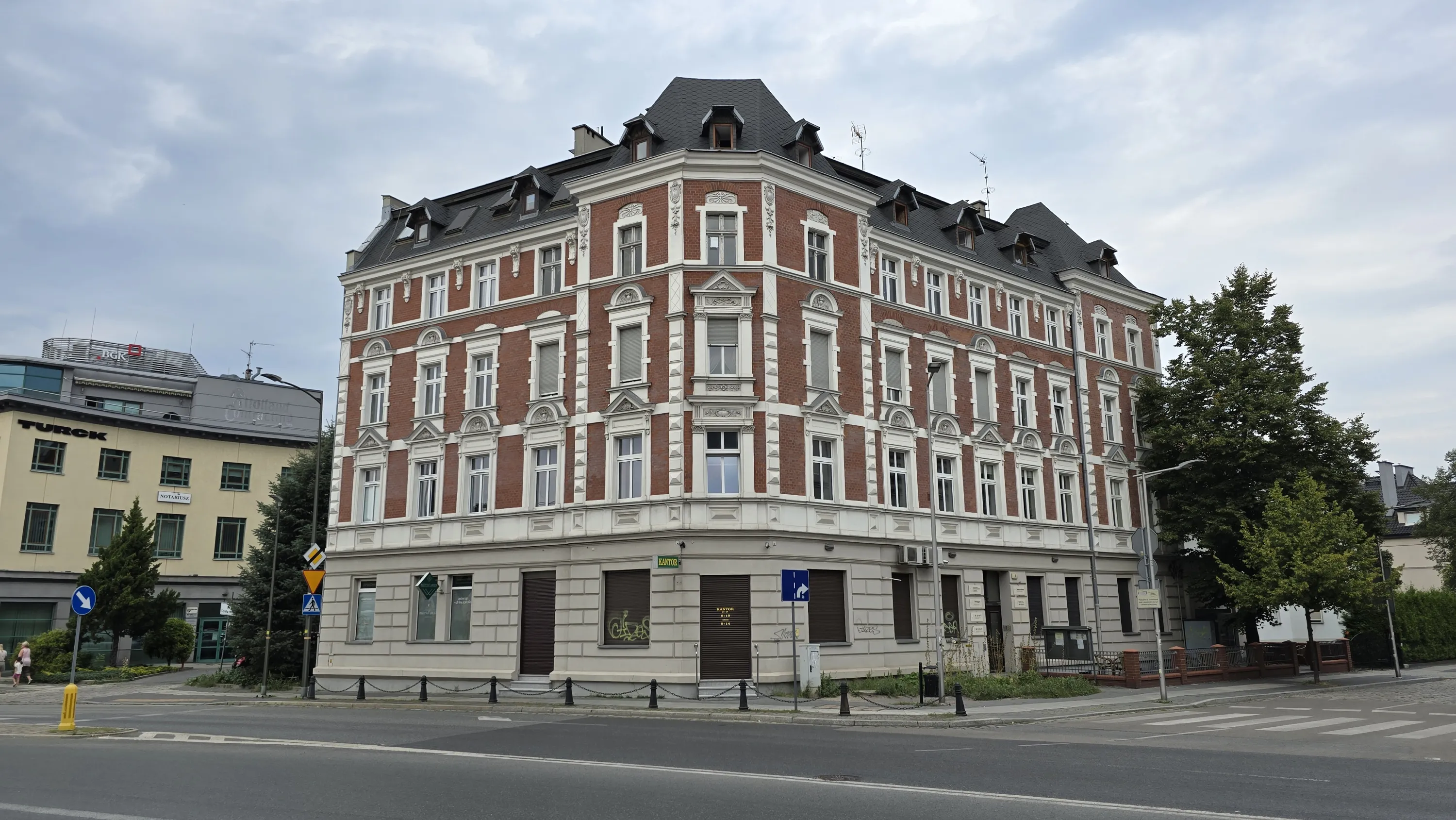Час від часу тут зустрічаються будинки з цегляним фасадом, які часто можна побачити в Катовицях: