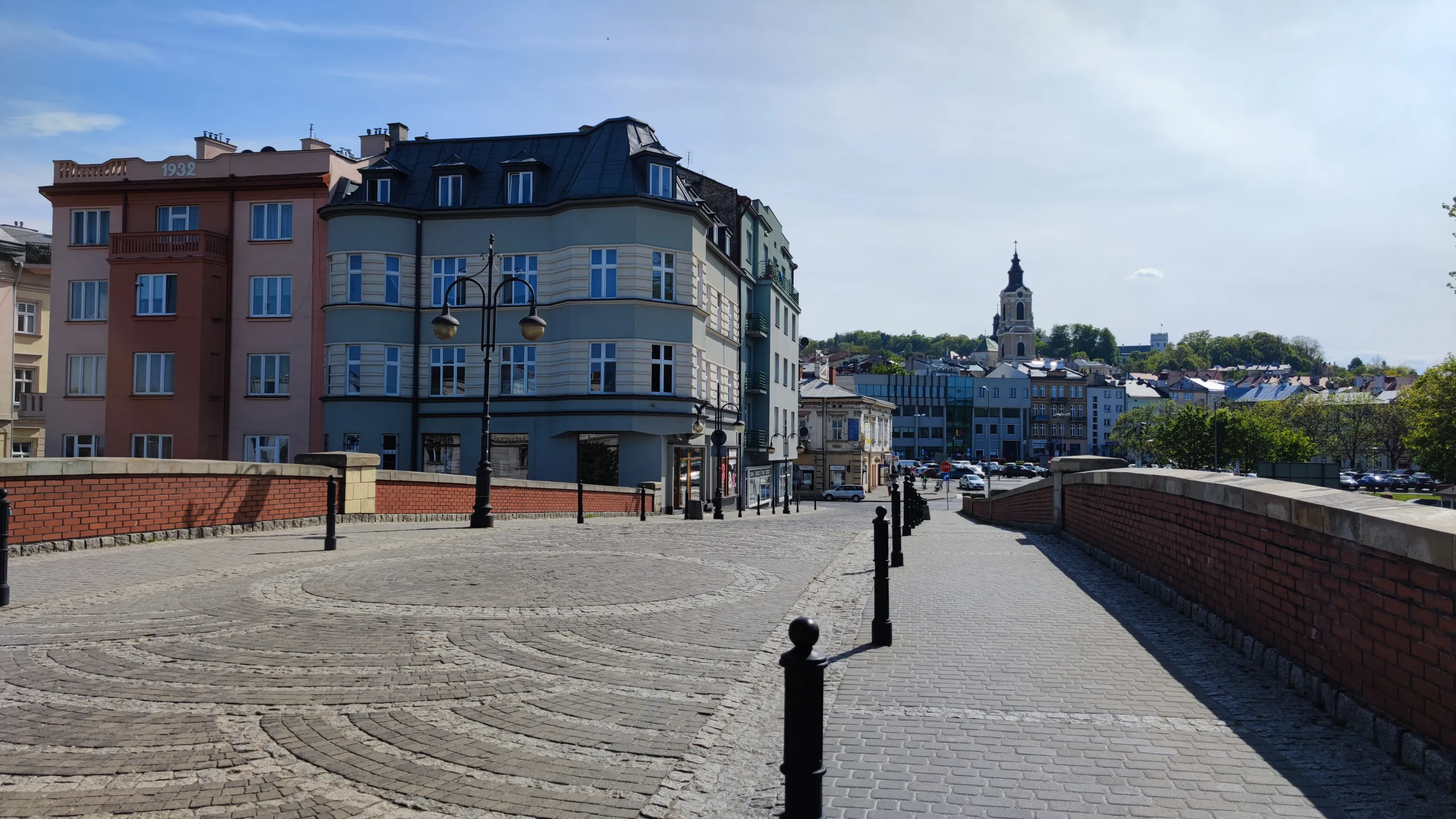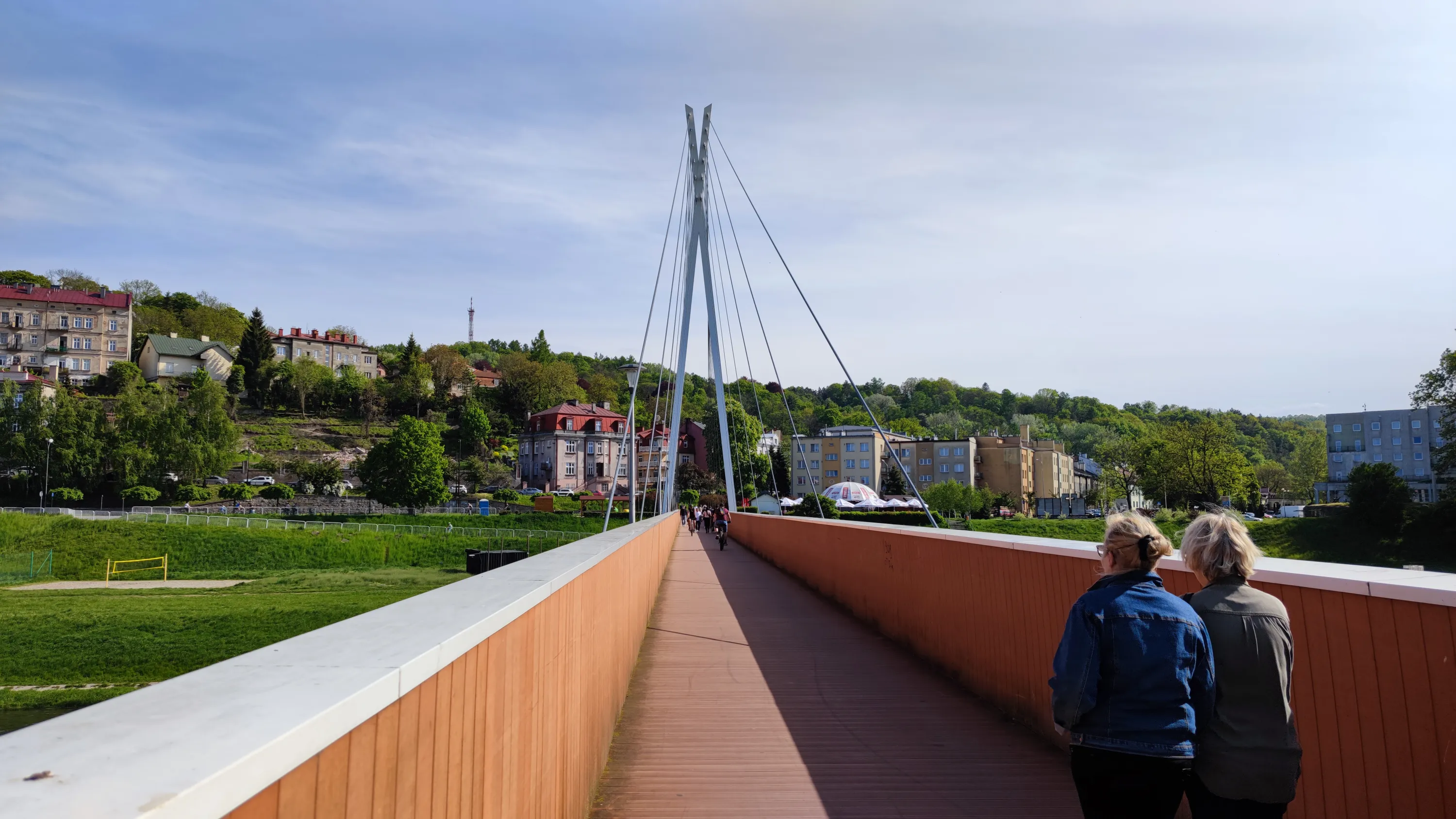 Міст веде на Рибну площу, на якій розташований Національний музей Перемишльського краю: