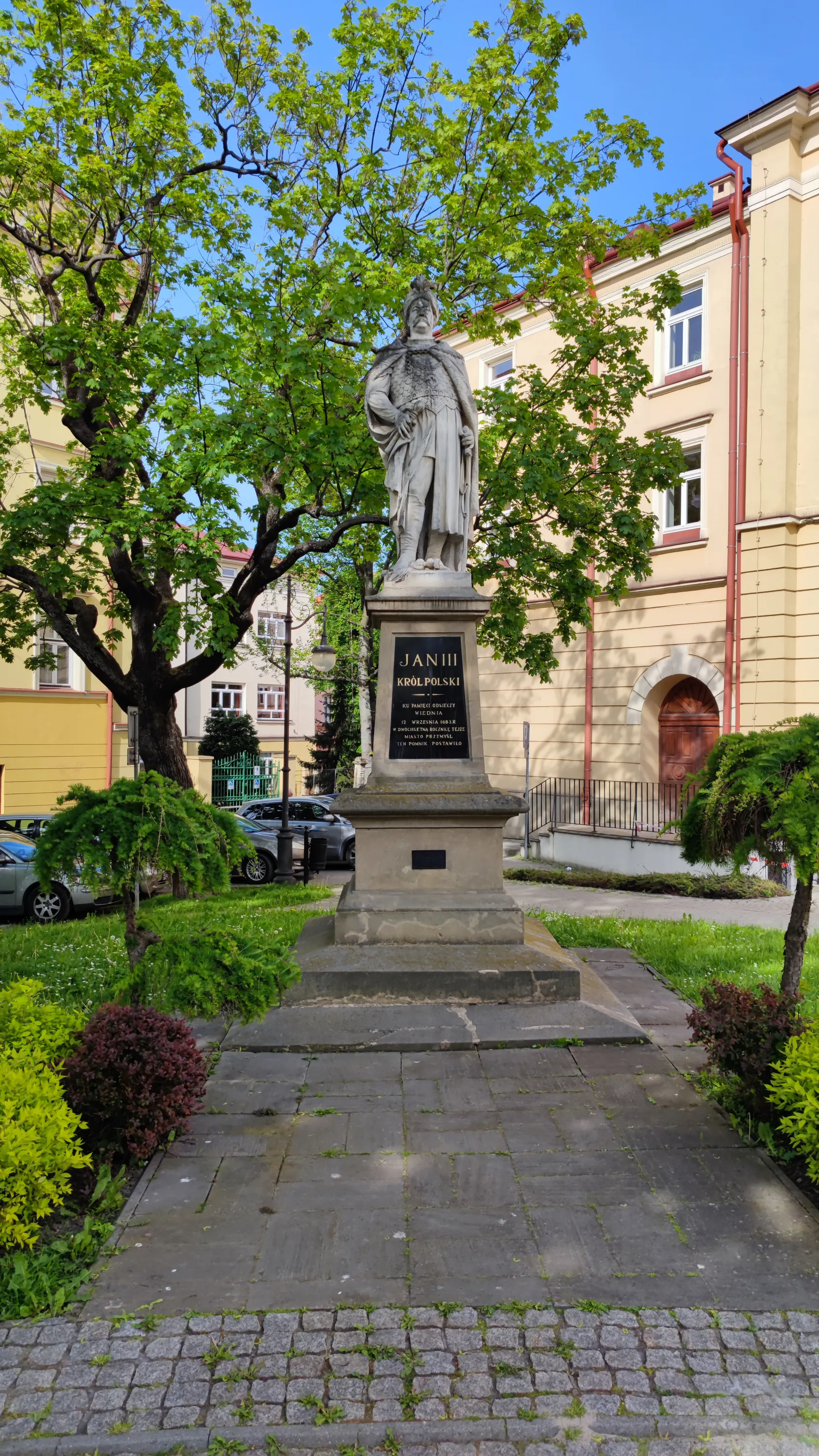 Поруч із площею можна побачити ось такий пам’ятник, який на перший погляд дуже нагадує Богдана Хмельницького, але це не він. Це пам’ятник польському королю Яну III: