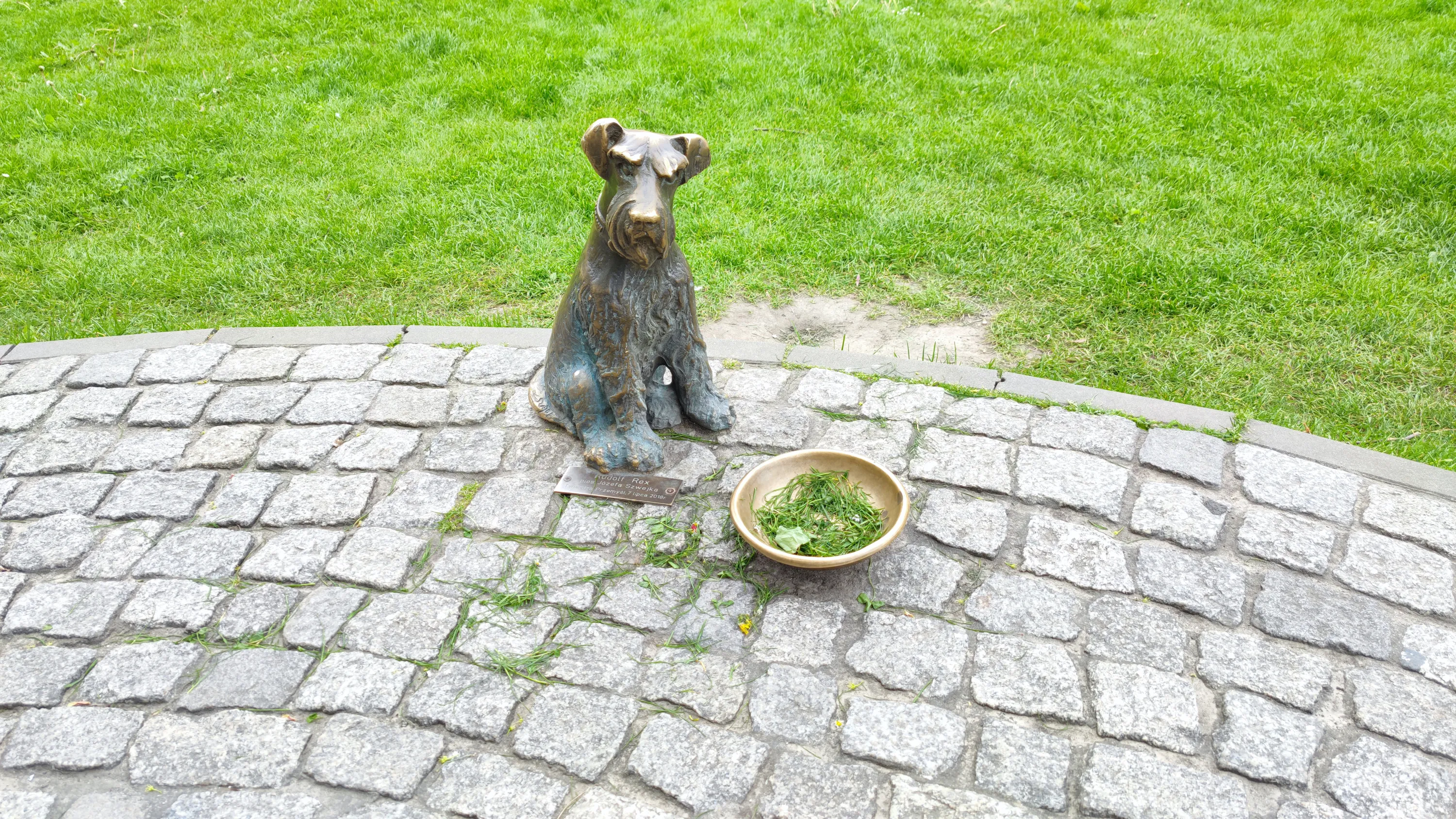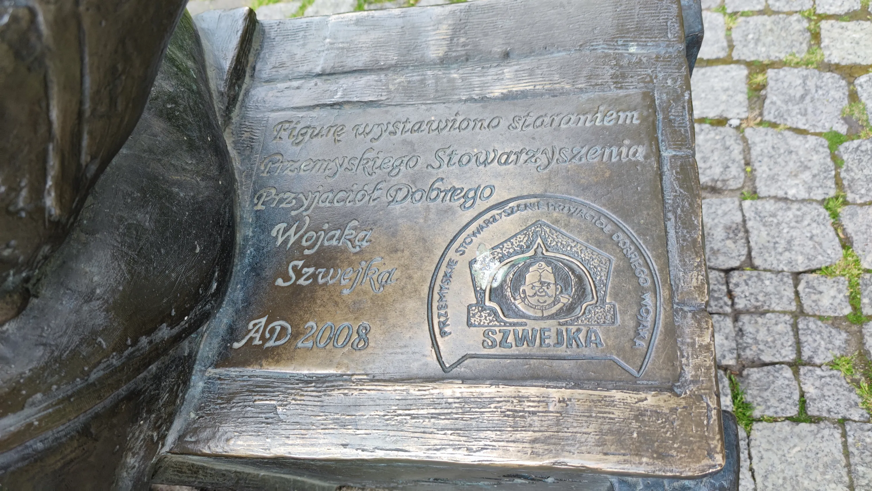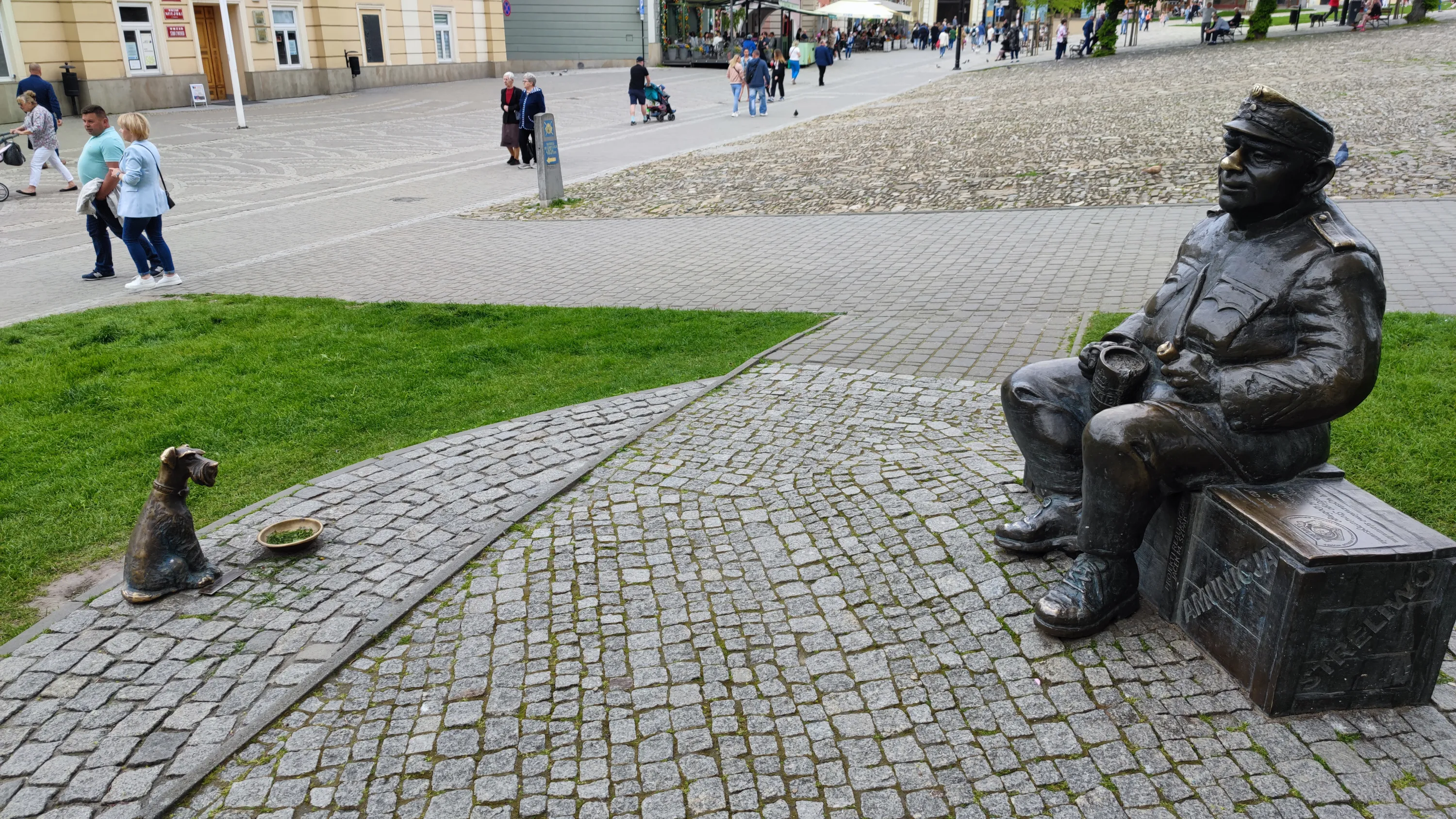 В нижній частині площі знаходиться пам’ятник солдату Швейку та його собаці: