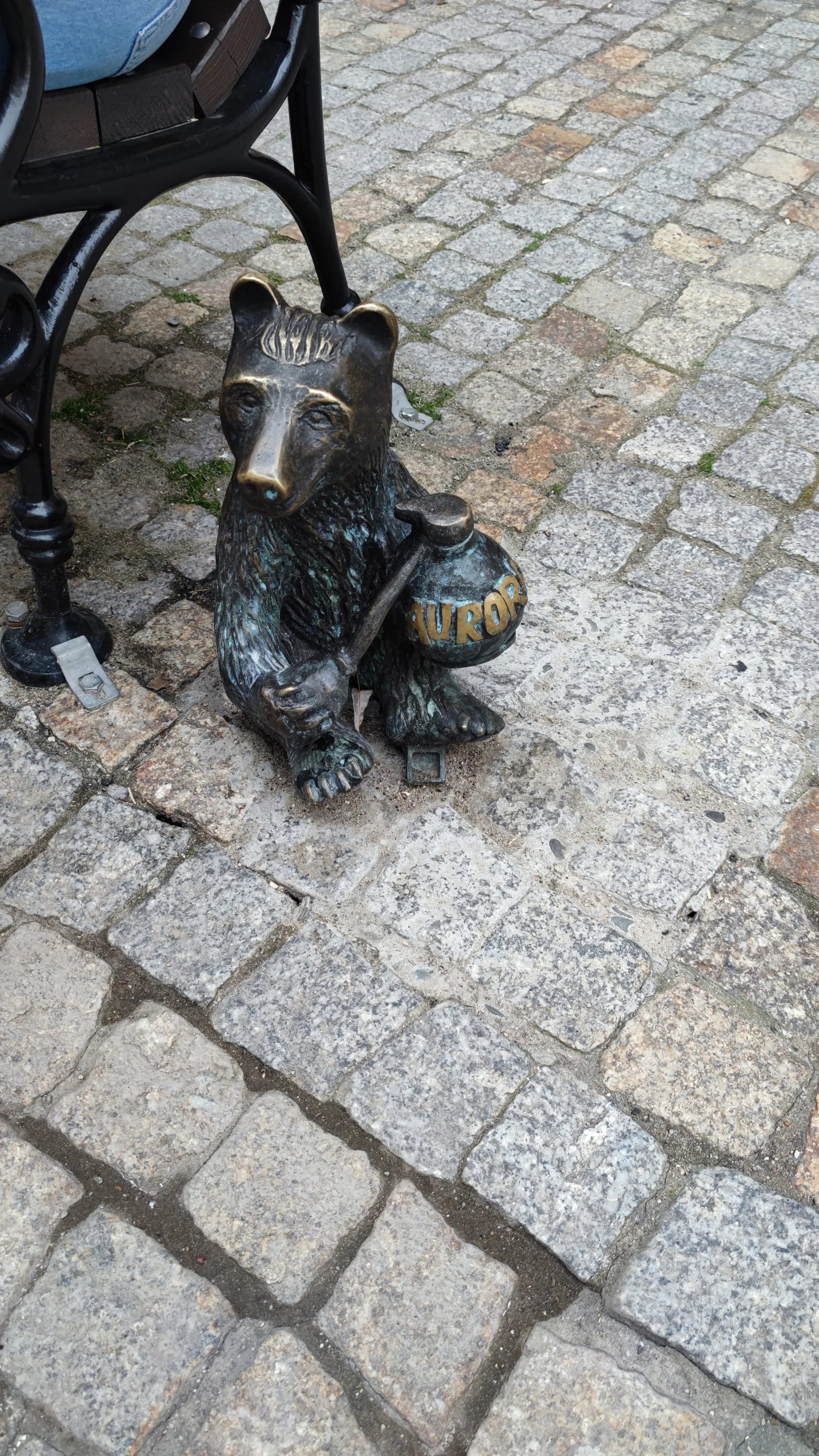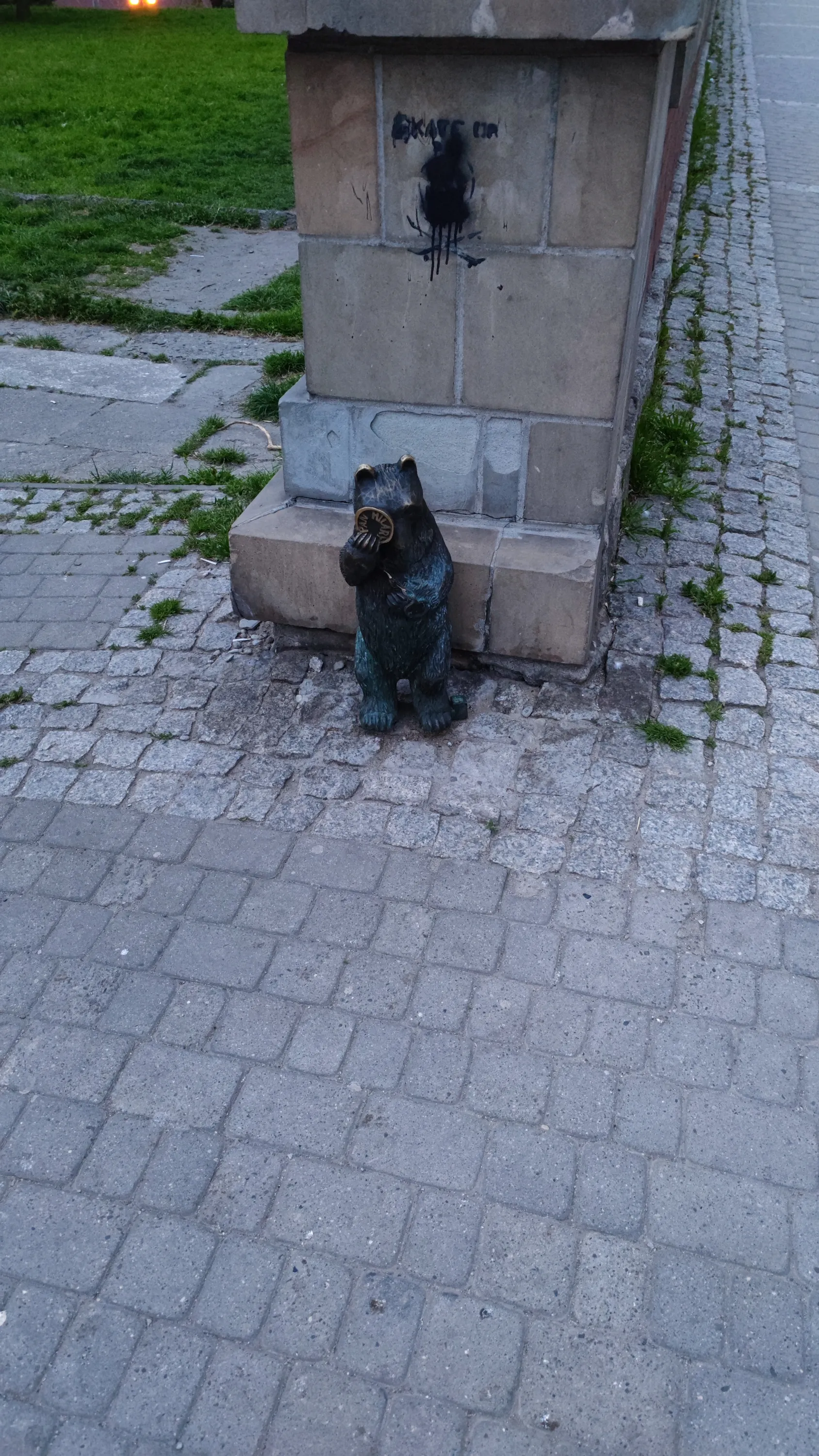 До речі, я вище писав, що ведмідь є символом Перемишля. Аналогічно з тим, як у Вроцлаві встановлювали статуї гномів, в Перемишлі встановлюють статуї маленьких ведмедів. Не знаю, скільки їх тут є усього, я знайшов як мінімум три. Одного якраз біля входу до замку: