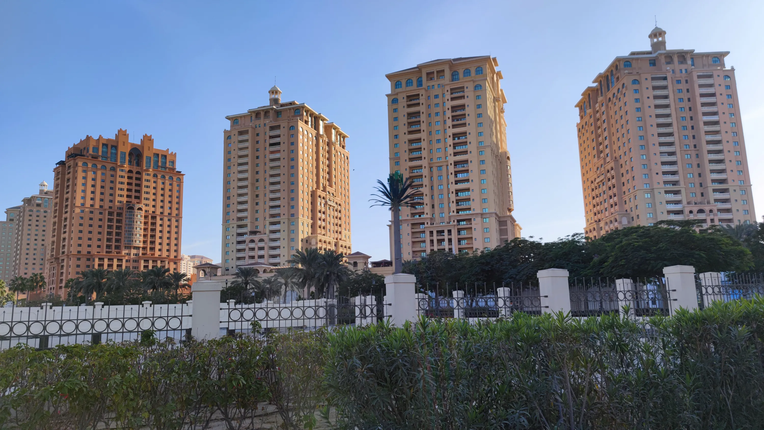 В’їзд до The Pearl Qatar прикрашають ось такі будівлі-близнюки: