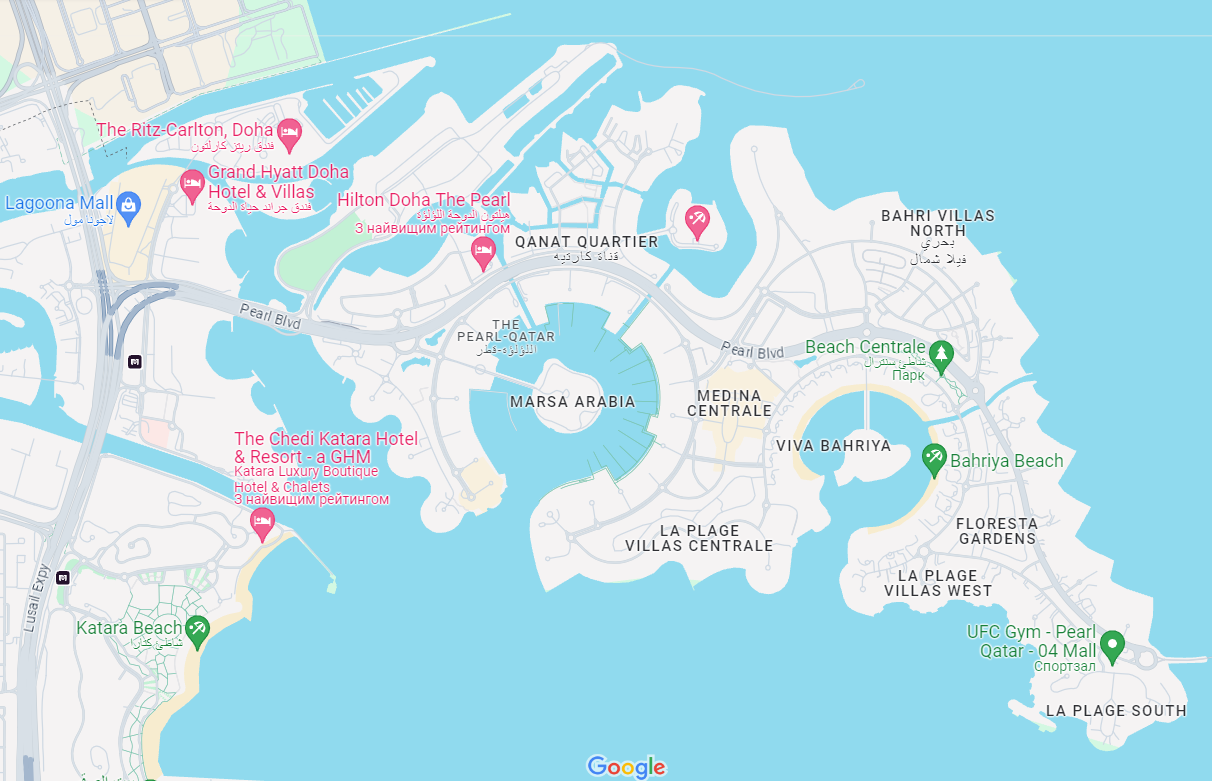 Трохи північніше від Katara Cultural Village є група штучних островів, що називаються The Pearl Qatar: