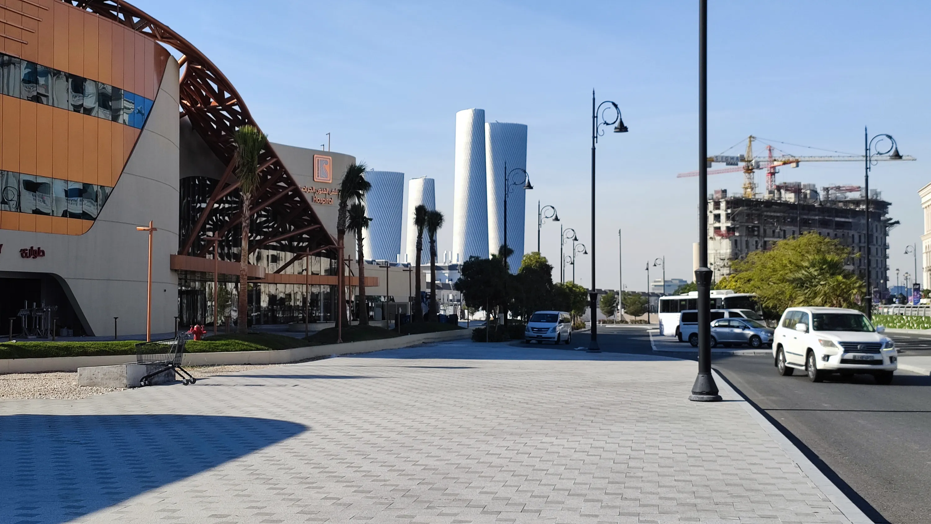 Місто активно будується і розвивається. Минулого року тут побудували найвищі в Катарі хмарочоси — Lusail Plaza Towers. Це комплекс із чотирьох будівель, дві з яких мають 50 поверхів, а дві інших — 75. Ось так їх видно з висоти польоту (справа):