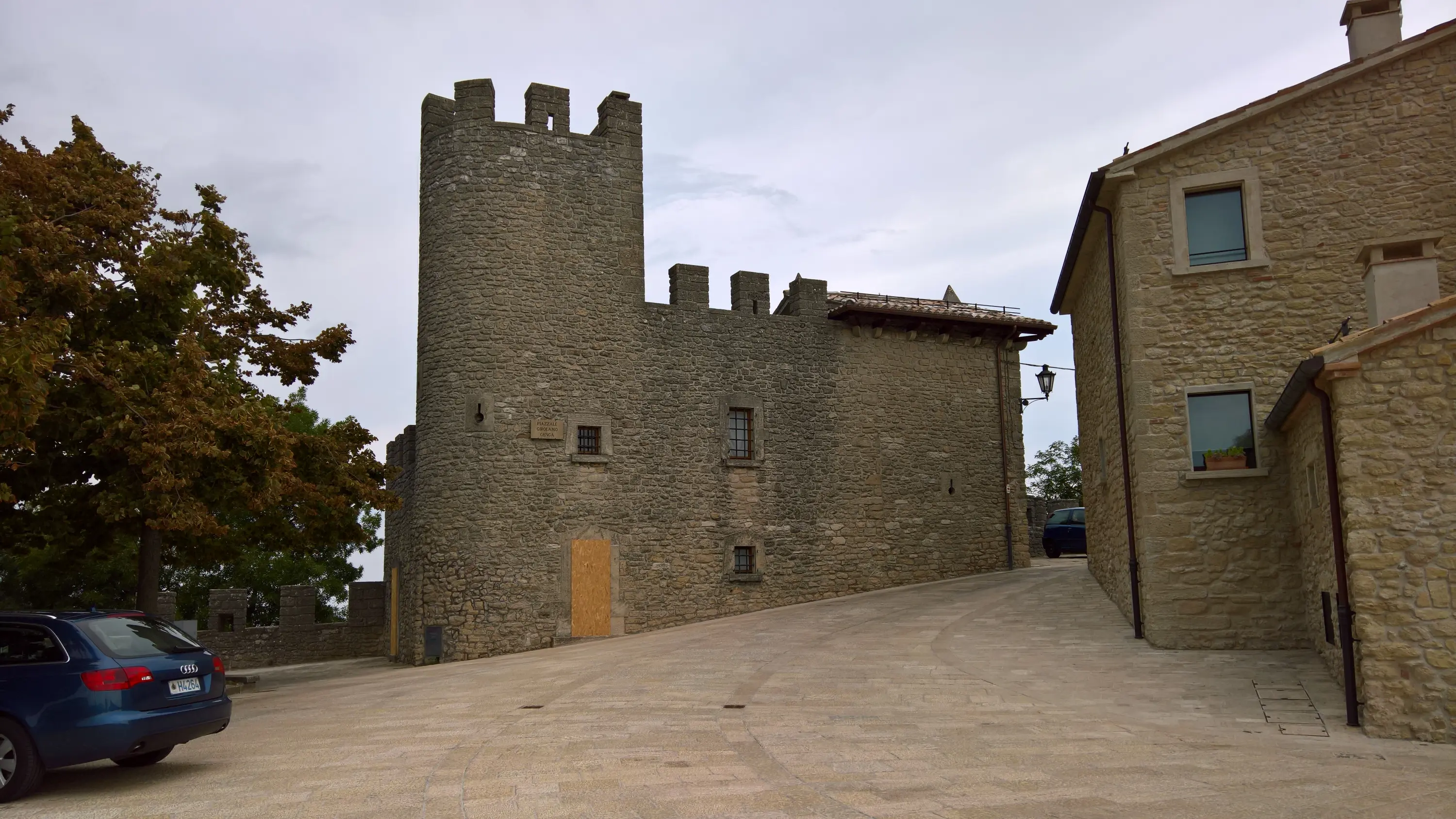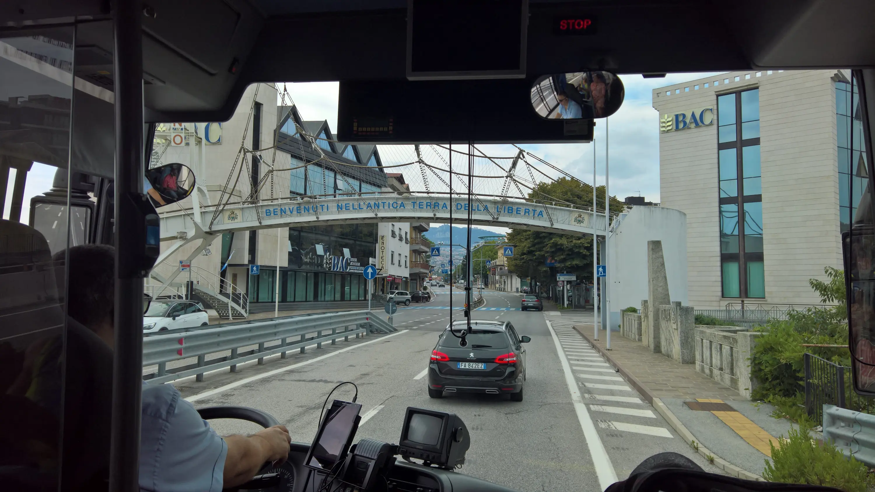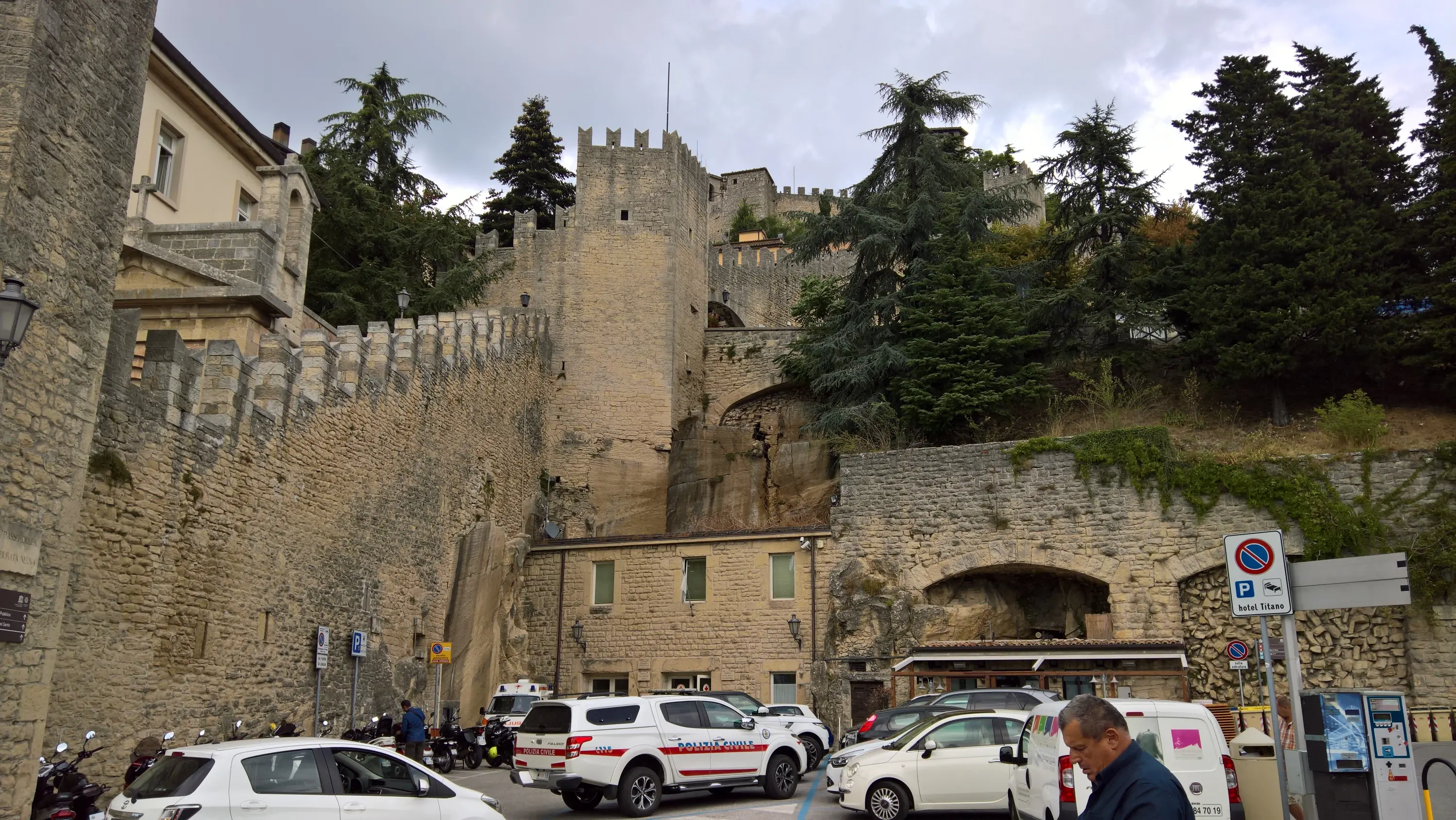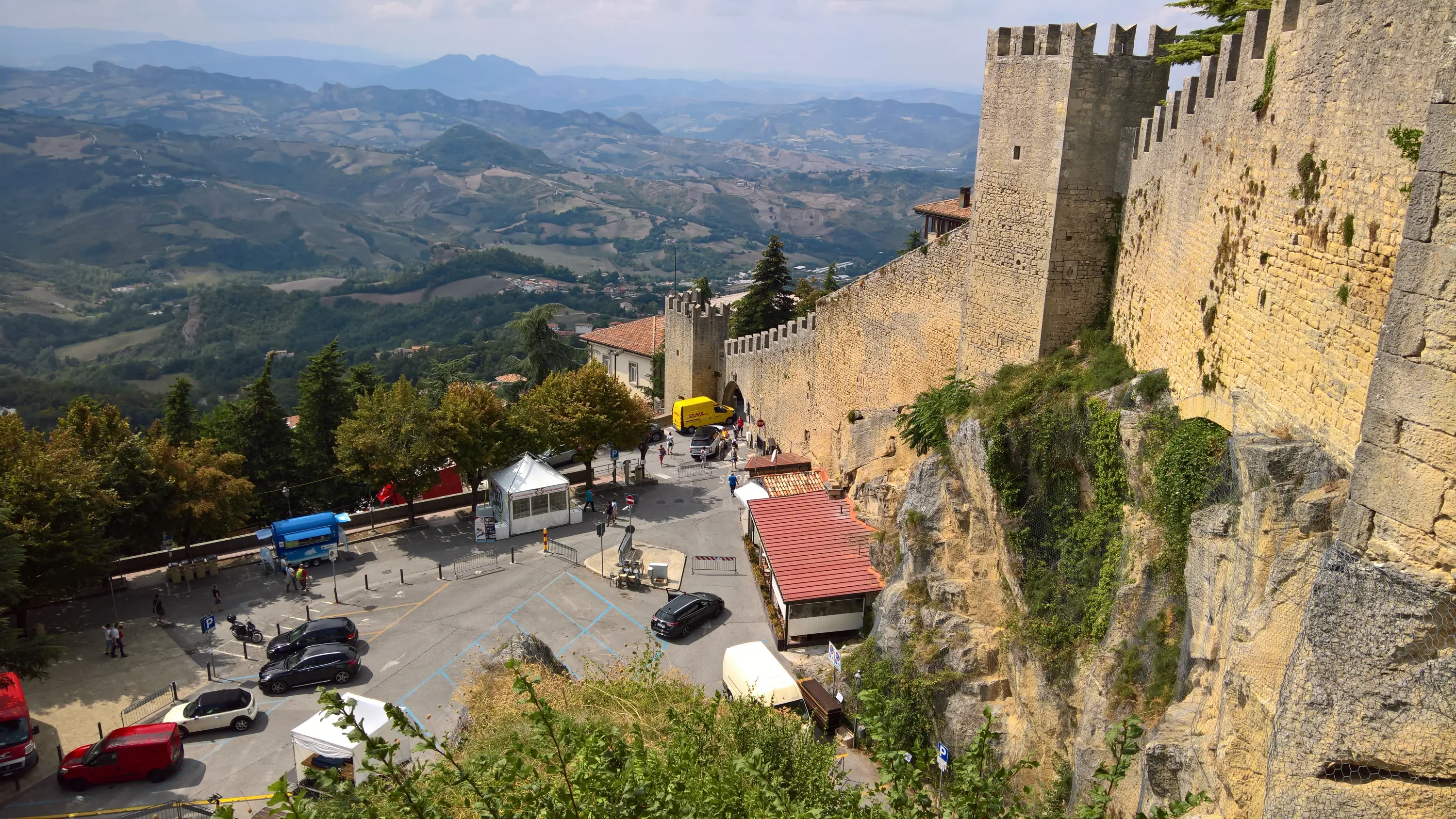 Сан-Марино не входить в Євросоюз, але входить до Шенгенської зони, тому кордон з Італією відкритий. Виглядає ось так (в’їзд у місто Догана):