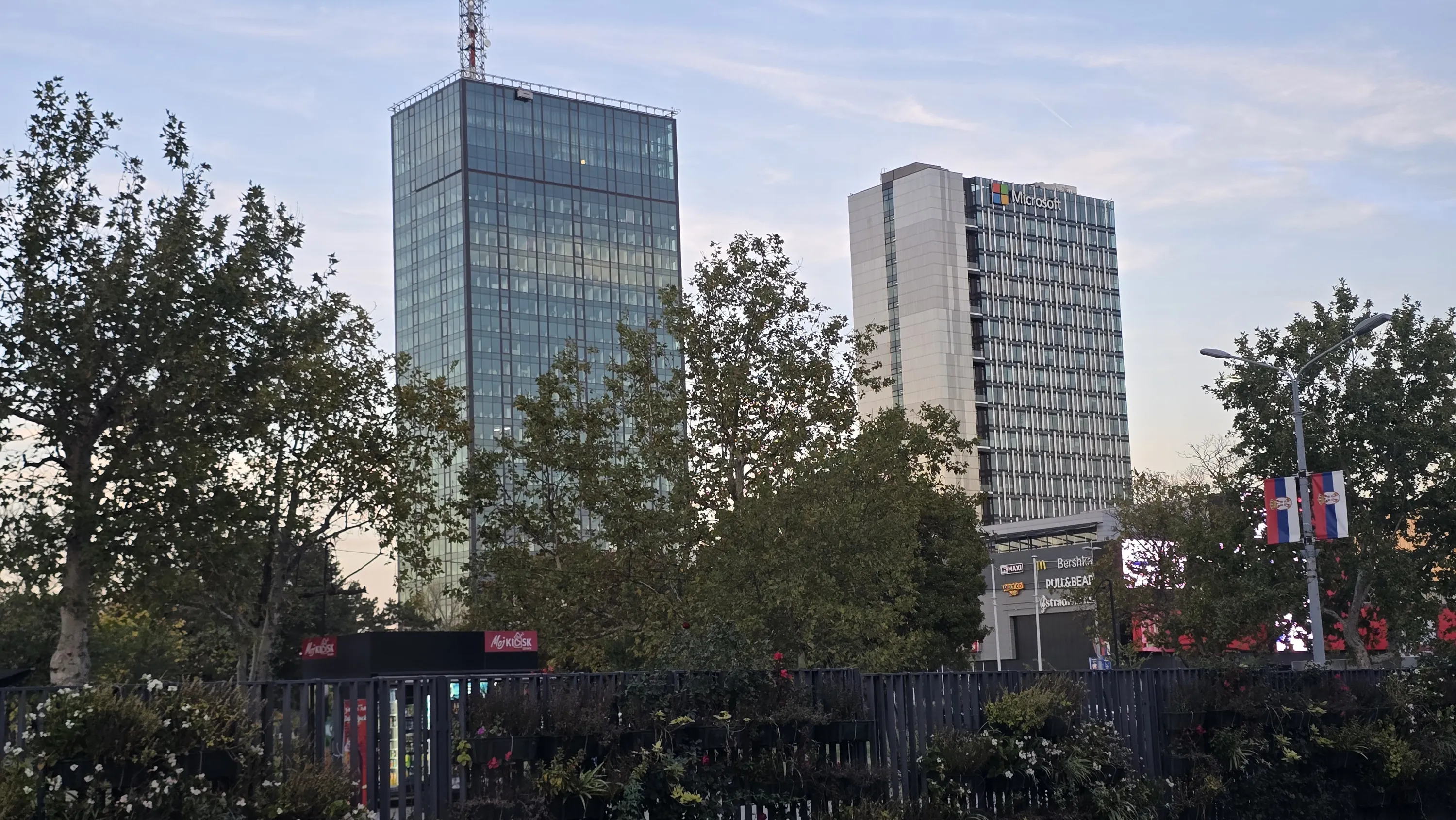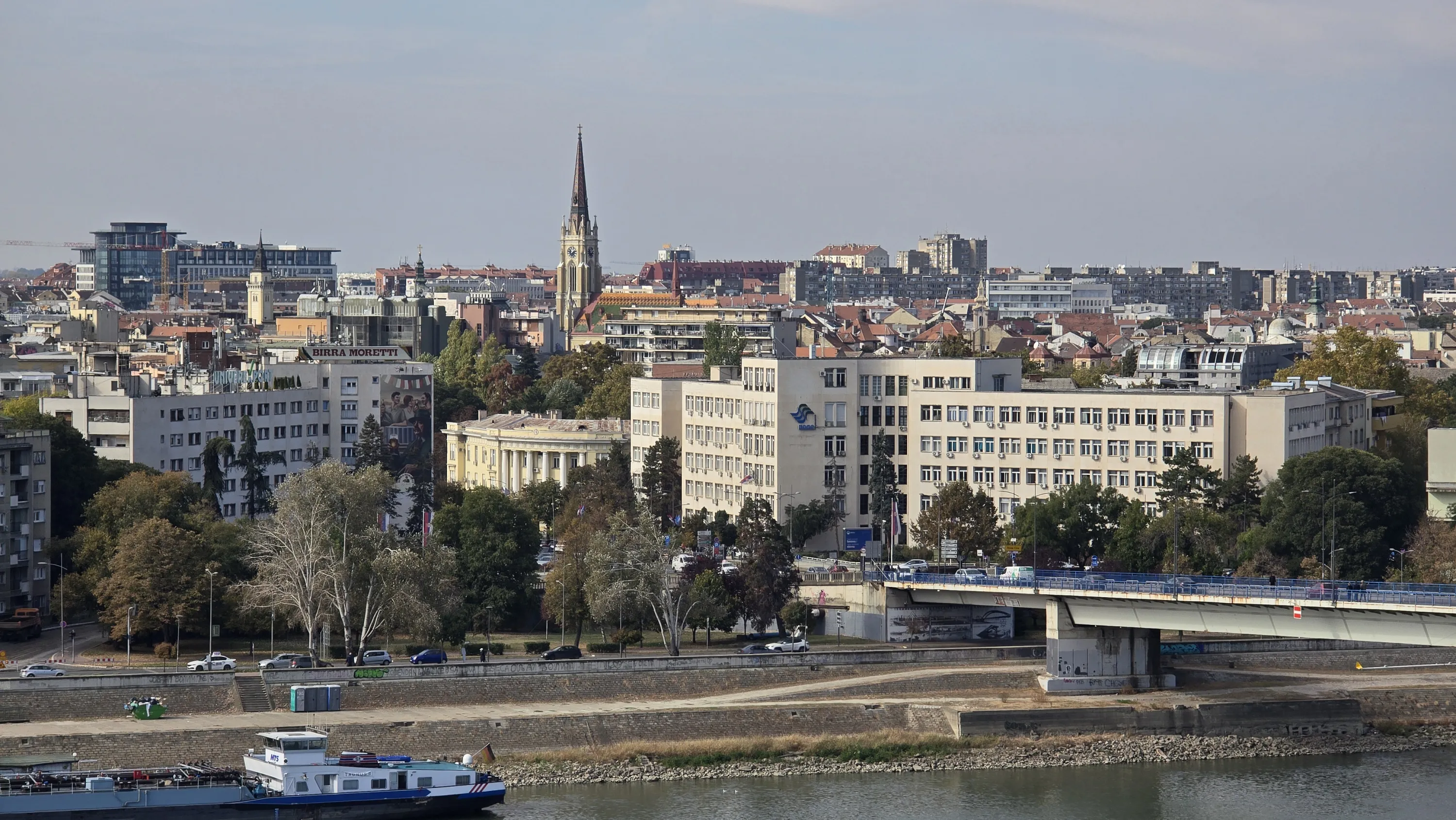 Там на задньому плані видно 42-поверховий хмарочос Belgrade Tower, побудований в 2022-му. Насьогодні це найвища будівля в Сербії: