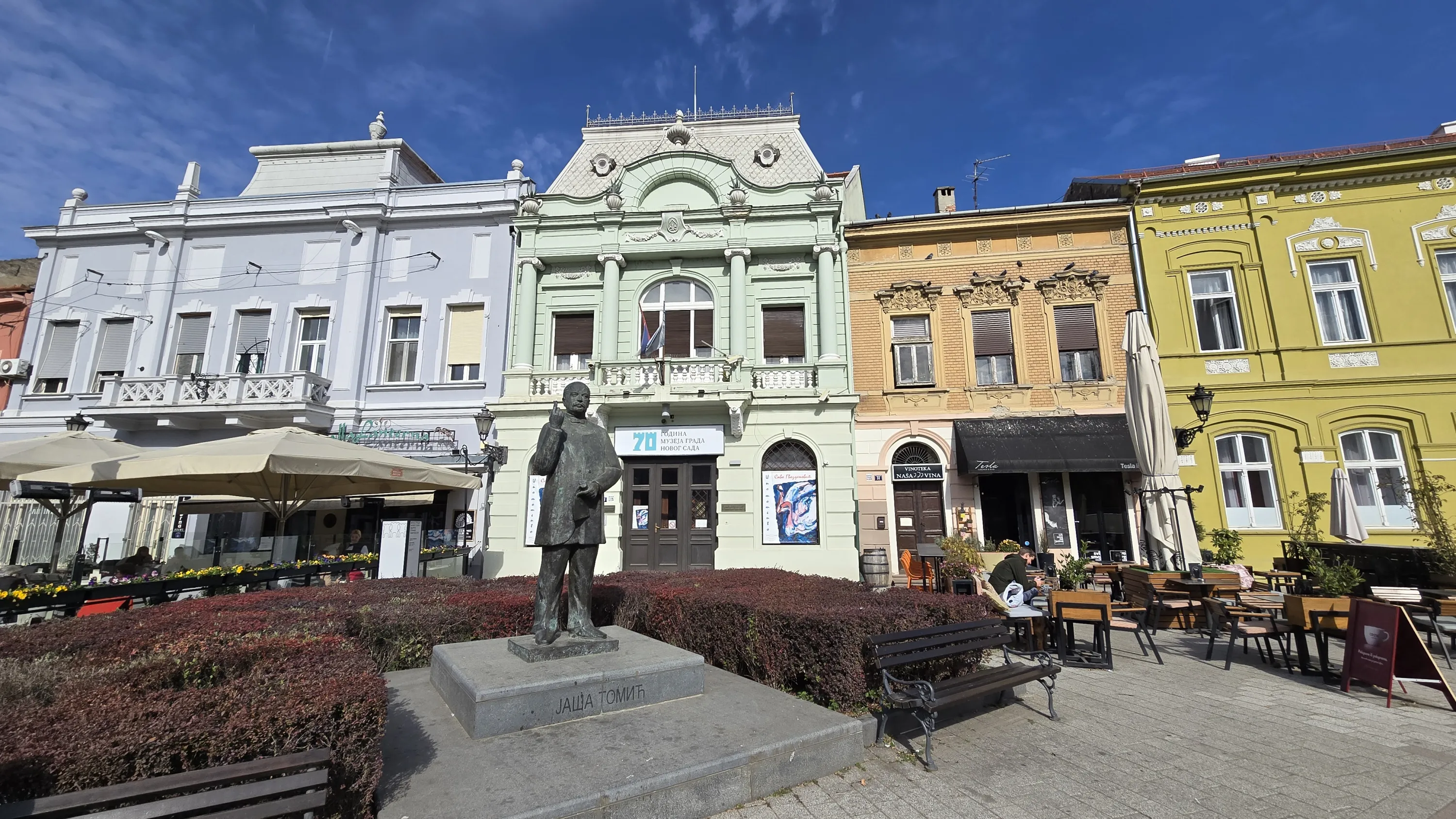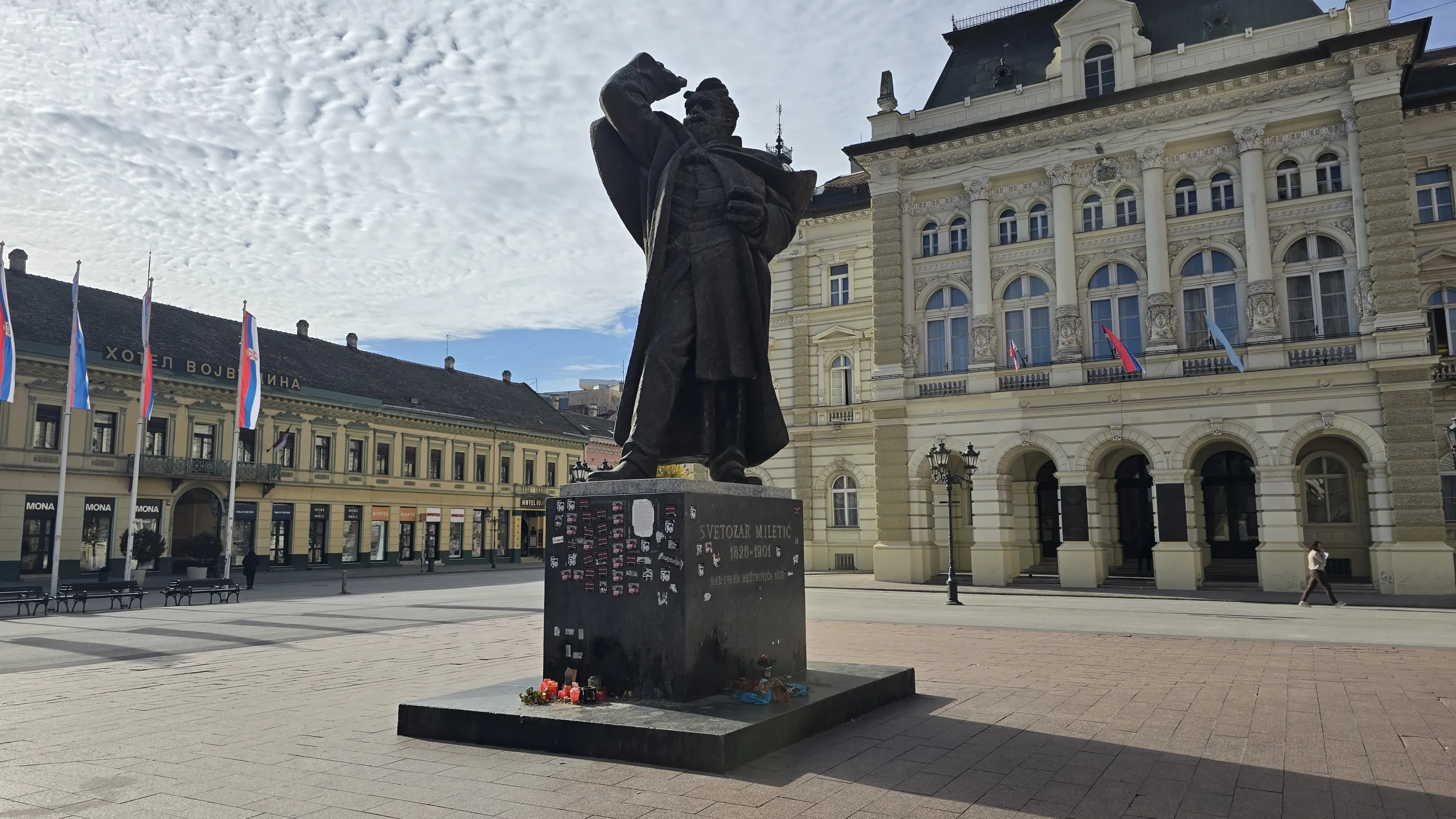 Посеред площі — пам’ятник Світозару Мілетичу — австро-угорському сербському письменнику та політичному діячу:
