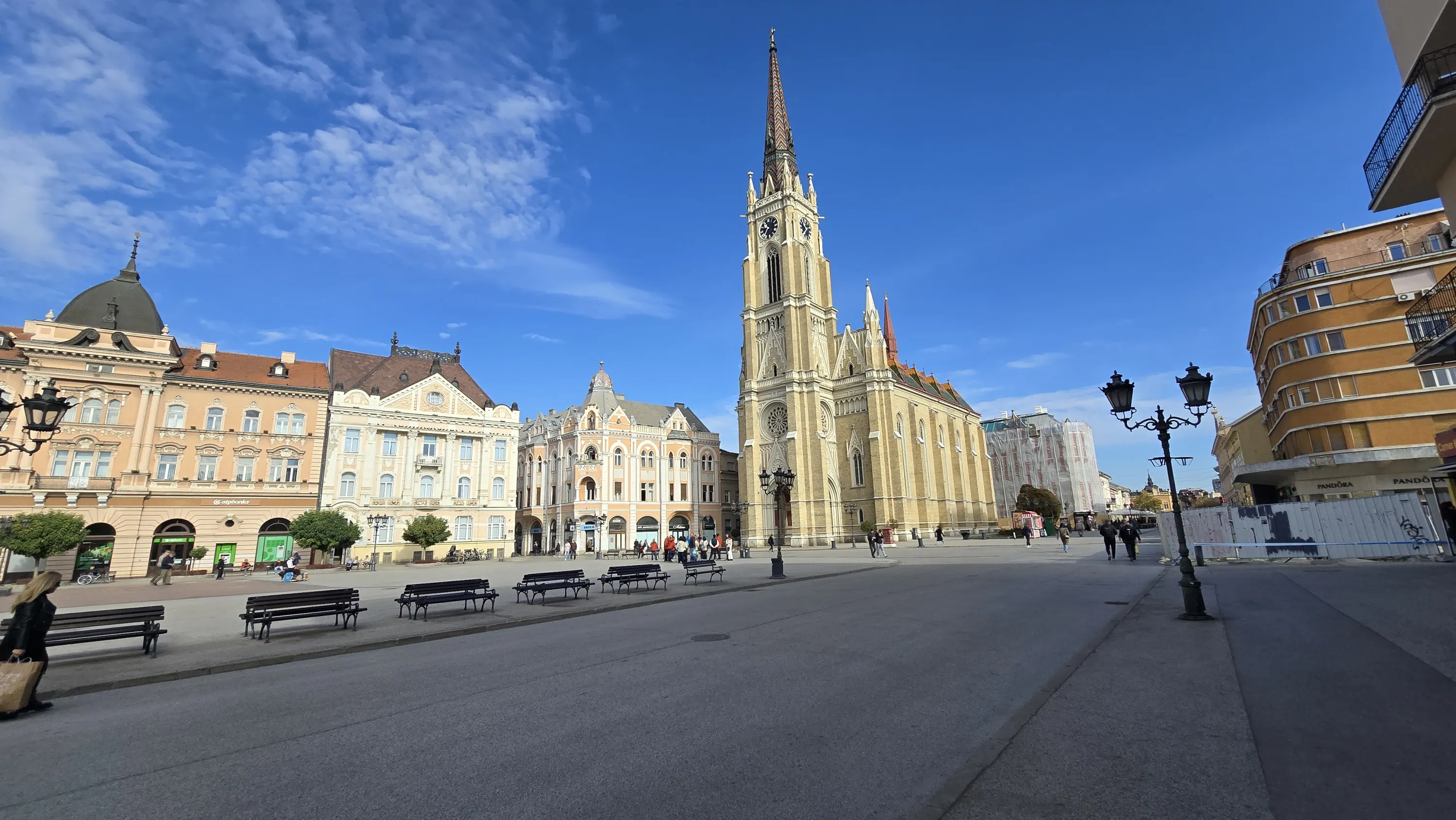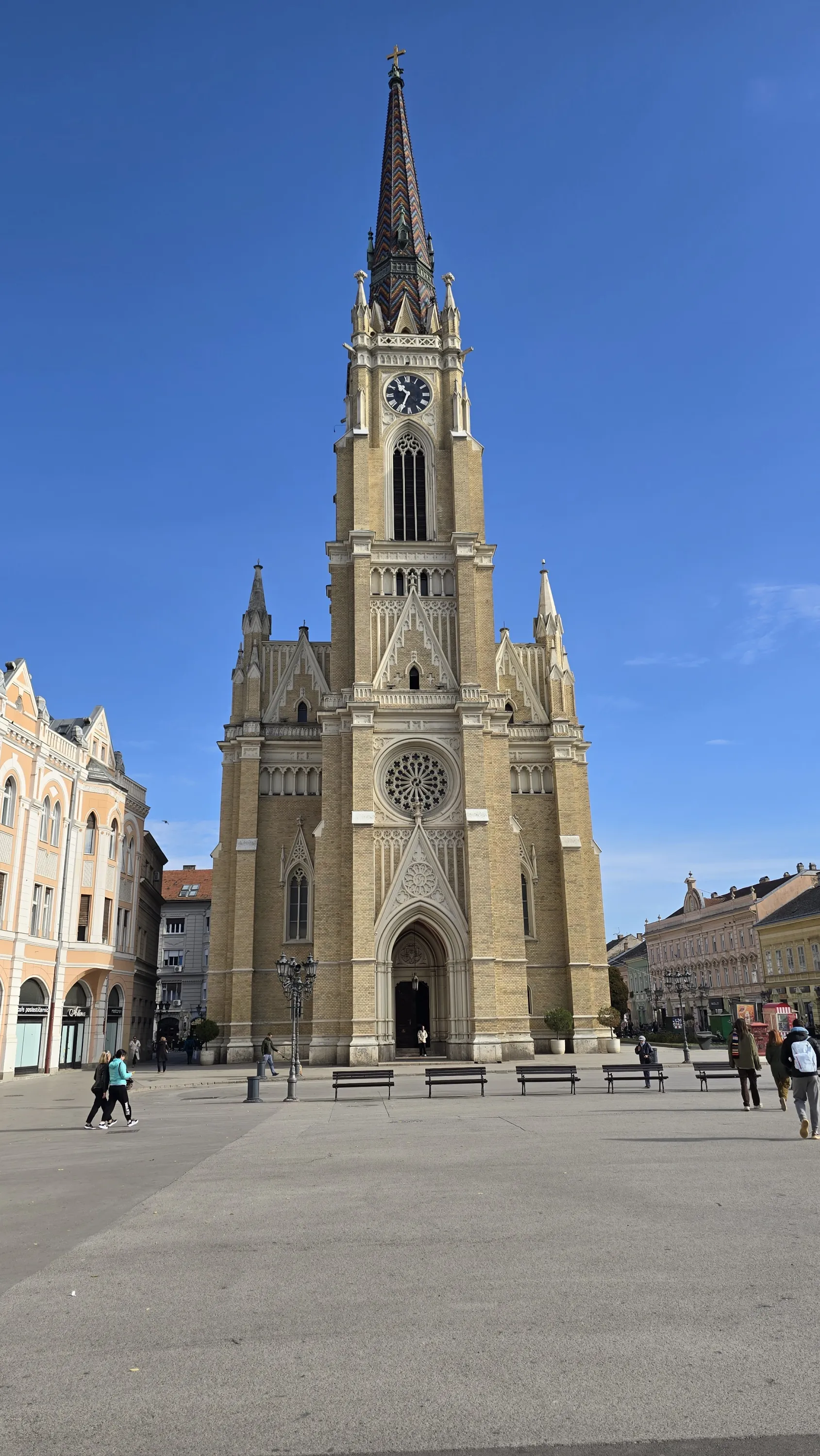В протилежному кінці — католицька церква Імені Марії, яка є візитівкою міста. Можливо, вас здивує, що в центрі великого міста історично православної Сербії стоїть католицький храм. Адже для сербів православ’я — це не просто релігія, це один з ключових аспектів їхньої ідентичності. В більшості регіонів Сербії знайти католицьку церкву, напевно, складніше, ніж в Польщі знайти православну, але не в Воєводині. І Новий Сад, де на головній площі домінує величний католицький собор, є зайвим підтвердженням того, що Воєводина — це не зовсім типова Сербія: