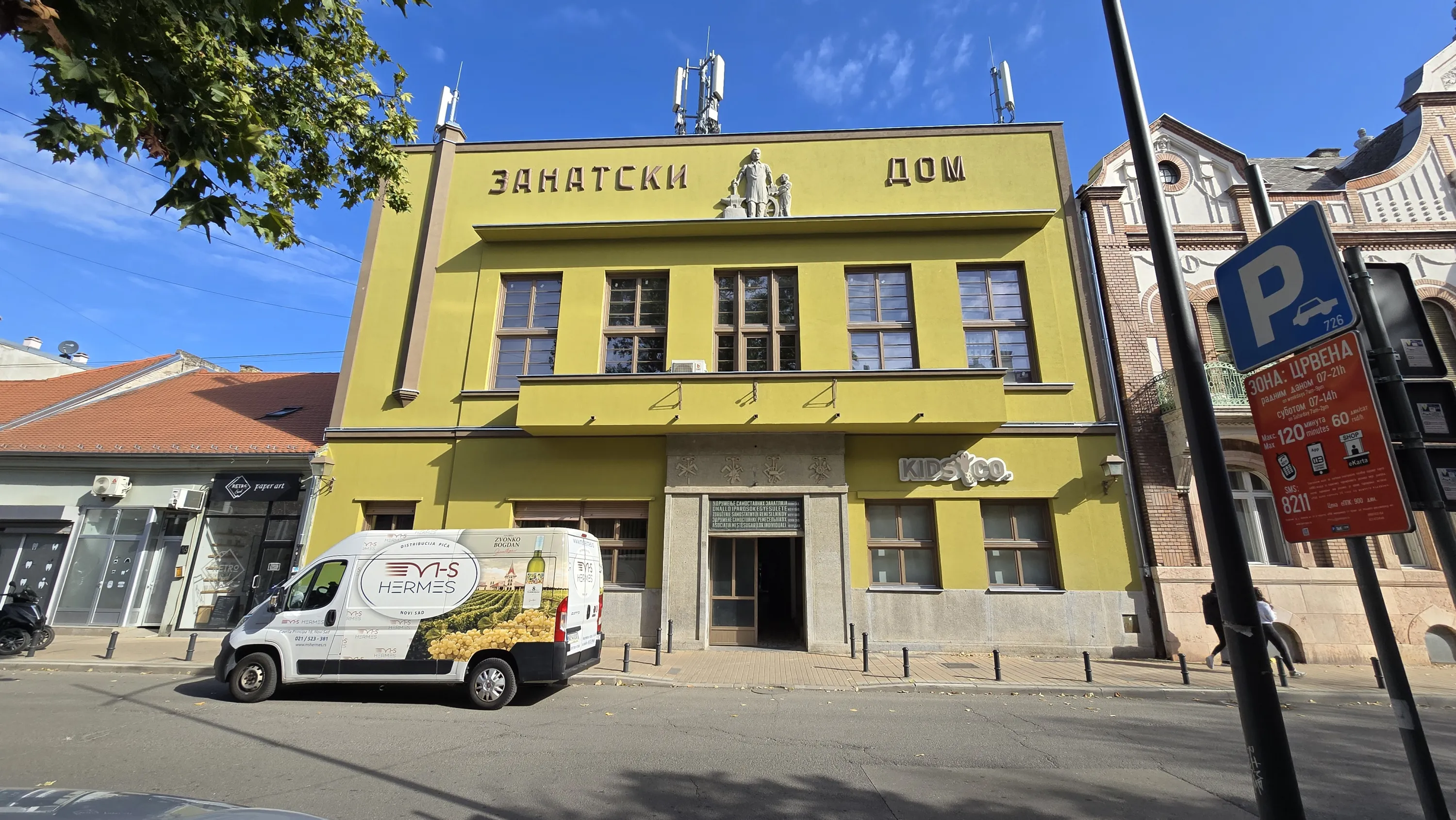 Будинок ремісників, над входом в який вивіска дублюється сербською, угорською, словацькою, русинською та румунською мовами: