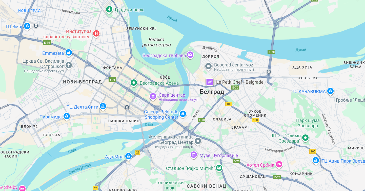 Як видно на карті вище, ріка Сава розділяє сербську столицю на західну та східну частини, які настільки несхожі одна на одну, що може скластися враження, що це два різних міста. Ми почнемо наше знайомство з Белградом зі східного берега Сави, оскільки саме там знаходиться історичний центр та більшість туристичних локацій.